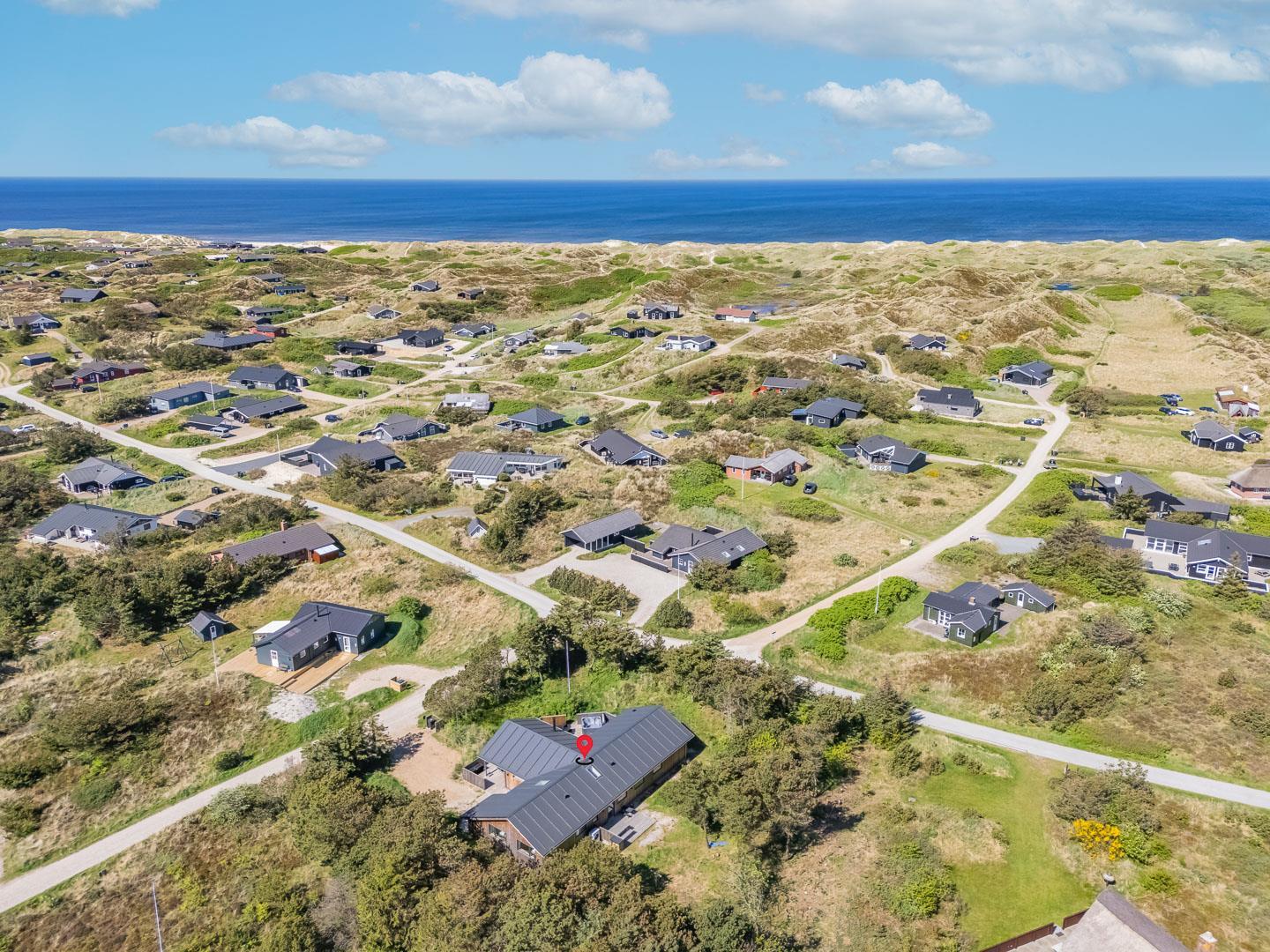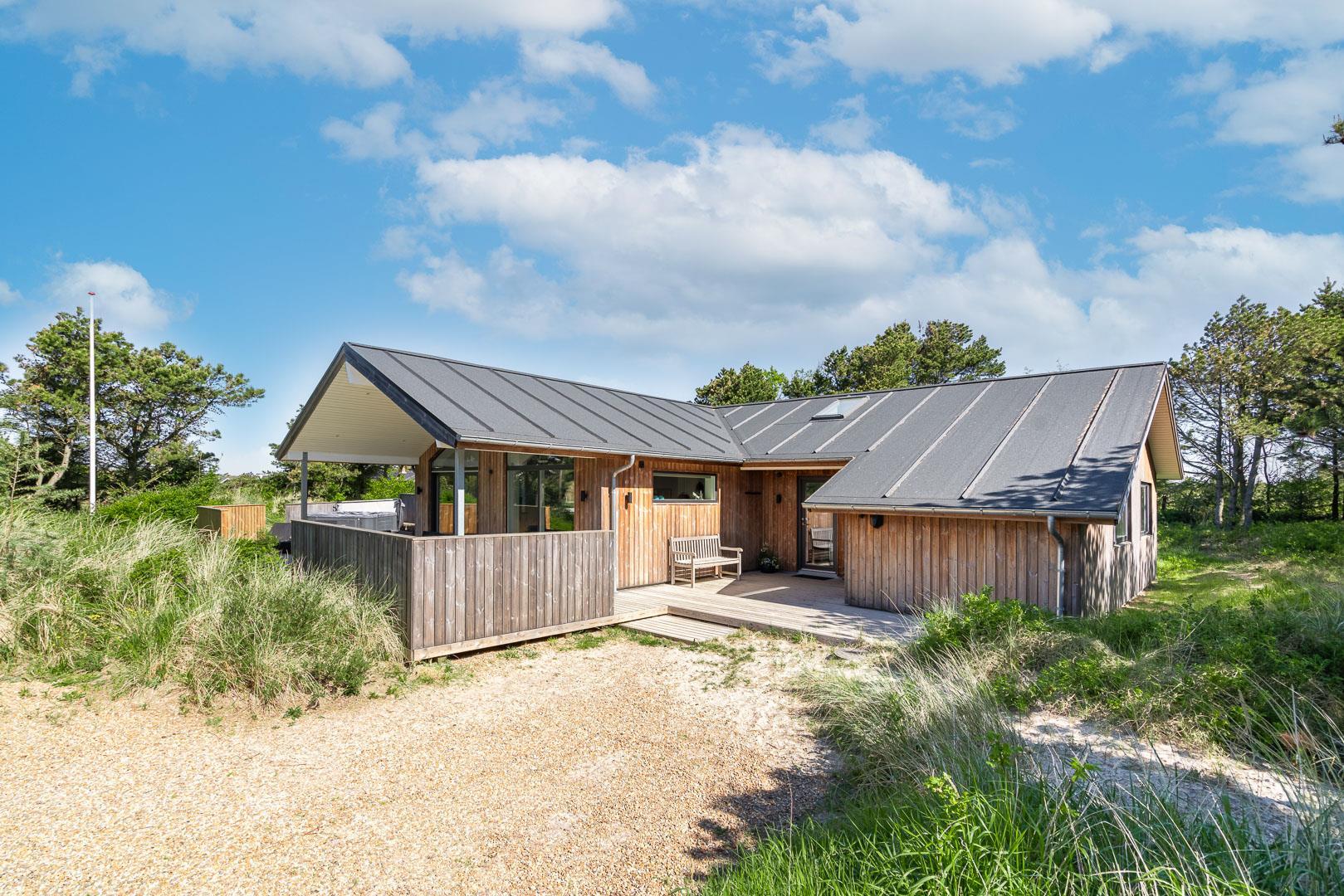 Huset har en skøn beliggenhed på en læfuld klitgrund ikke langt fra Lyngbos Hede og 10 minutters rask gå tur, så er man på stranden.