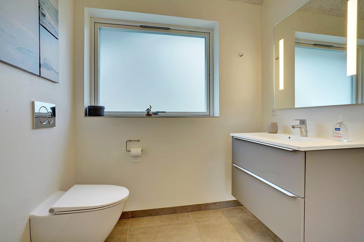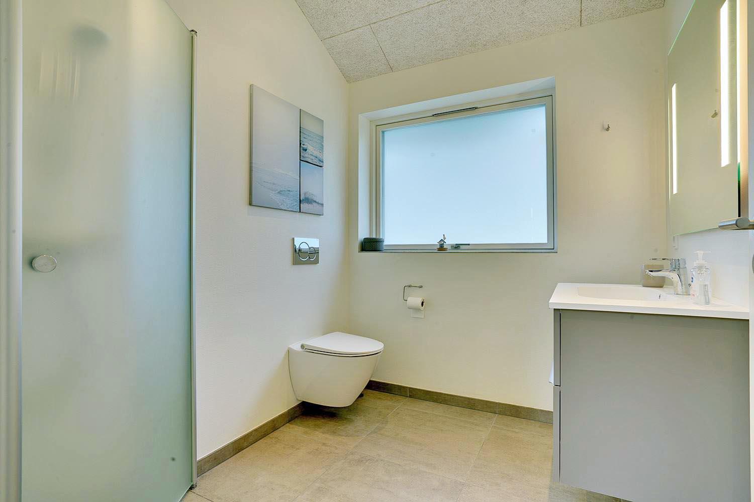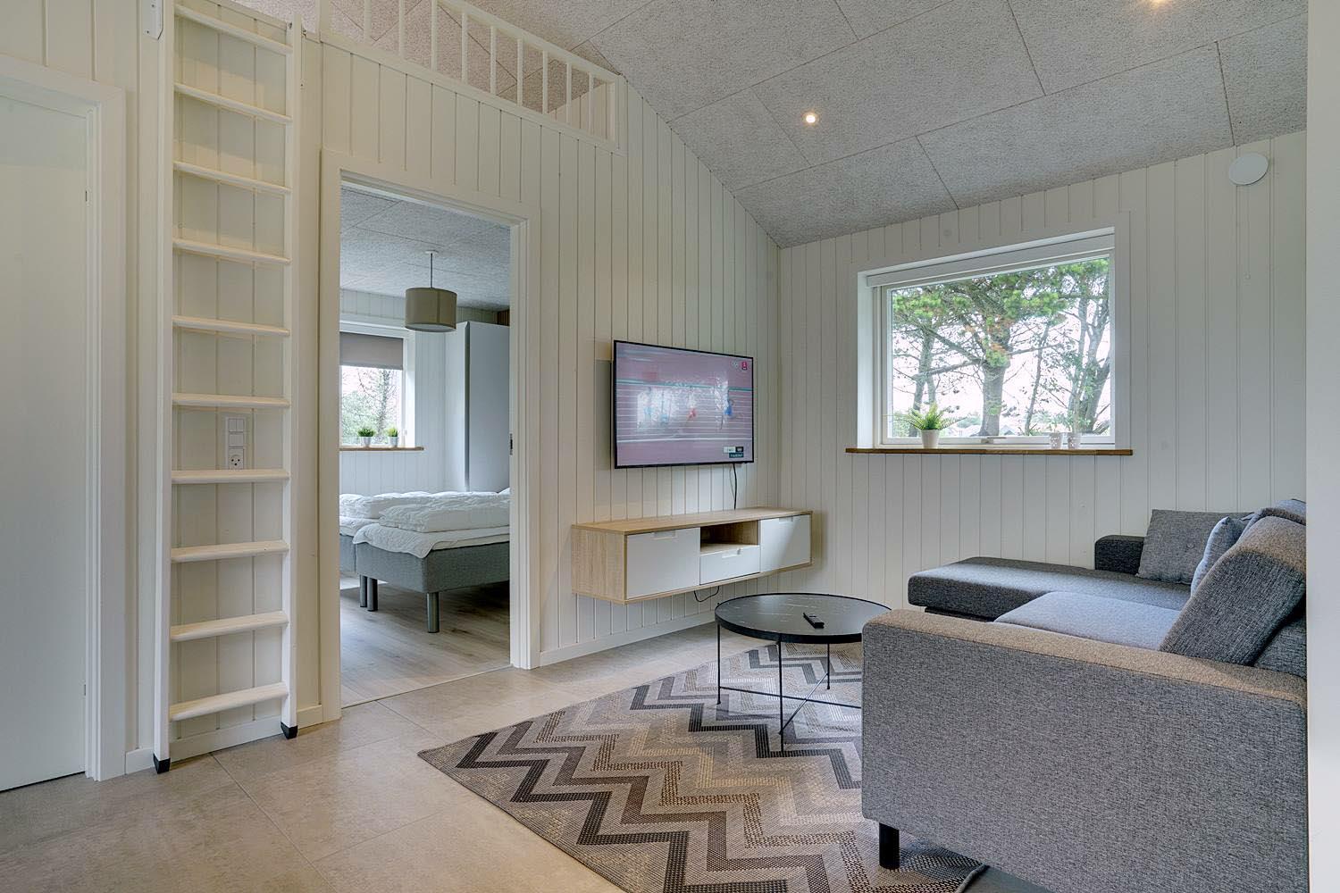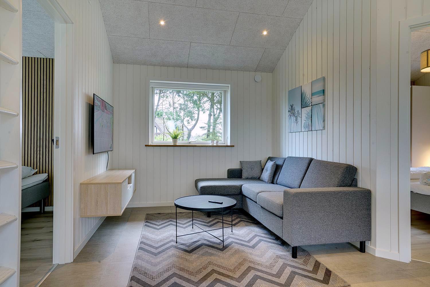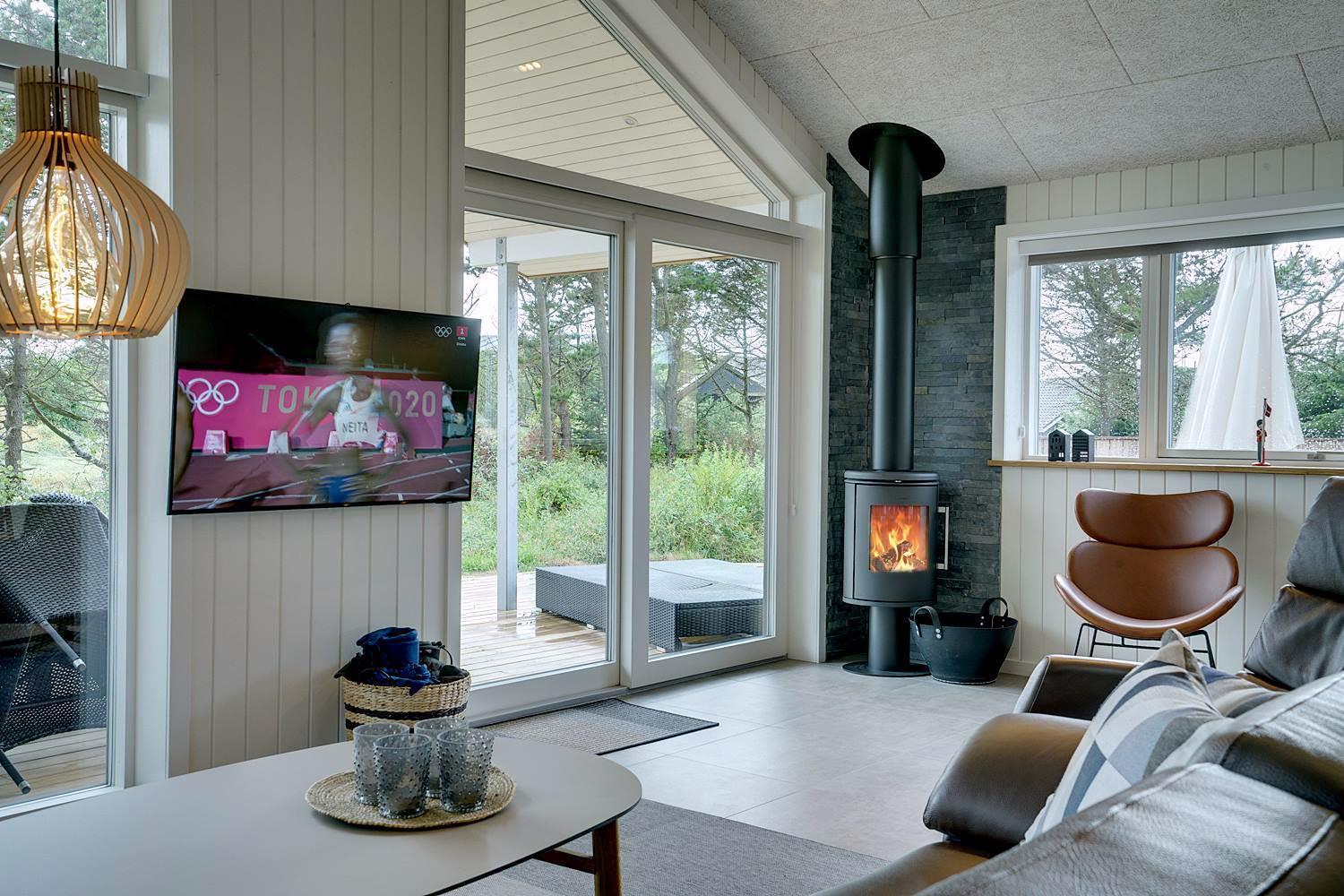 Det dejlige sommerhus opvarmes af en energibesparende varmepumpe. Det sikrer dig et sommerhus, som er opvarmet med omtanke for miljøet, og som derved sparer på energien.