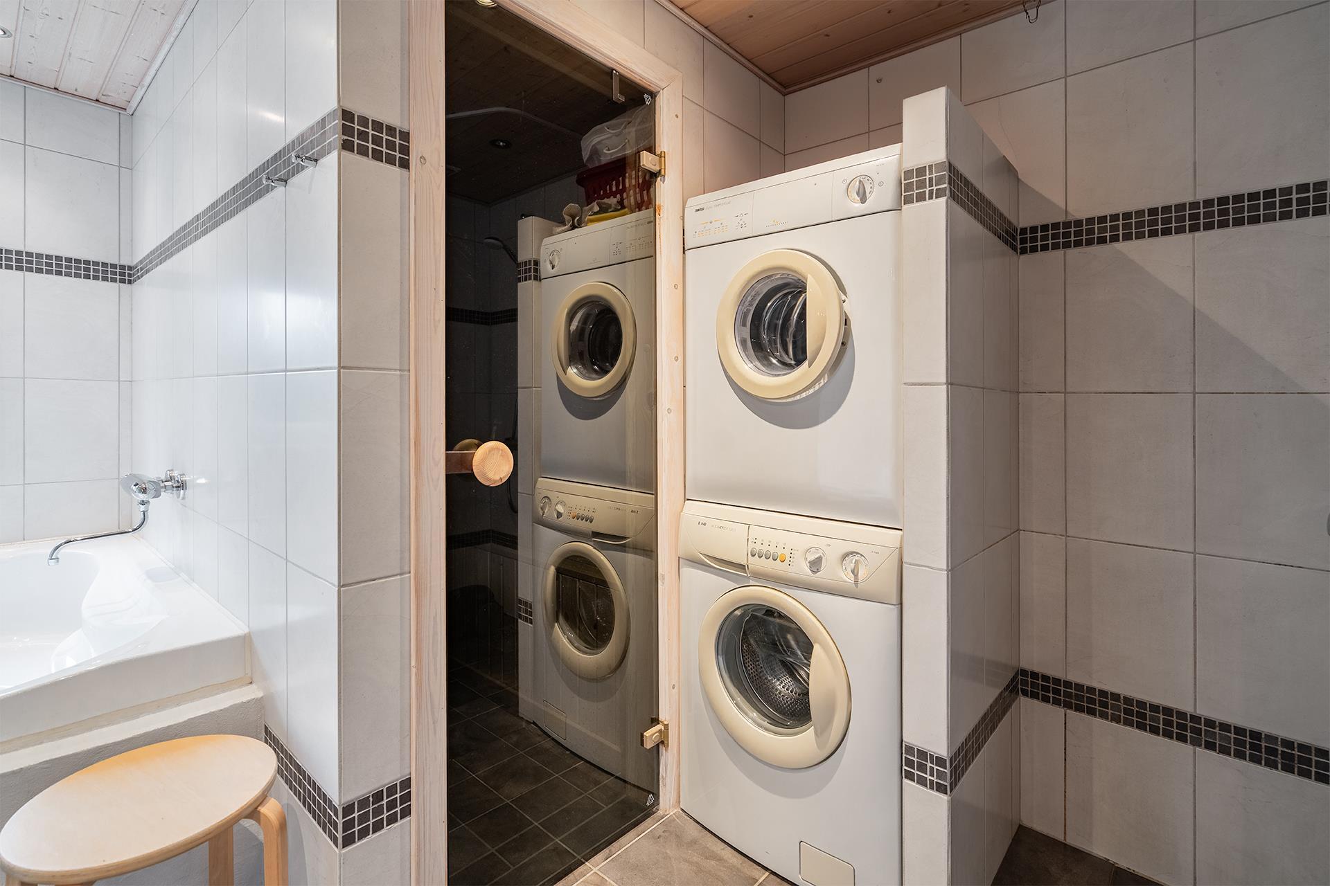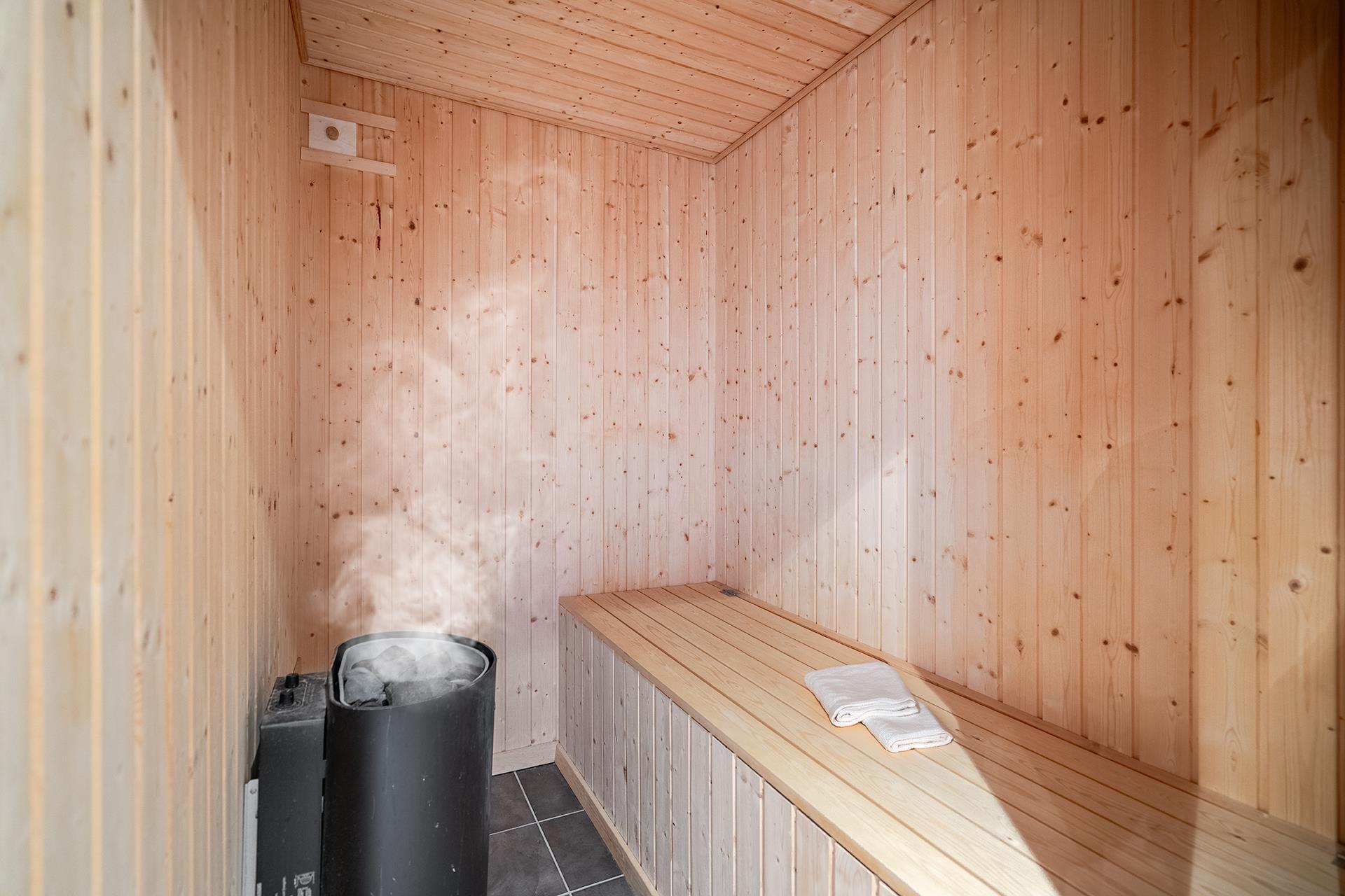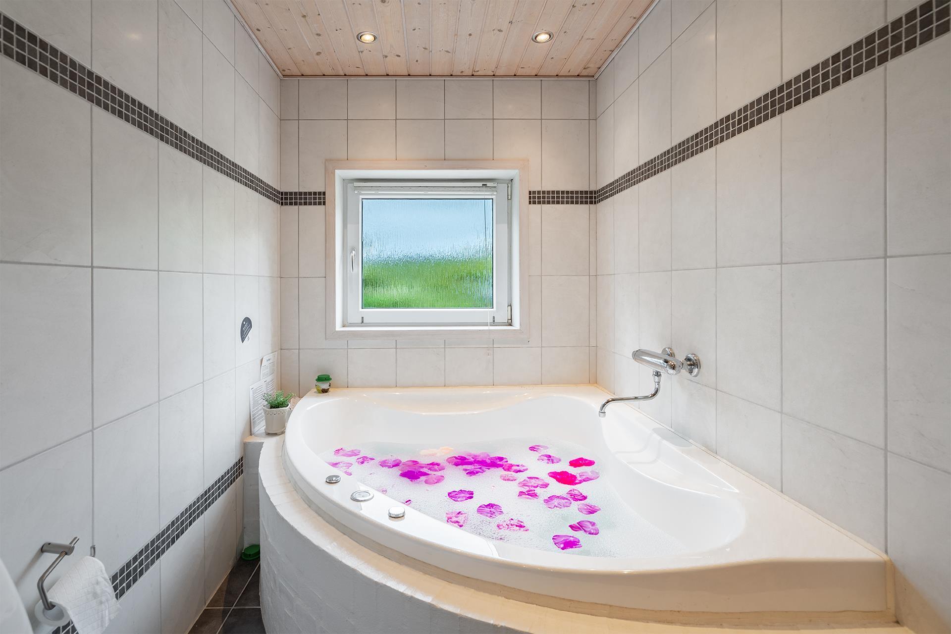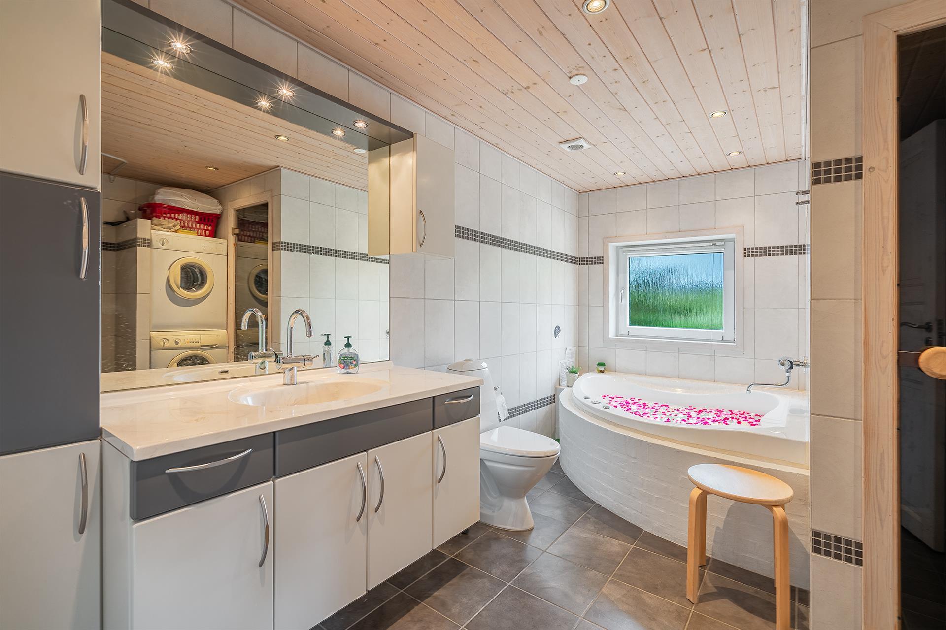 I sommerhuset er der to badeværelser, hvoraf det store badeværelse er med spa og sauna.