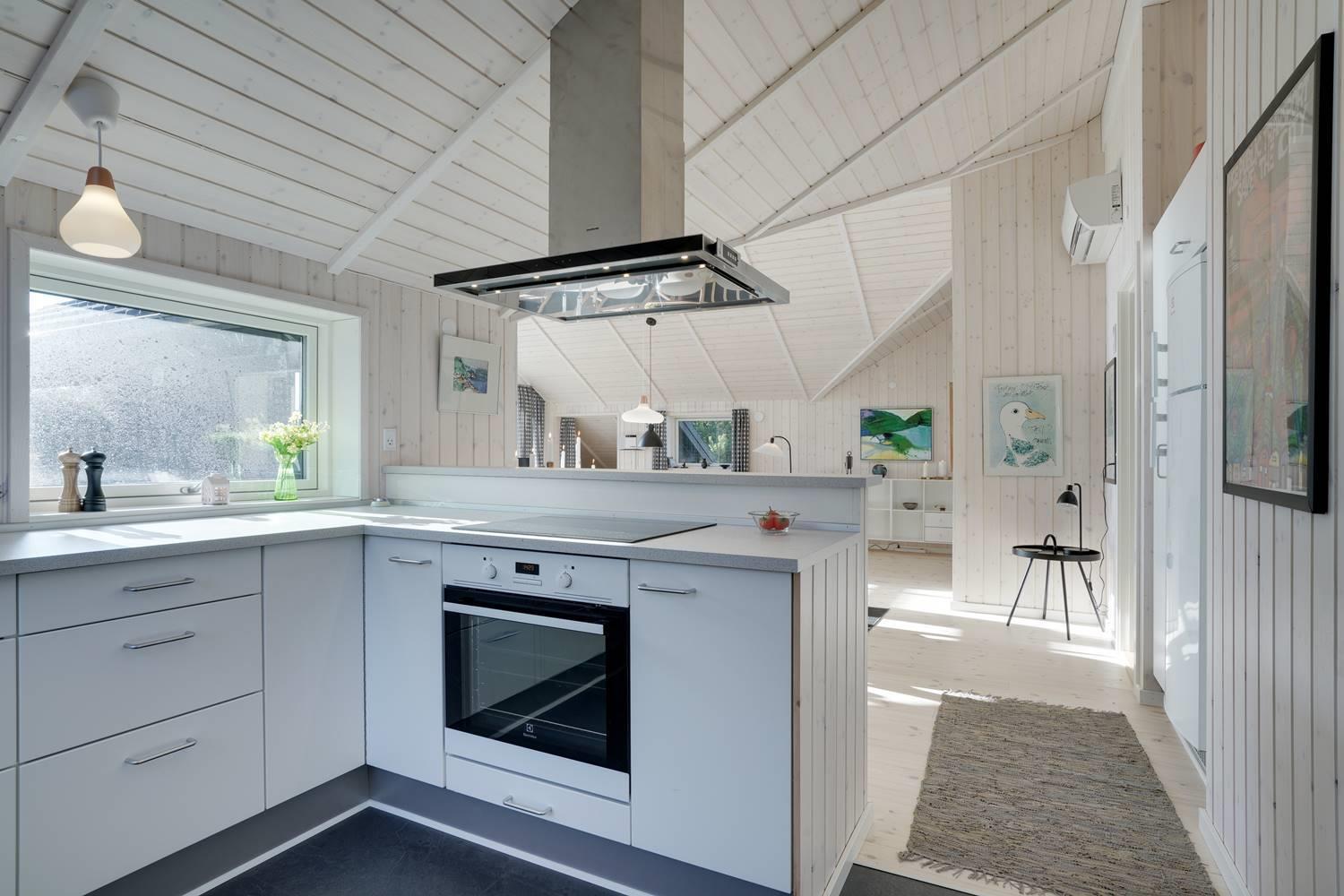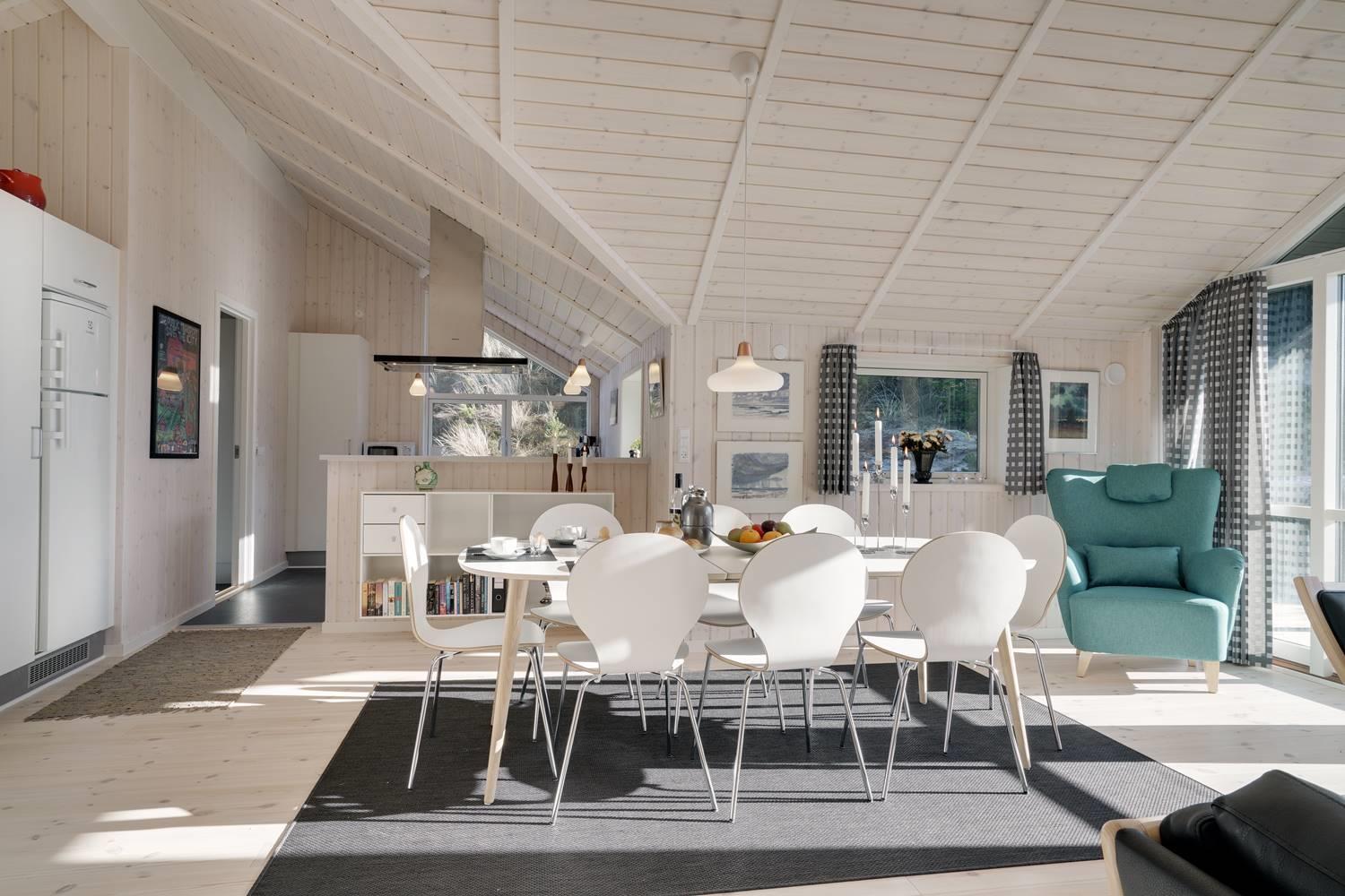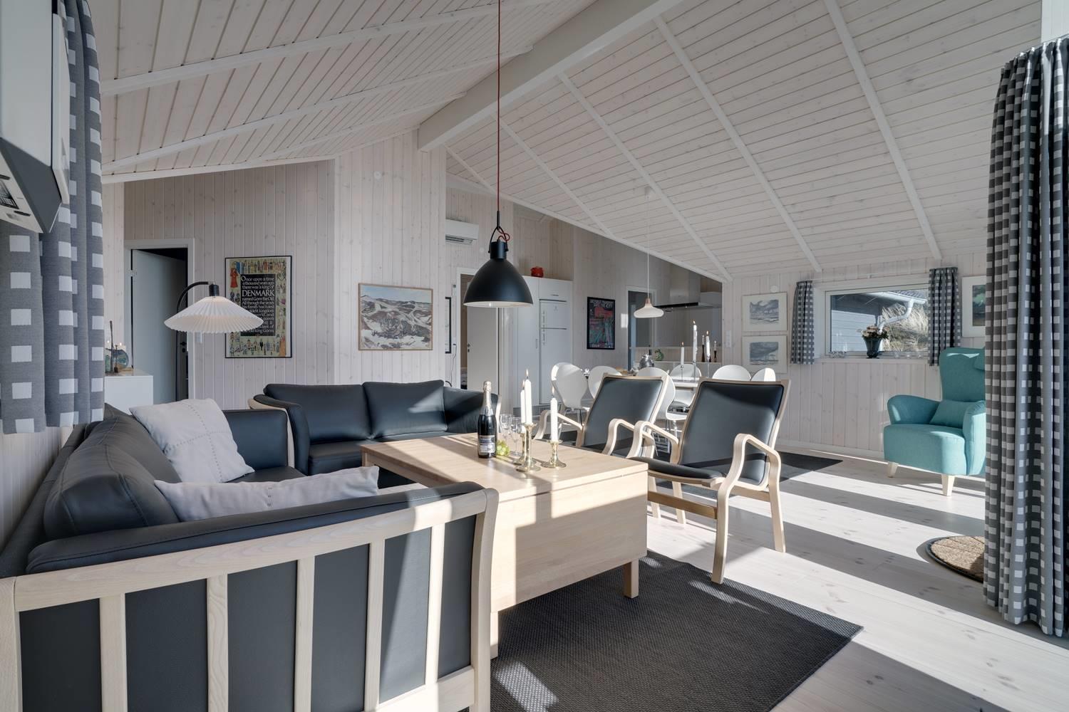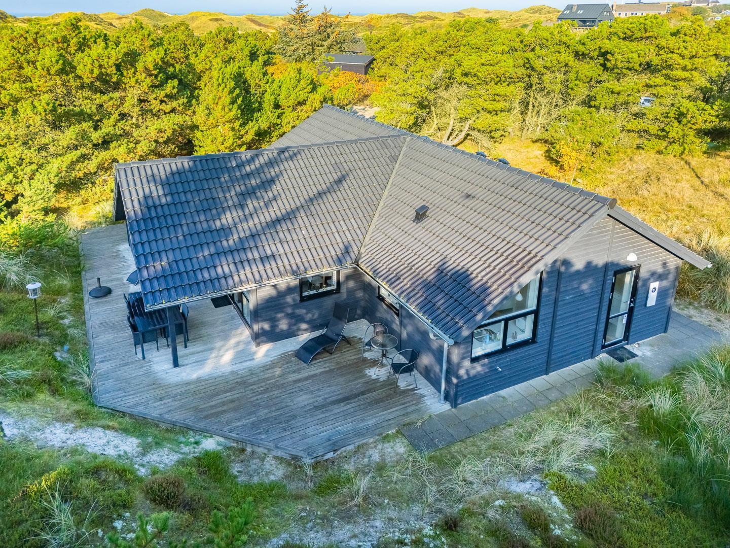 Nyopført feriehus beliggende på en pragtfuld og ugeneret klitgrund tæt på stor fredet klitlandskab og Vesterhavet. I husets entré finder man husets vaskemaskine og tørretumbler. Stort og lækkert badeværelse med badekar og sauna. Ekstra badeværelse med bruser. Stort, flot køkken som er i åben forbindelse med den hyggeligt indrettede stue. Der er også en alkove i stuen. Flere dejlige træterrasser omkranser huset, hvorfra der er mulighed for sol og læ. Gode soveværelser med god skabsplads. Et dejligt hus hvor rammerne er til stede for en rigtig god ferie hele året.