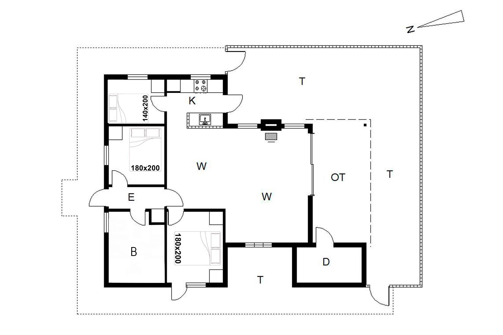 Sengestørrelse: 2 dobbeltsenge 180 x 200 cm + 1 Dobbeltseng 140 x 200 cm.