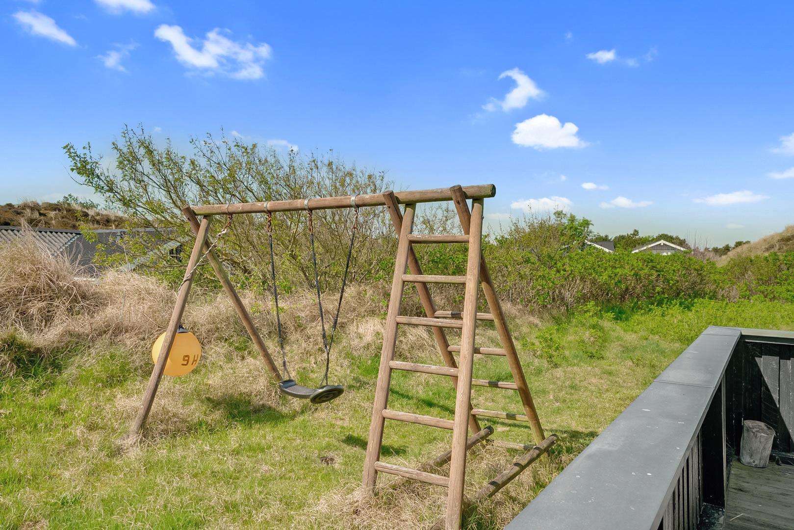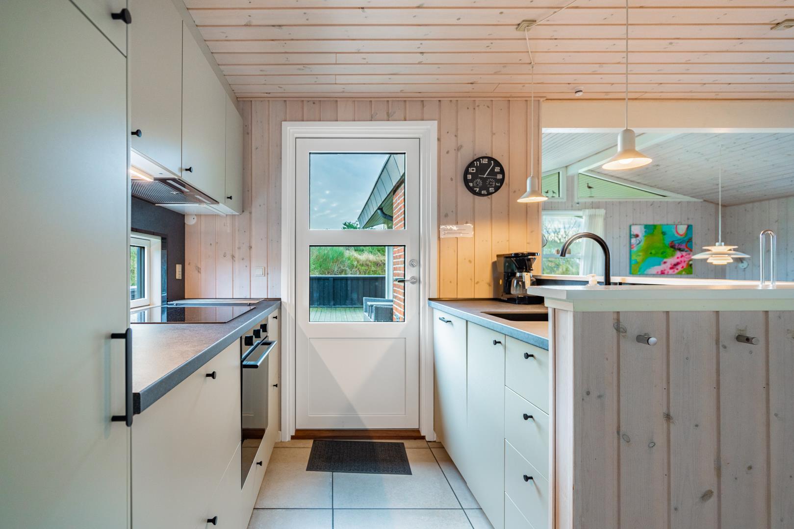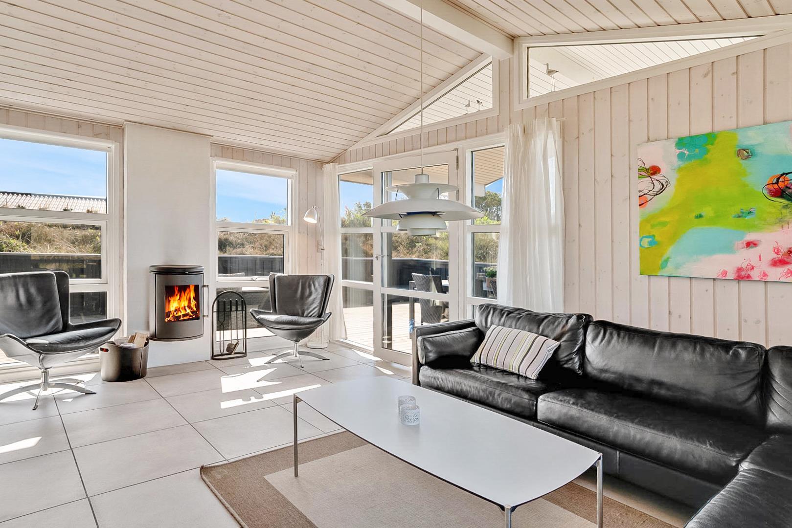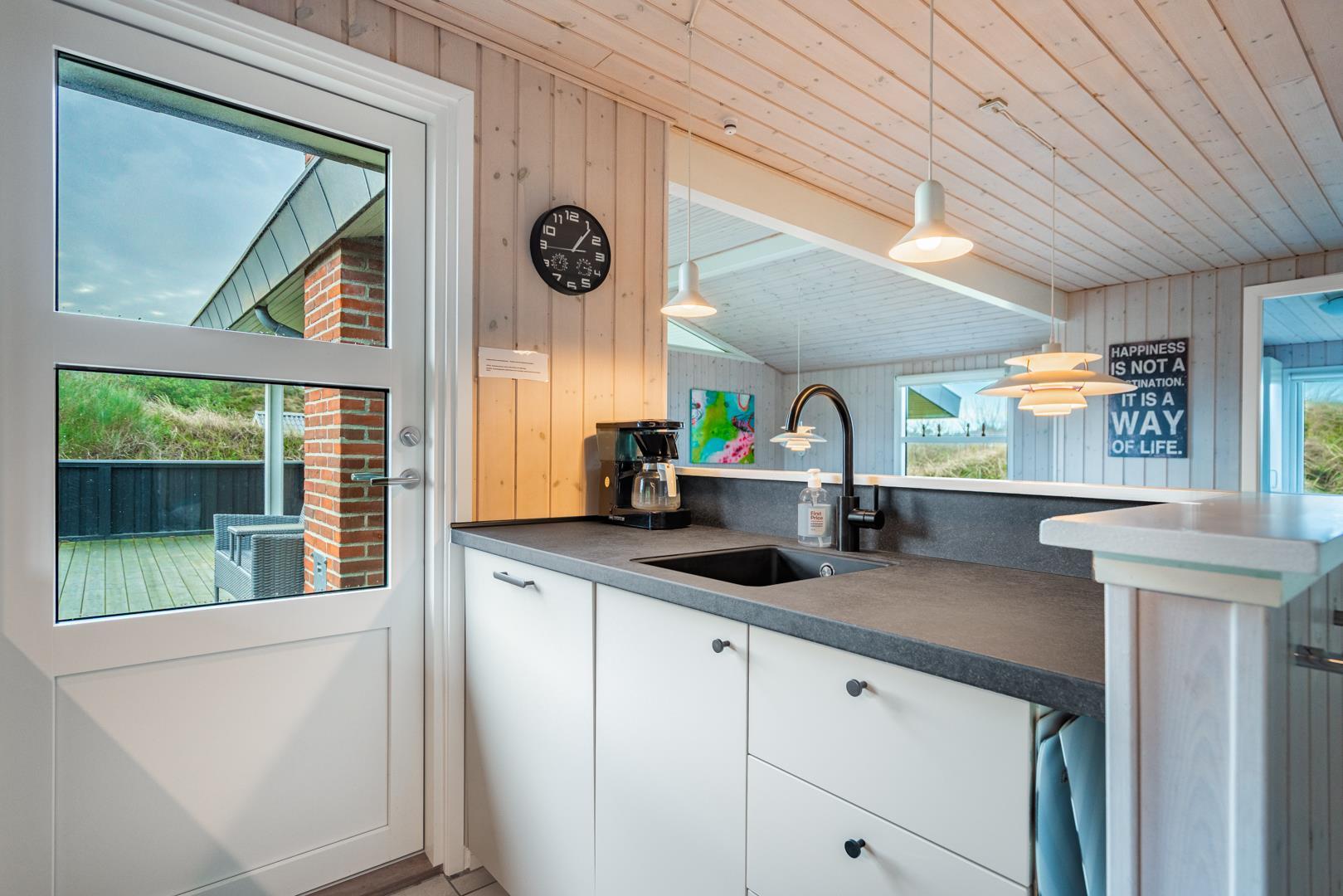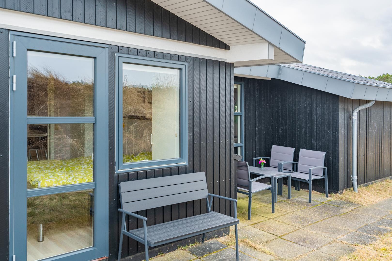 På den store lukkede træterrasse kan solen og den friske luft nydes i fulde drag. I dette skønne feriehus er rammerne skabt for en god ferie i Henne Strand.