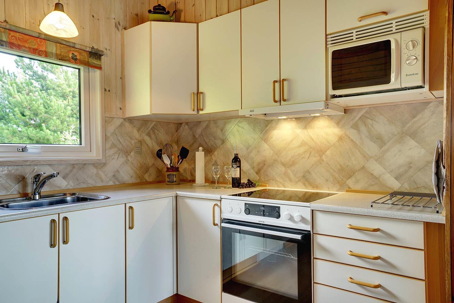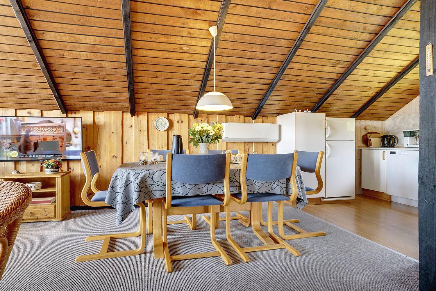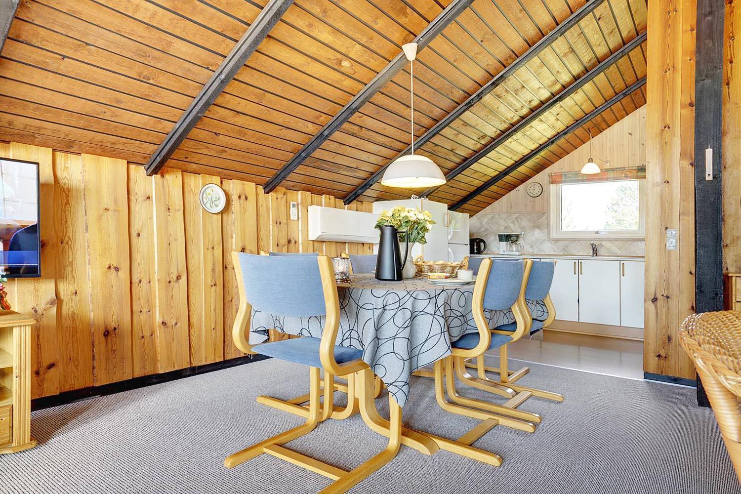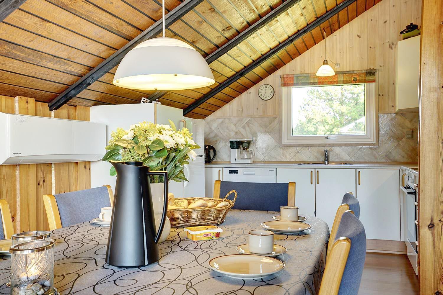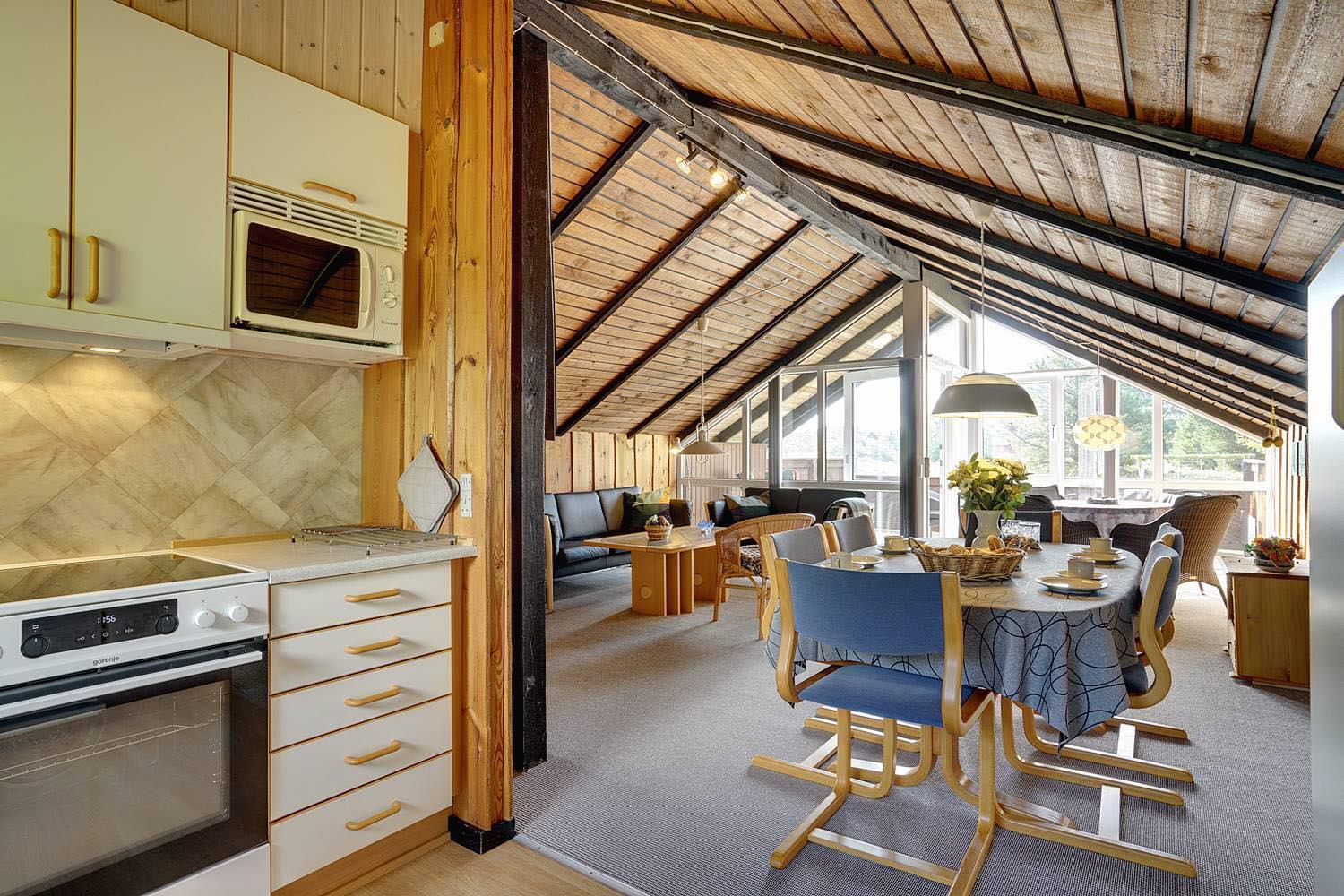 Huset er indrettet med et åbent køkken i direkte forbindelse med den rummelige og hyggelige opholdsstue.