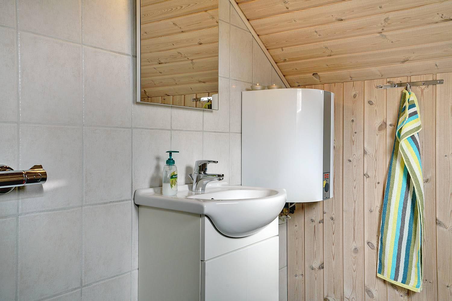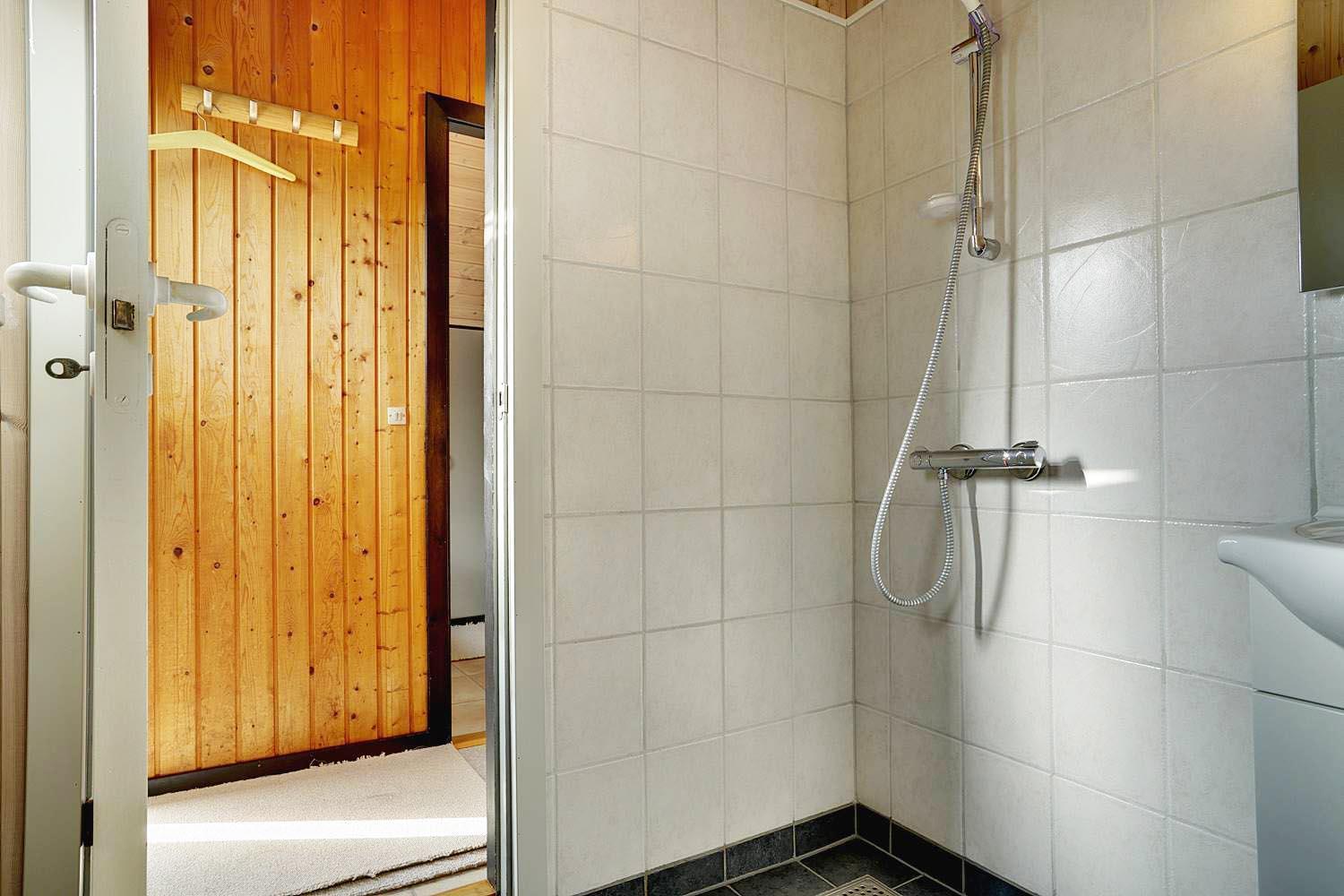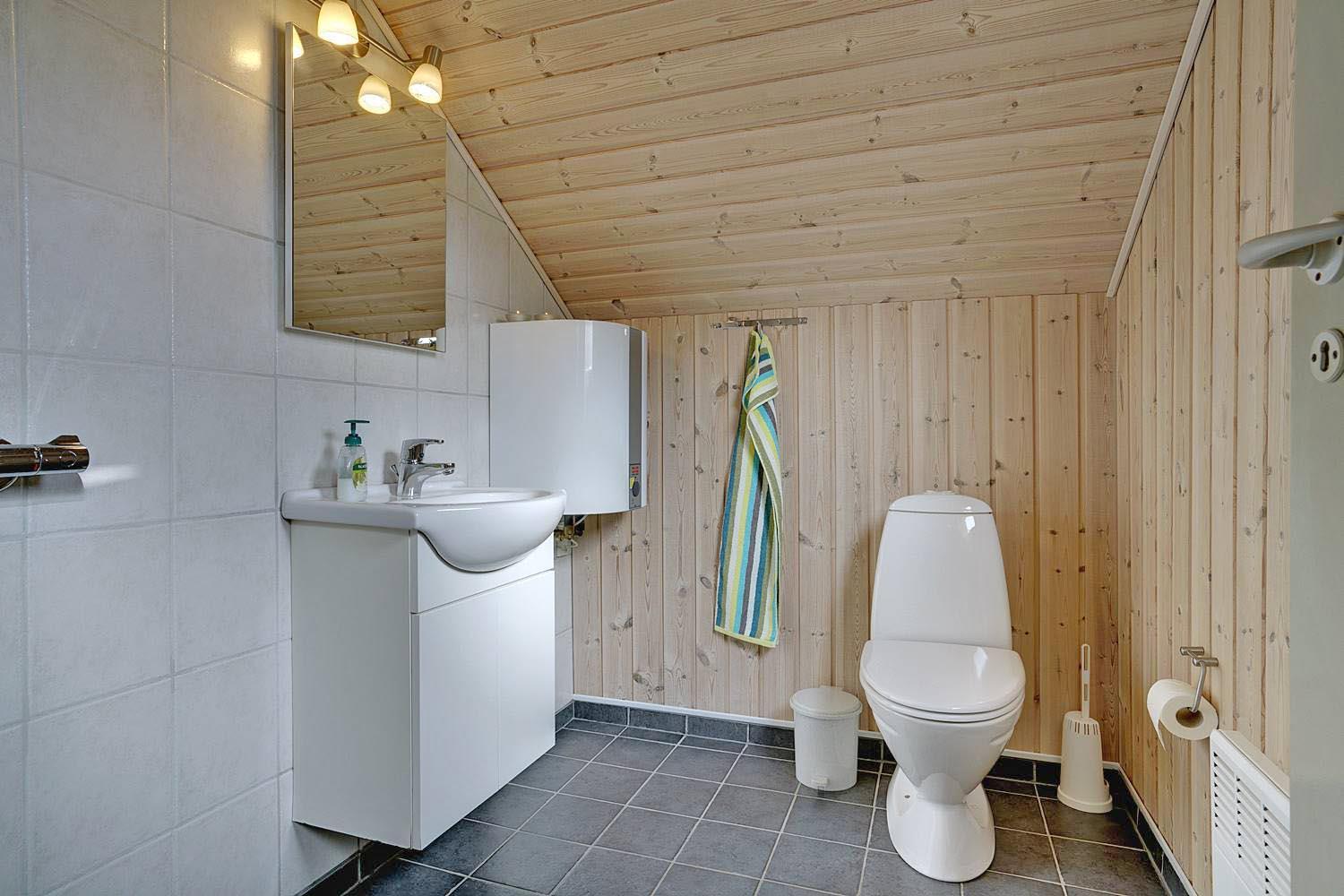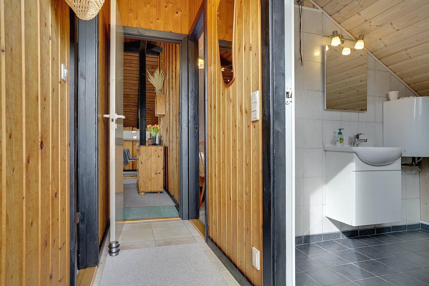 Der er to gode soveværelser med skabsplads og et lyst badeværelse med gulvvarme for ekstra komfort.