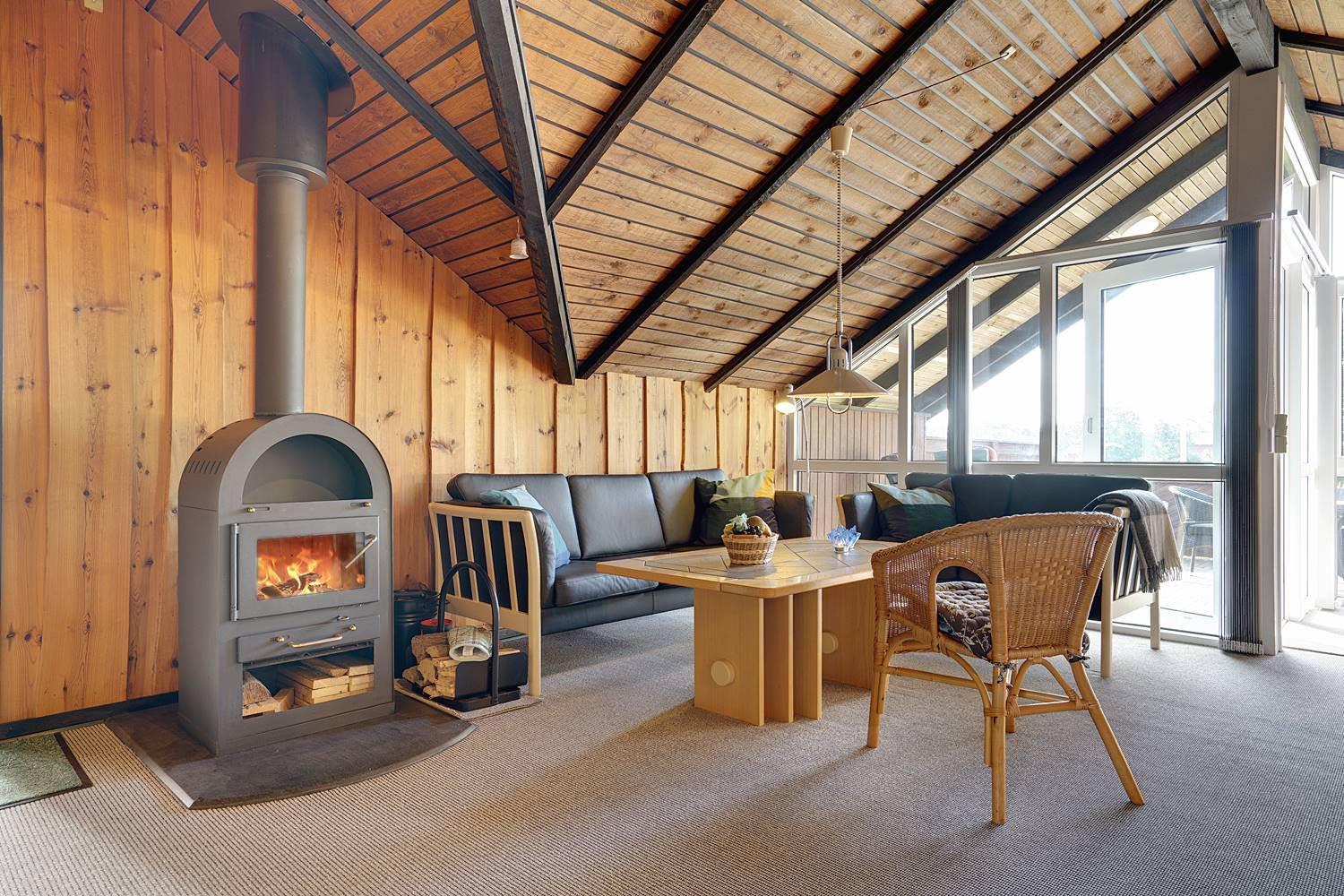 Her er både brændeovn og varmepumpe, der sikrer komfort året rundt.