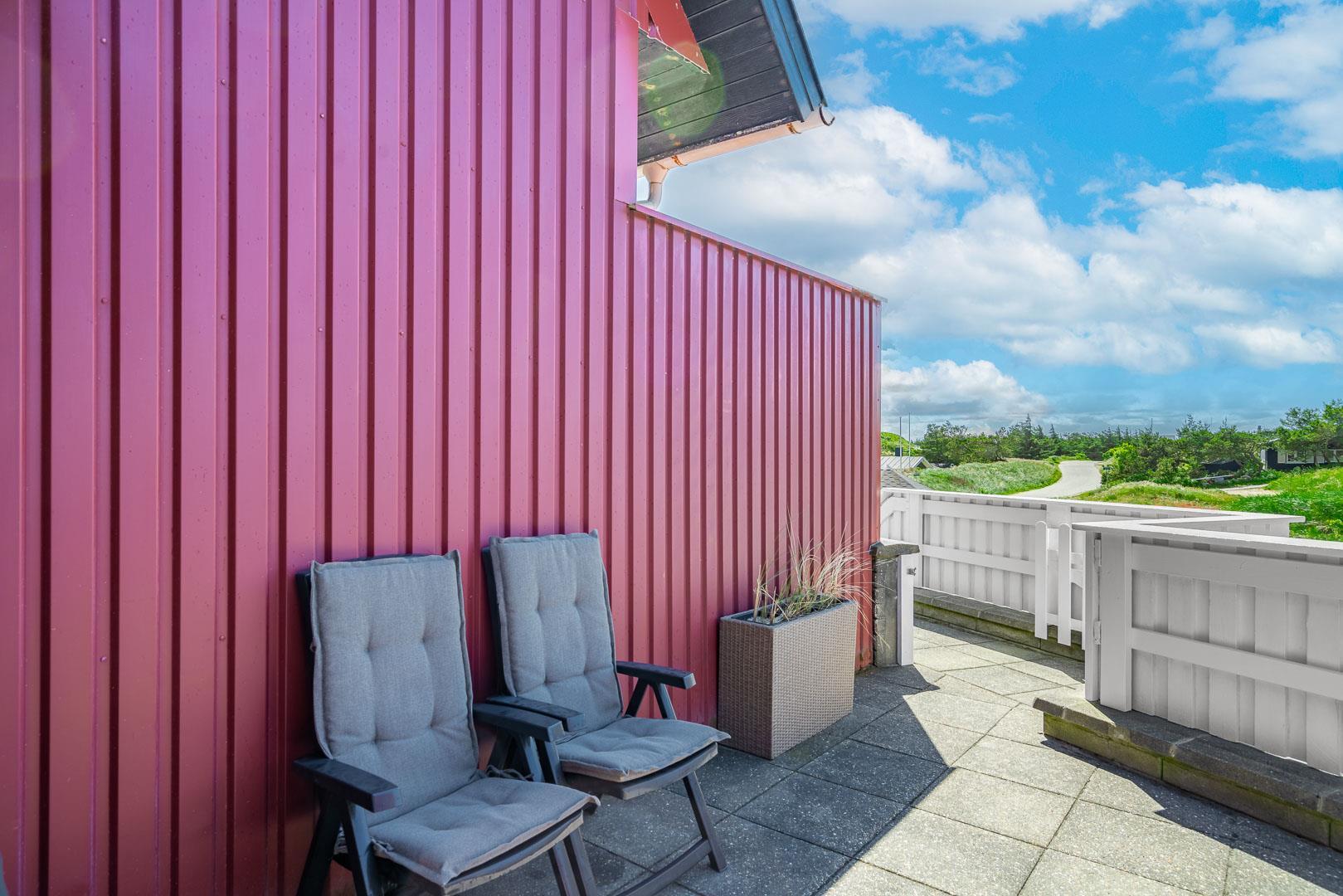 Til ferielejligheden er der en privat sydvendt terrasse, som giver dig mulighed for at nyde solens stråler hele dagen – perfekt til at nyde morgenkaffen eller en hyggelig middag under åben himmel. Der er adgang til TV med danske, tyske og internationale kanaler, wifi, Blu-ray-afspiller og DAB-radio, så underholdningen er sikret, hvis du ønsker en aften indendørs.