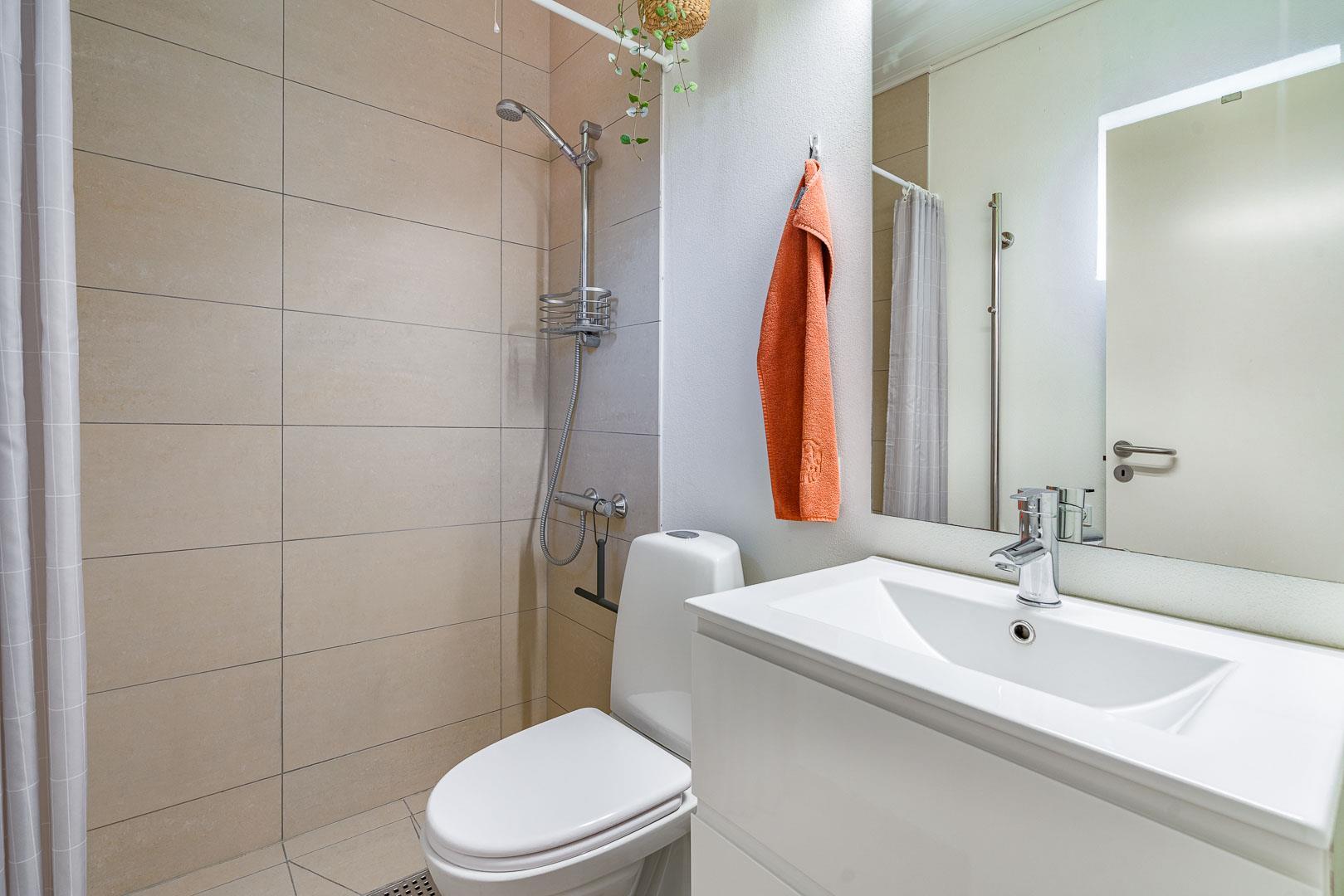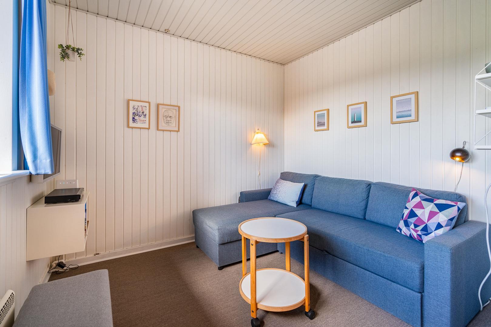 I soveværelset finder du en behagelig seng, nye kommoder og praktisk opbevaring, så du kan pakke ud og føle dig hjemme med det samme.