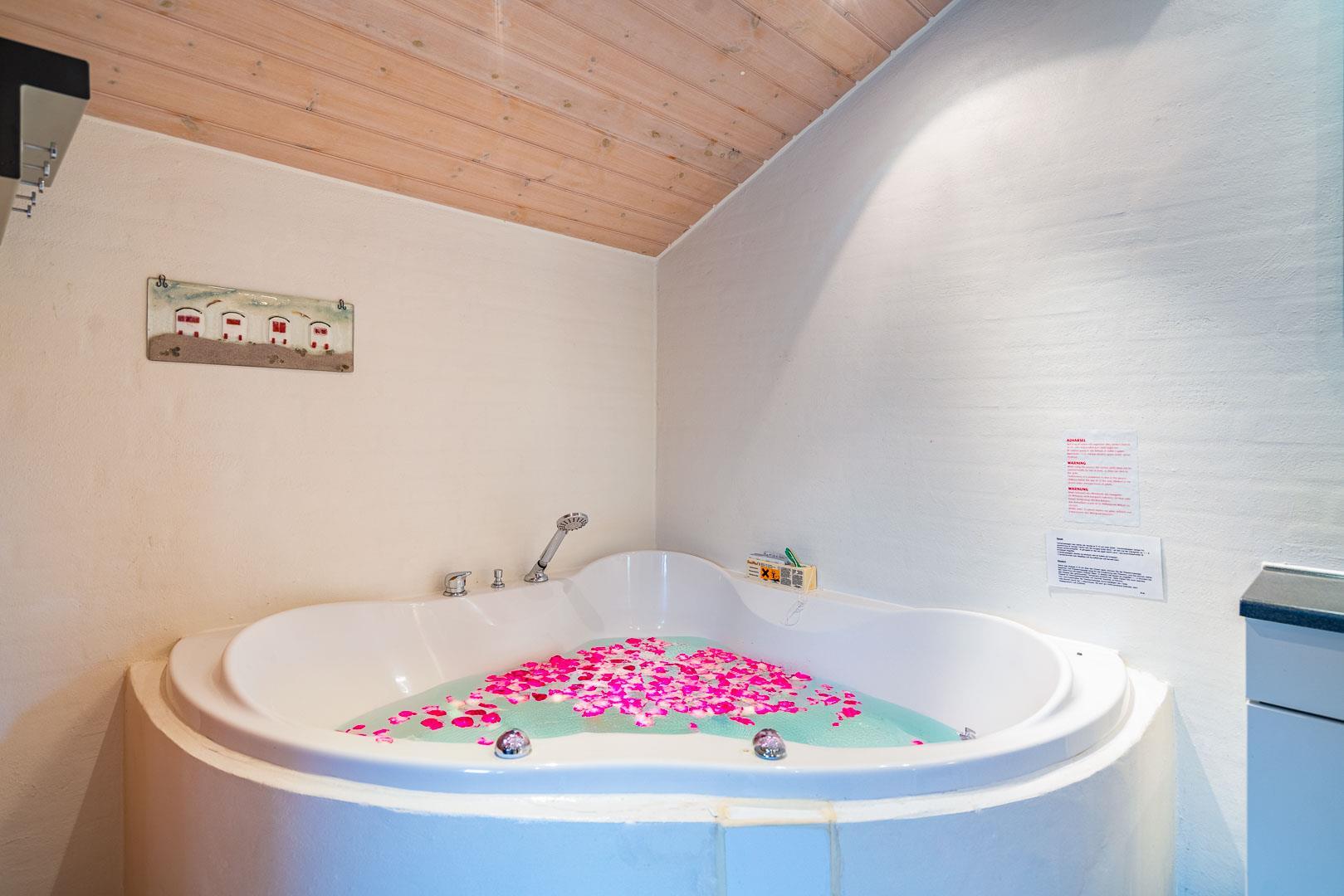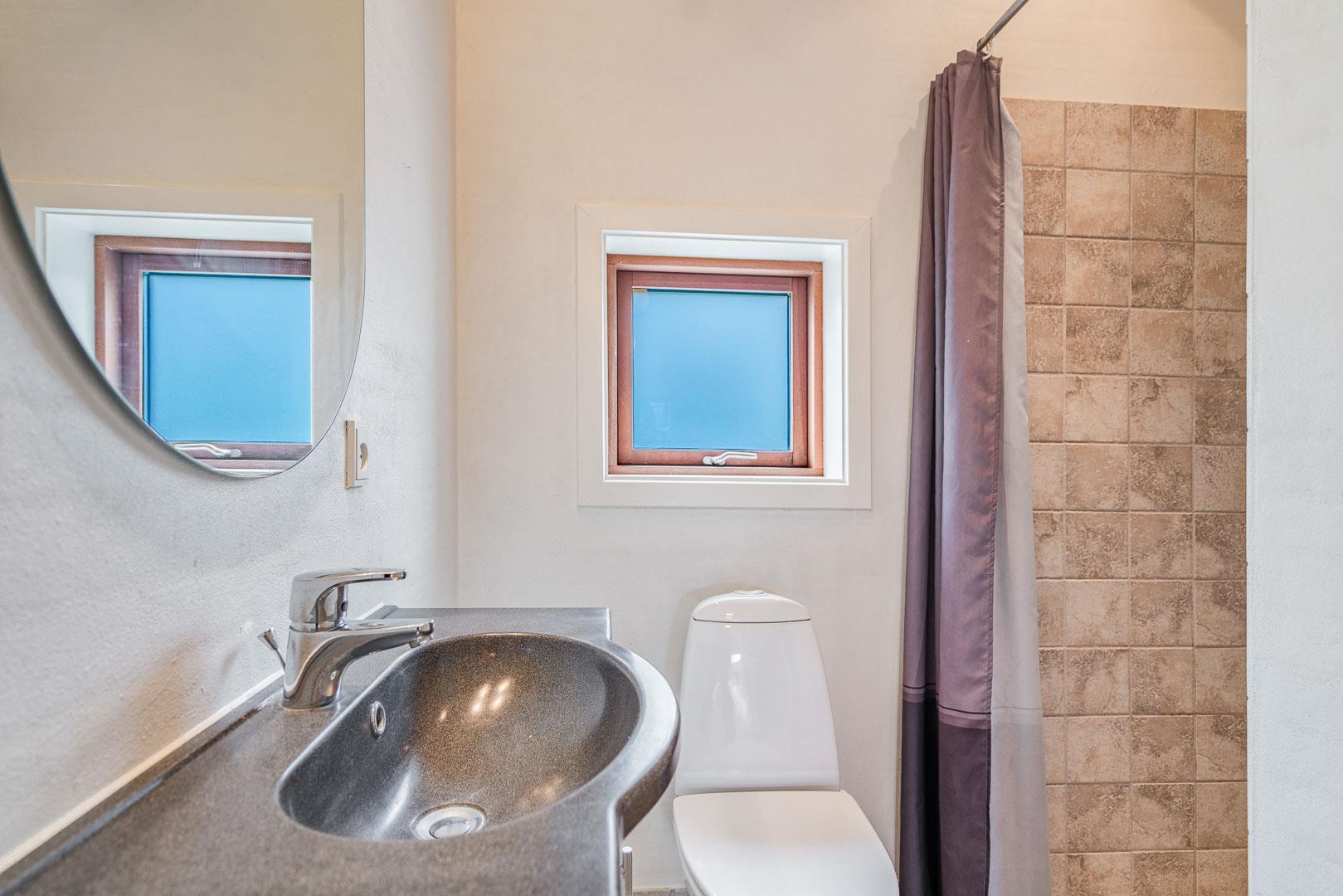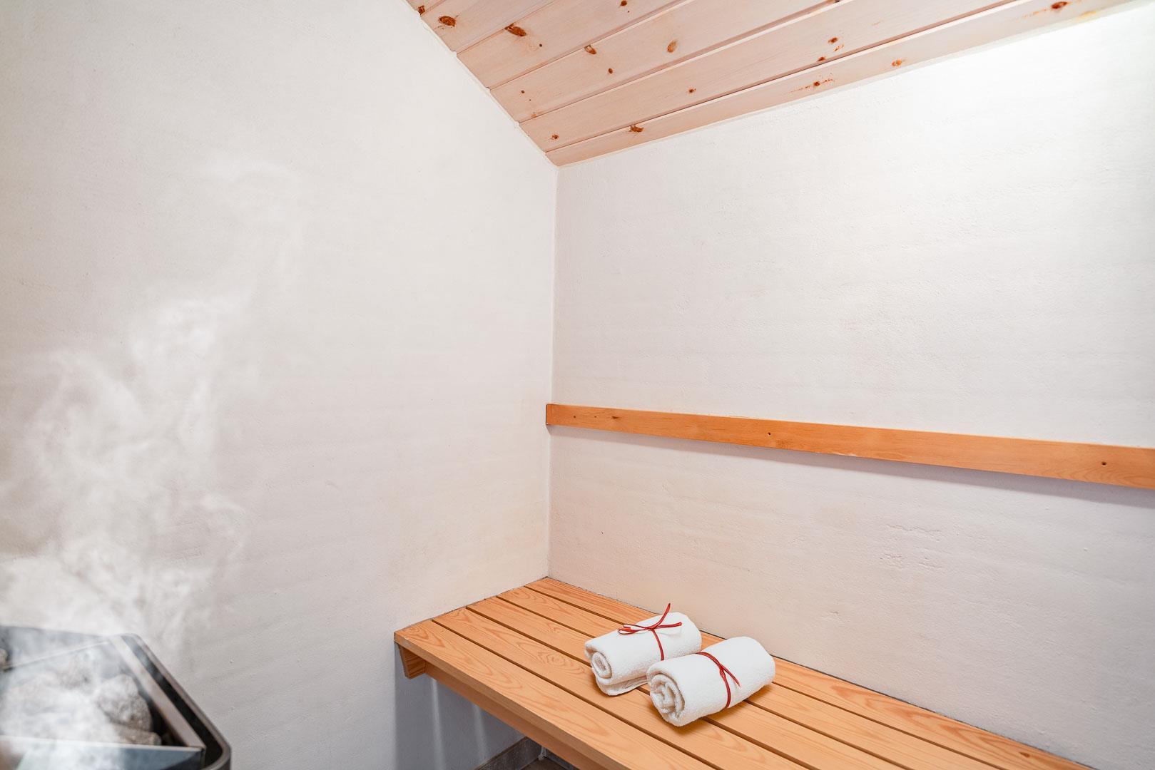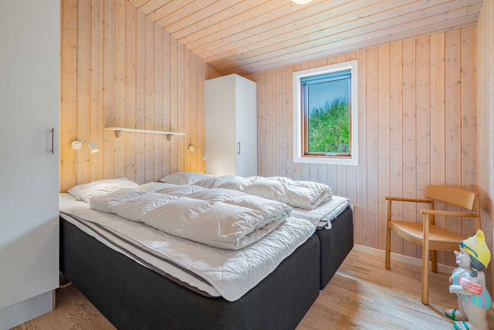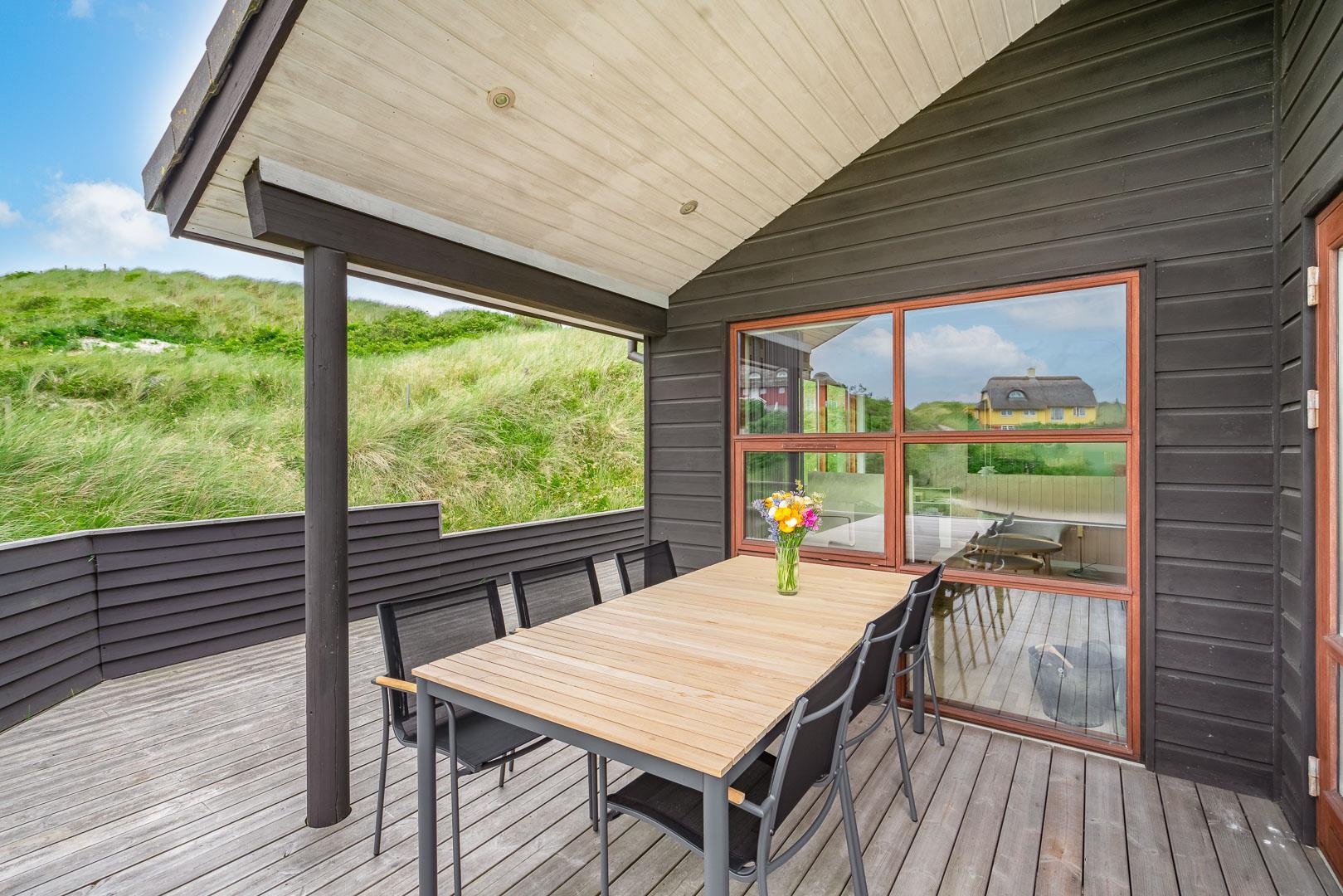 Sommerhuset byder på to badeværelser, spabad og sauna, hvor du kan slappe af efter en dag ved stranden. Udendørs finder du flere terrasser med en smuk udsigt over den kuperede klitgrund. Her kan du nyde solen i liggestole, grille lækre måltider og opleve den friske havluft.