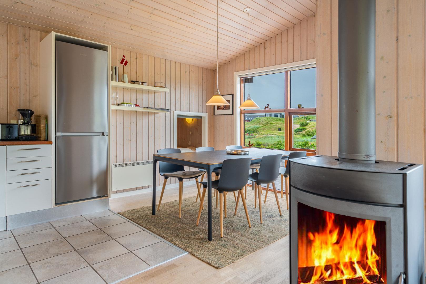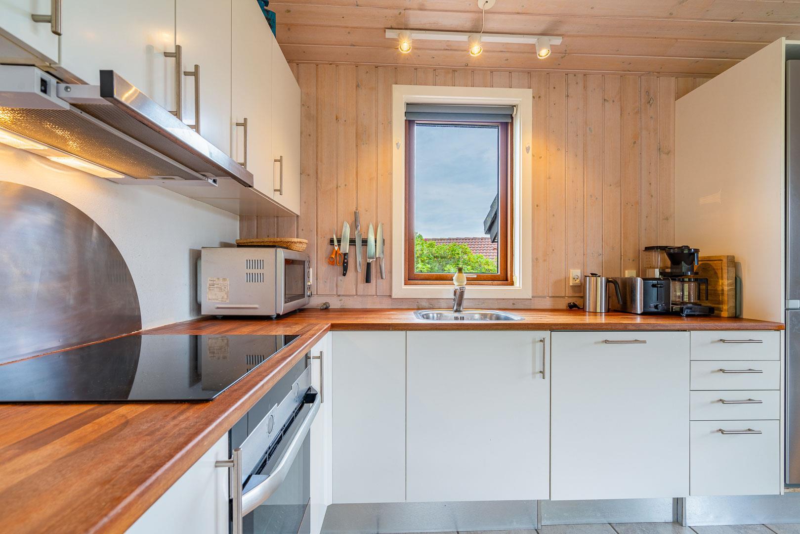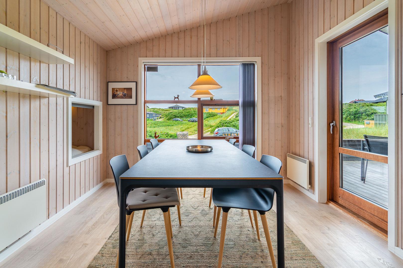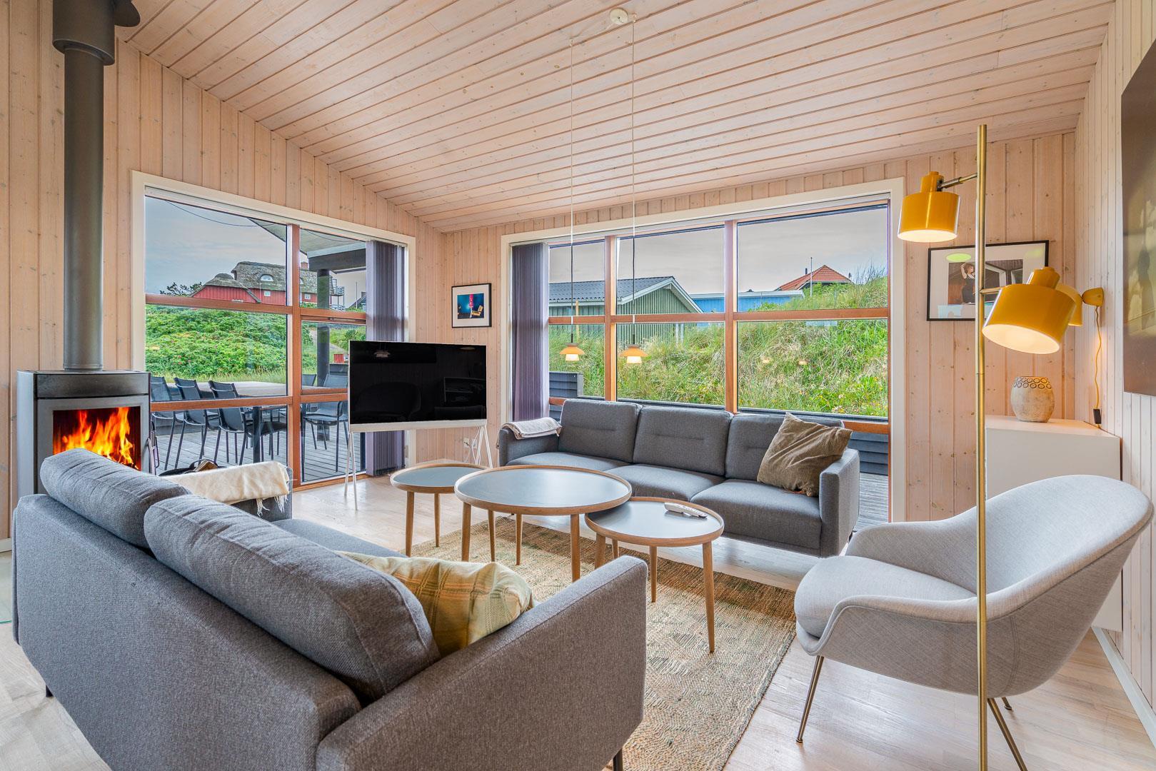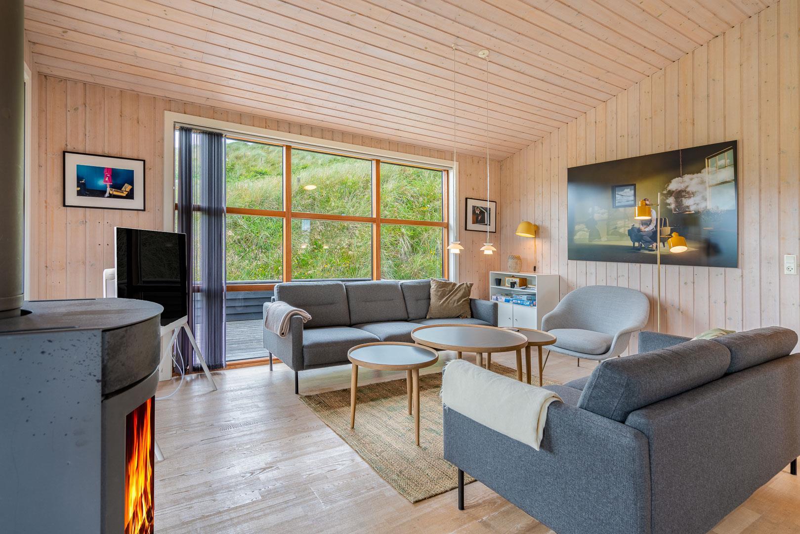 Sommerhuset er designet med fokus på både æstetik og funktionalitet. Det lyse og venlige opholdsrum har store vinduespartier, der giver en skøn atmosfære og bringer naturen helt ind i stuen. Det veludstyrede køkken er åbent og indbydende, perfekt til hyggelige måltider med familie og venner.