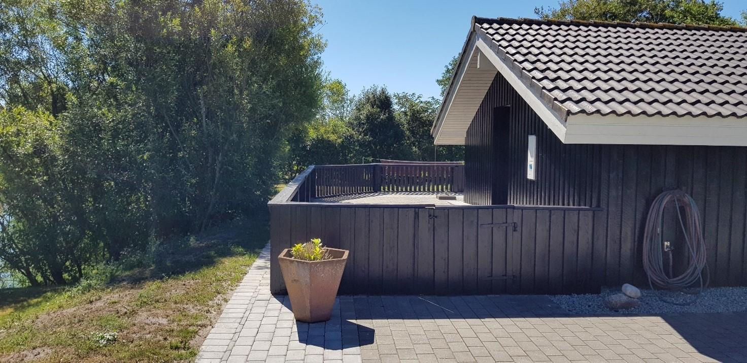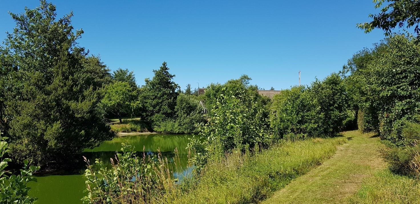 Udenfor venter et skønt område hvor du bl.a. finder en lukket terrasse og en smuk sø. Grunden er perfekt til naturskønne gåture rundt om søren og roligt samvær. Den hyggelige bålplads ved søren giver mulighed for madlavning over åben ild, mens gyngestativet og basketballkurven sørger for masser af legemuligheder.