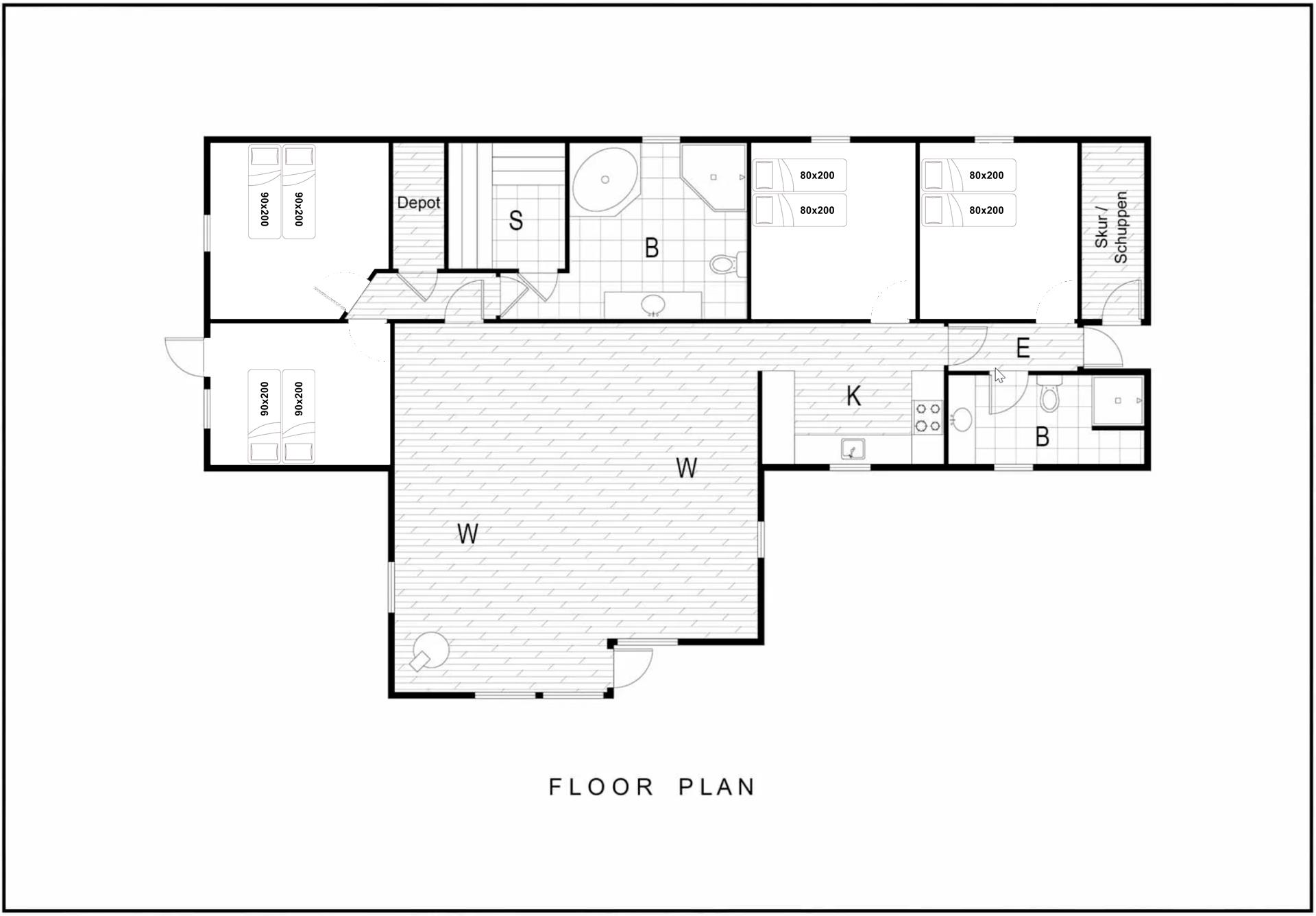 Sengestørrelse: 2 dobbeltsenge med 2 madrasser 90 x 200 cm + 2 dobbeltsenge med 2 madrasser 80 x 200 cm.