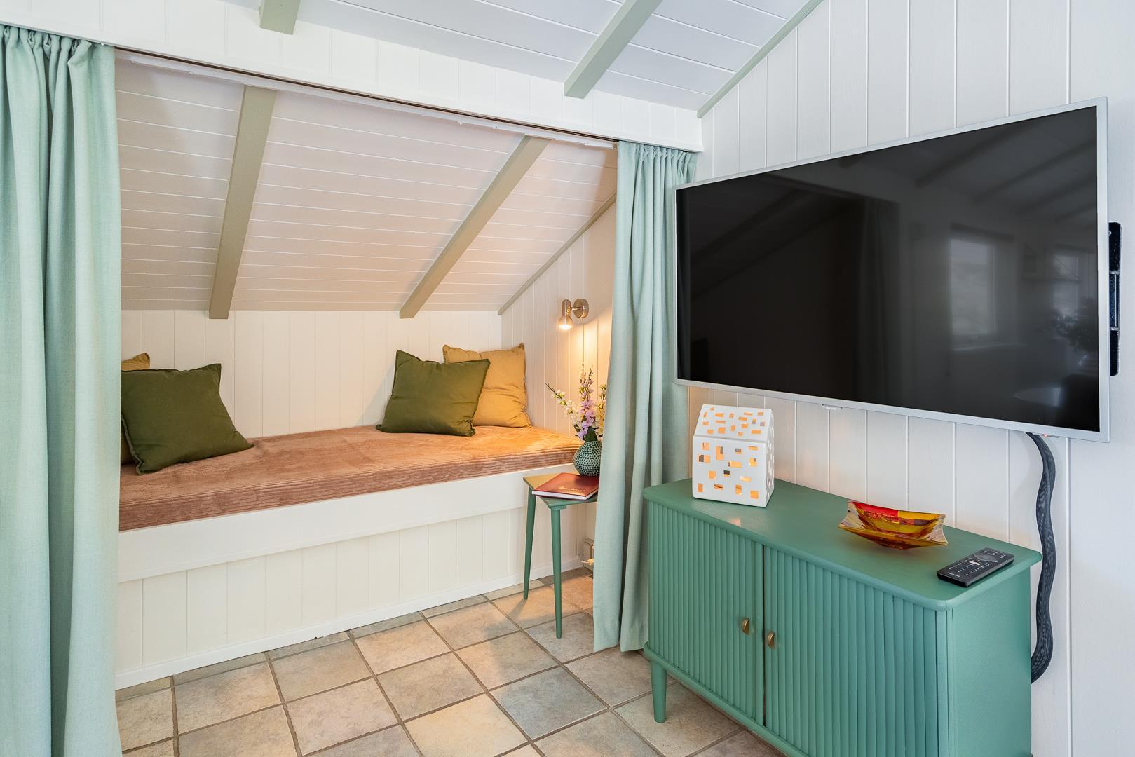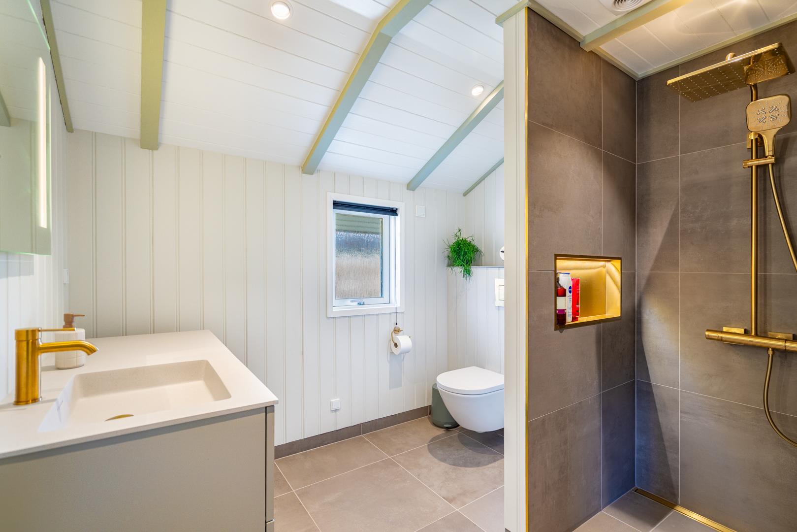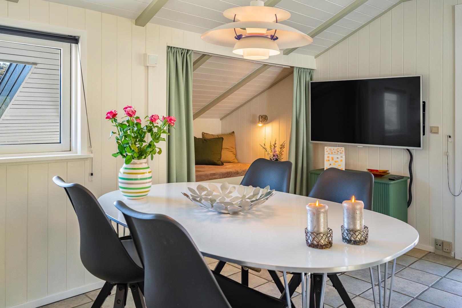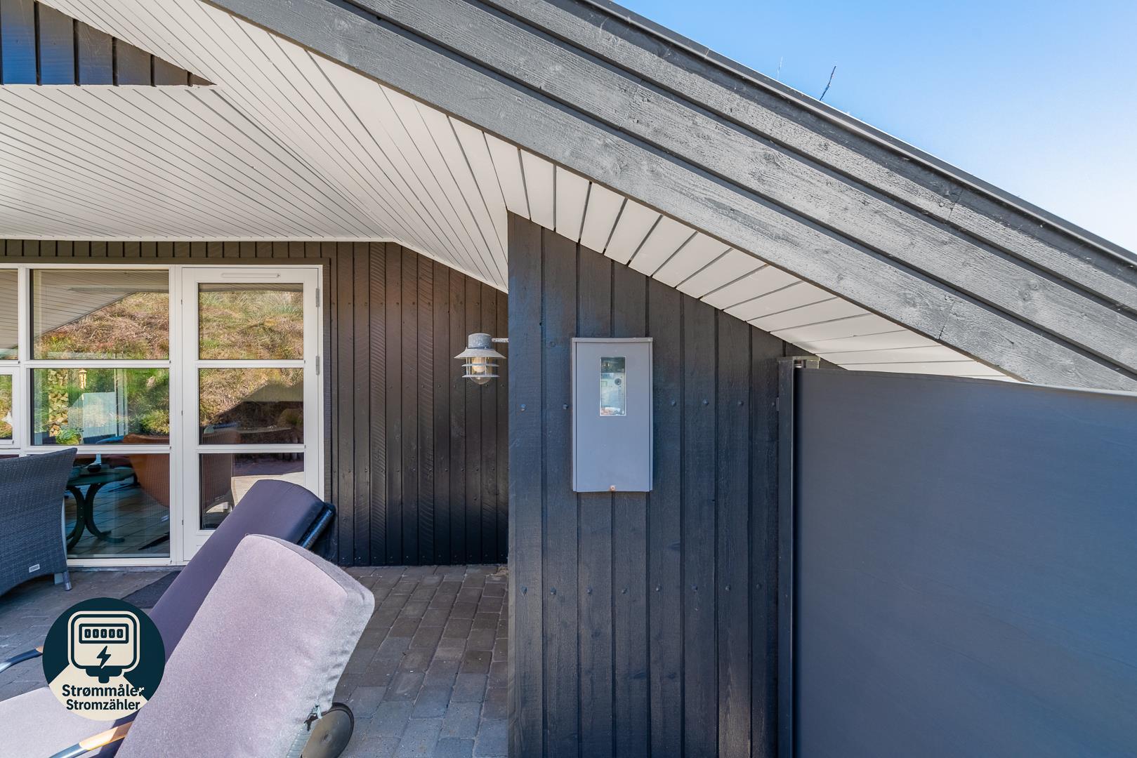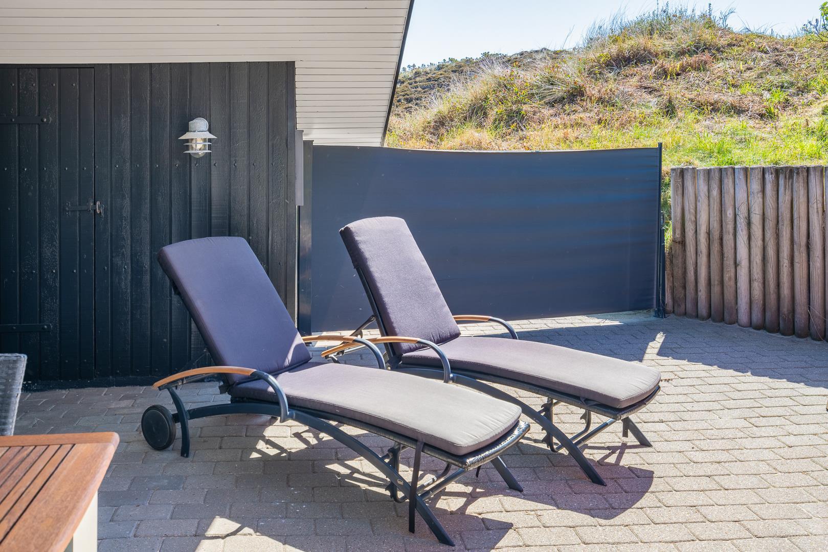 Hyggeligt og lyst indrettet feriehus, beliggende på en større kuperet naturgrund. Delvis overdækket flisebelagte terrasse som er på 2 sider af feriehuset og omkranset af en klit, som giver god læ. Lyst og godt indrettet køkken som ligger i åben forbindelse til rummelig stue med brændeovn og gode møbler . Der er klinkegulve i stue og køkken med gulvvarme og i værelserne er der trægulv. Lækkert veludstyret køkken, samt flot badeværelse. Huset fremstår overalt lyst og venligt.