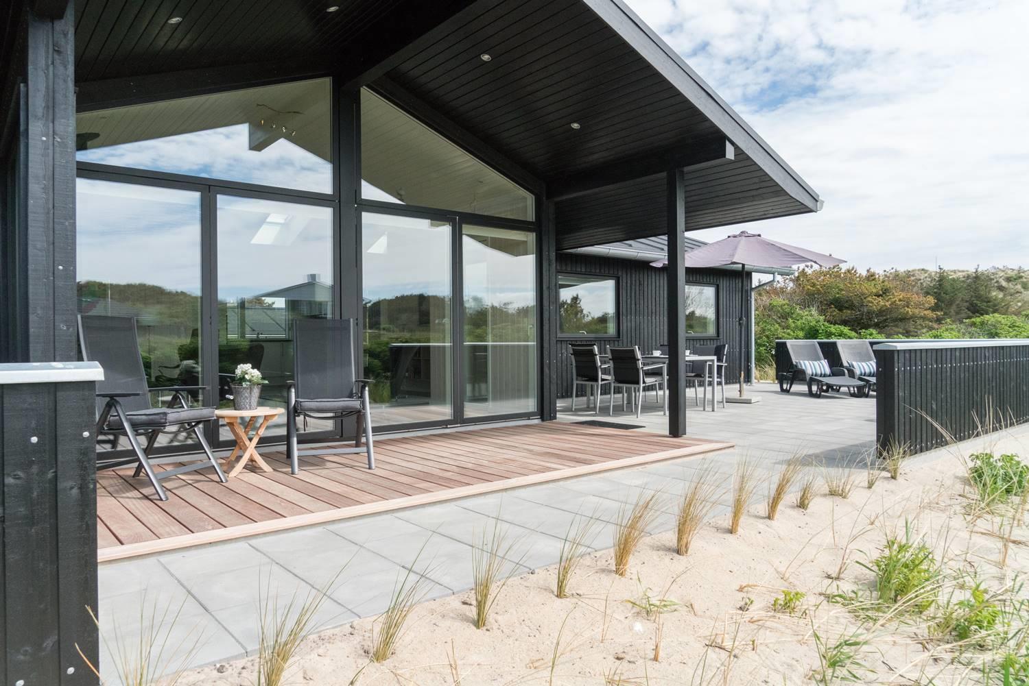 Sommerhuset er omgivet af flere skønne terrasser, der indbyder til afslapning hele dagen. Uanset vindretning kan du altid finde læ og nyde solen i det naturskønne klitlandskab.