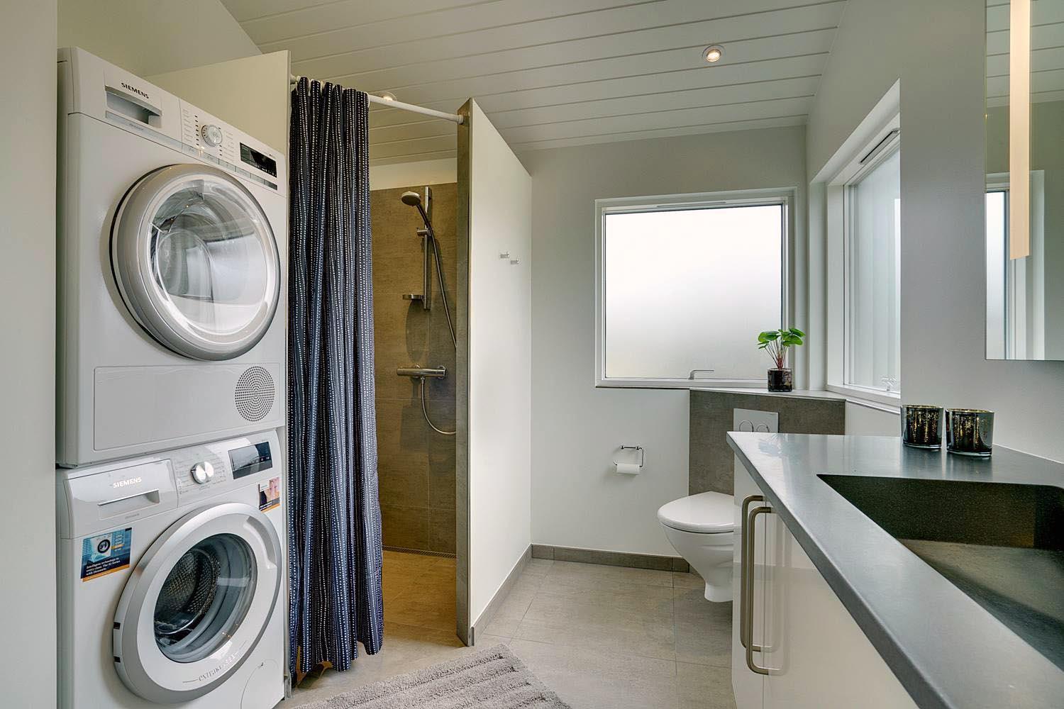 Huset råder over to moderne badeværelser, begge med bruser og behagelig gulvvarme – perfekt til afslapning efter en lang dag i naturen.