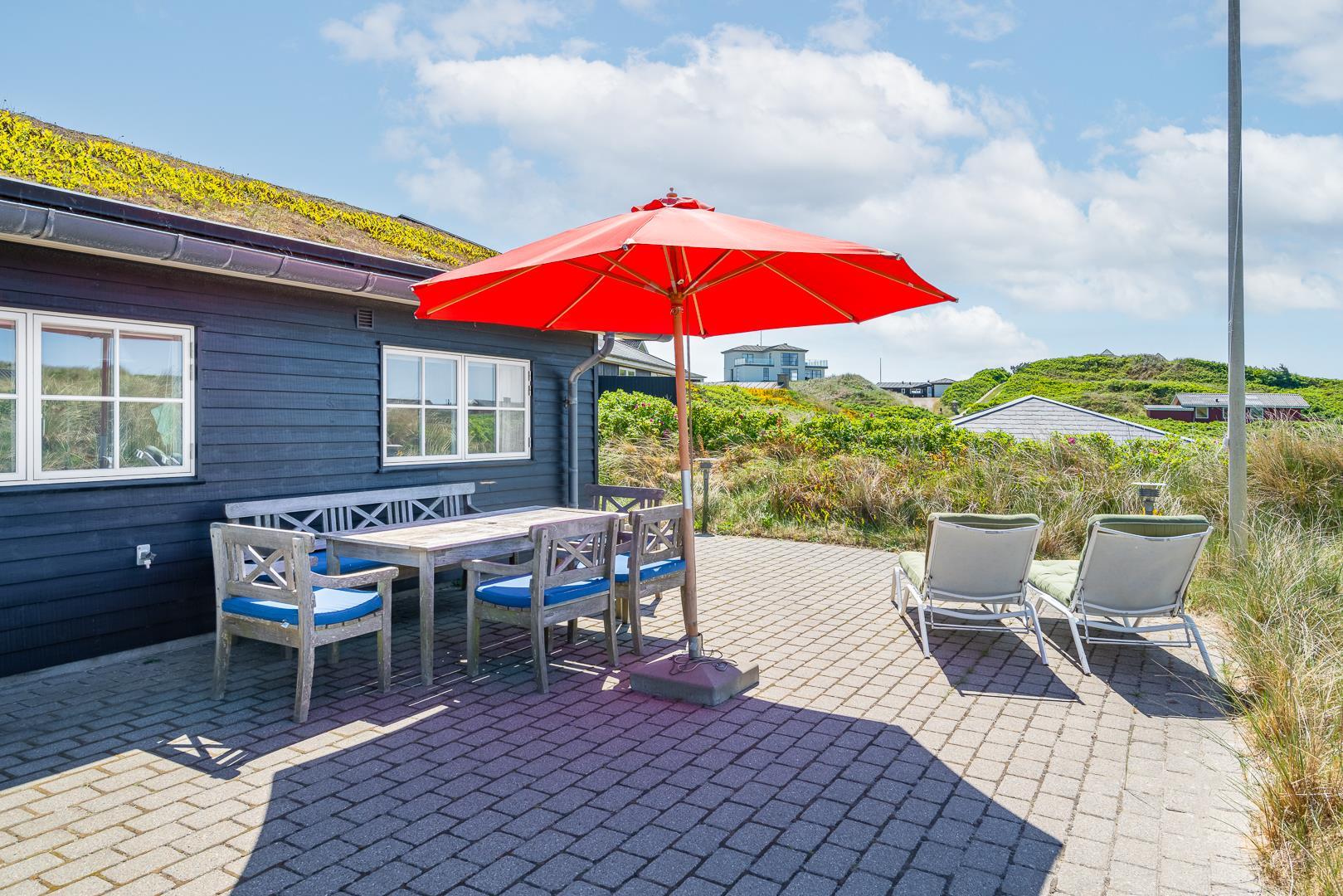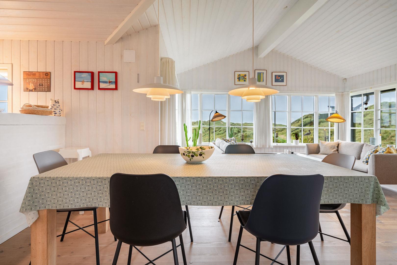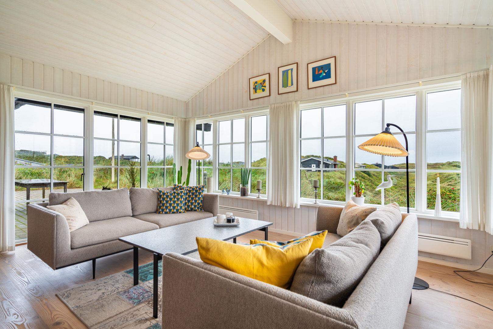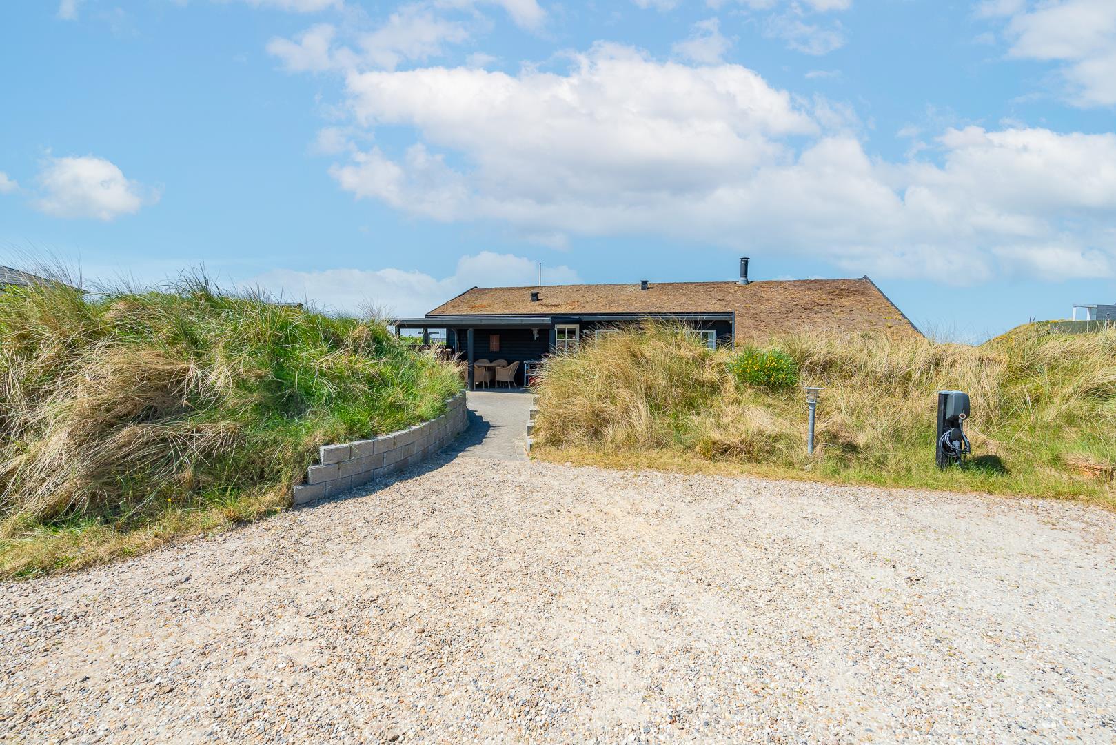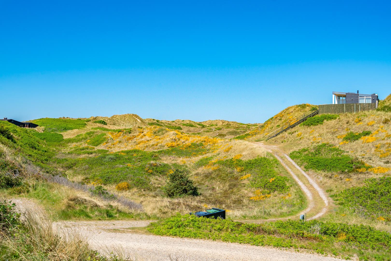 Huset har en unik beliggenhed, hvor du både kan nyde det storslåede klitlandskab og den korte afstand til Henne Strand by, som byder på hyggelige caféer, lækre restauranter og spændende specialbutikker. Du er tæt på et væld af aktiviteter, såsom vandreture, cykling, golf og naturligvis de lange, hvide sandstrande langs Vesterhavet.