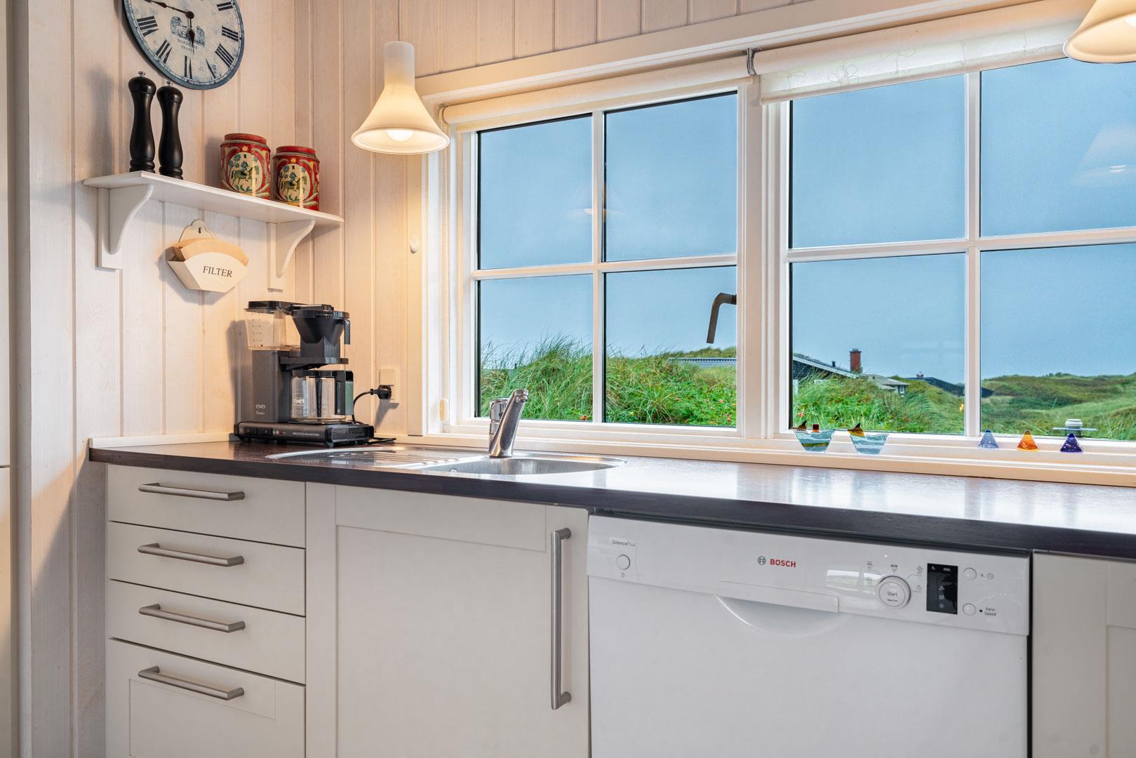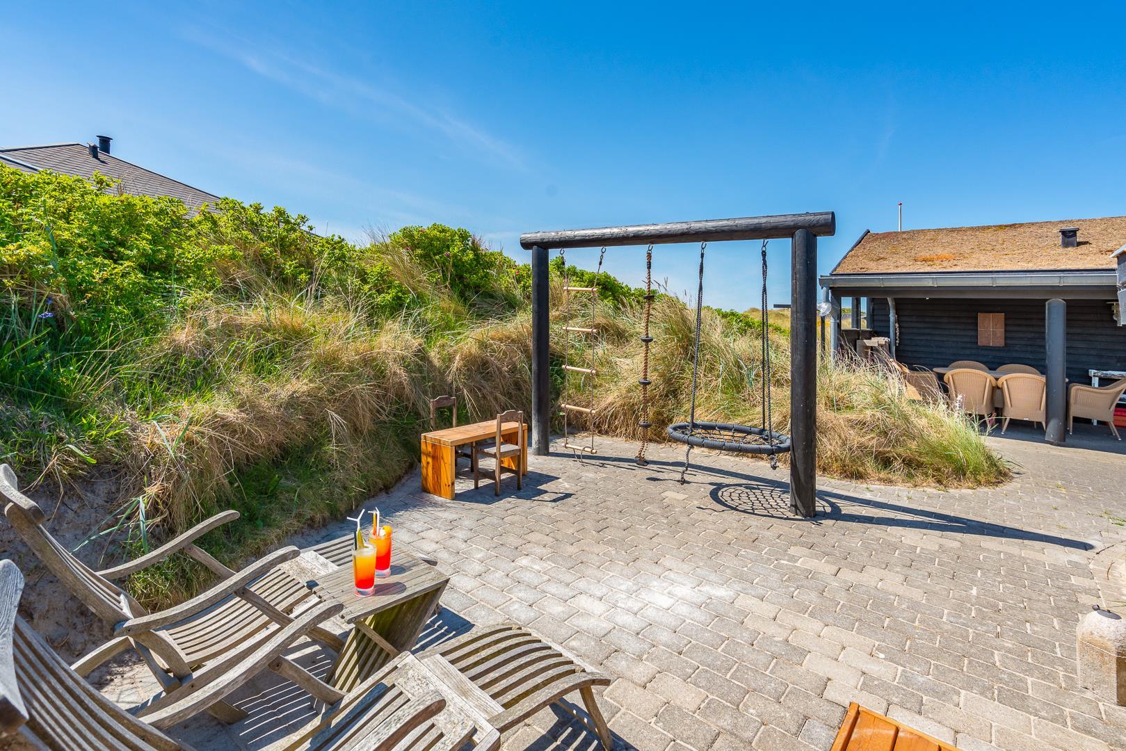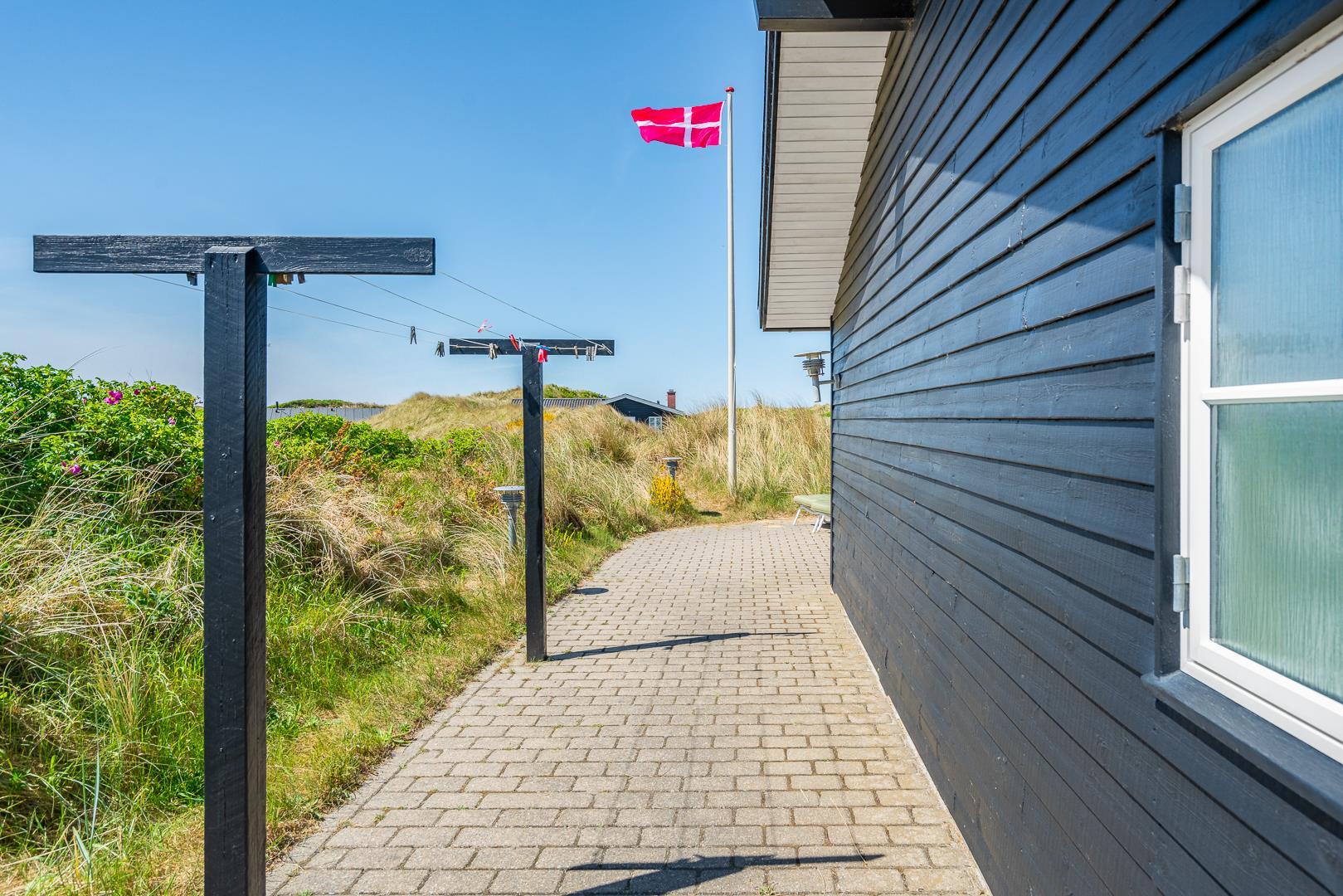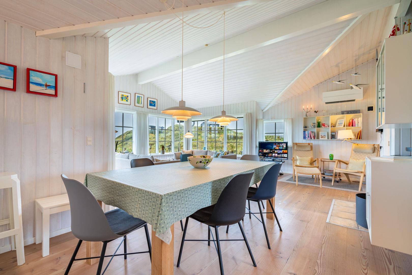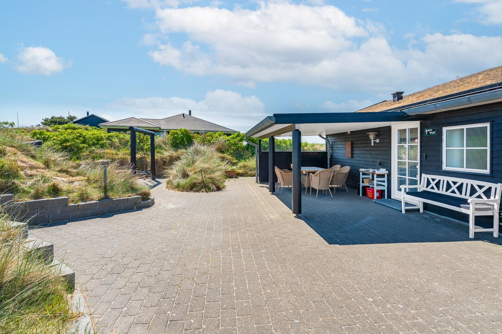 Huset har en unik beliggenhed, hvor du både kan nyde det storslåede klitlandskab og den korte afstand til Henne Strand by, som byder på hyggelige caféer, lækre restauranter og spændende specialbutikker. Du er tæt på et væld af aktiviteter, såsom vandreture, cykling, golf og naturligvis de lange, hvide sandstrande langs Vesterhavet.
