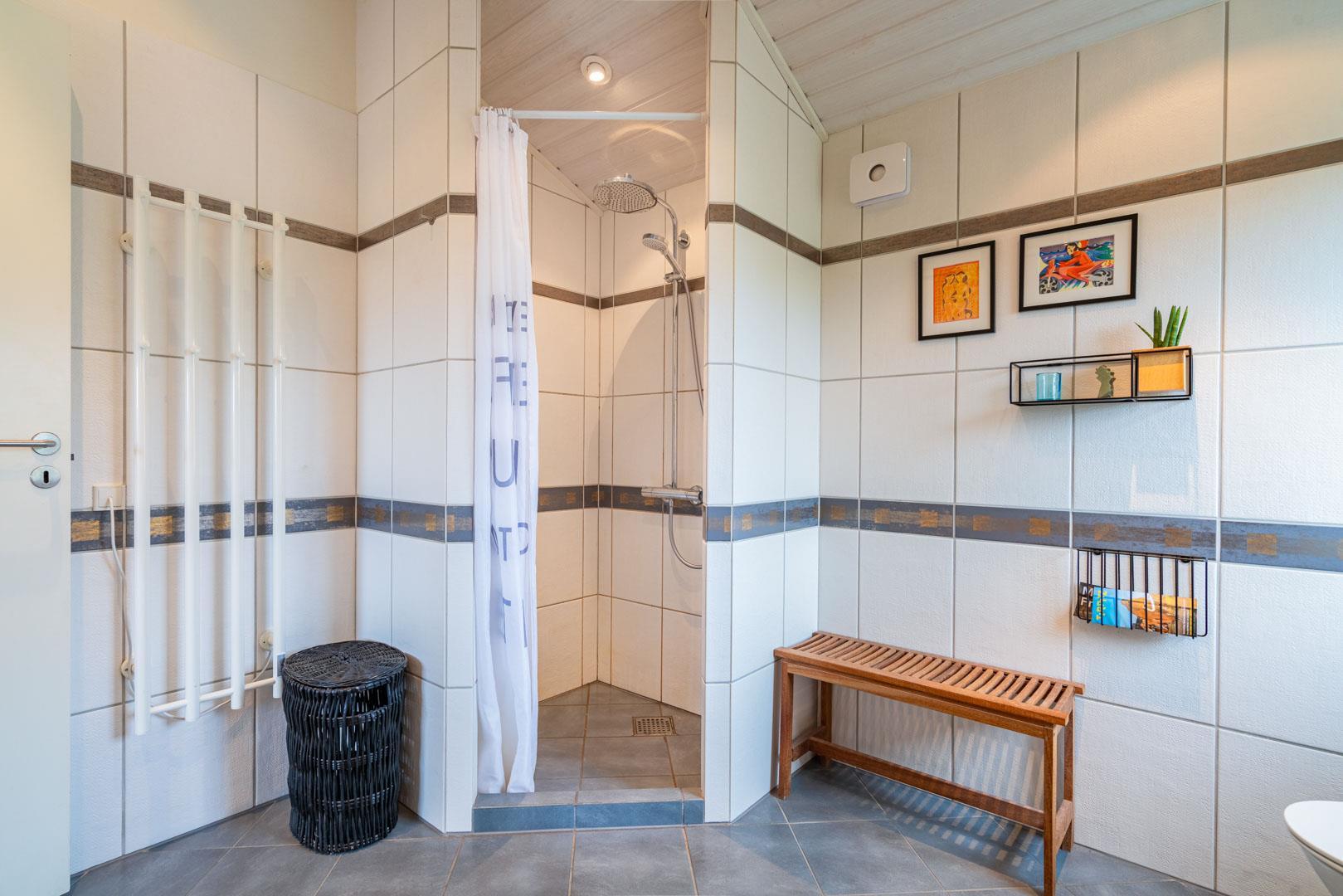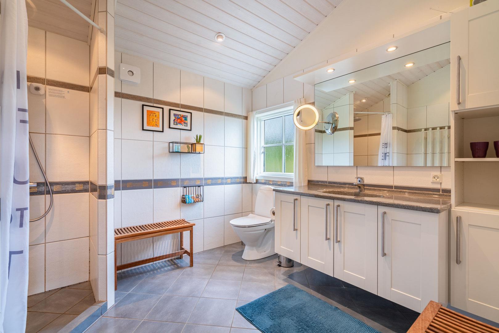 Alle opholdsrum og soverum er udstyret med smukke trægulve, der giver en varm og hyggelig atmosfære. Husets to moderne badeværelser har bruser og gulvvarme – perfekt til afslapning efter en dag ved stranden eller på vandretur i klitterne.
