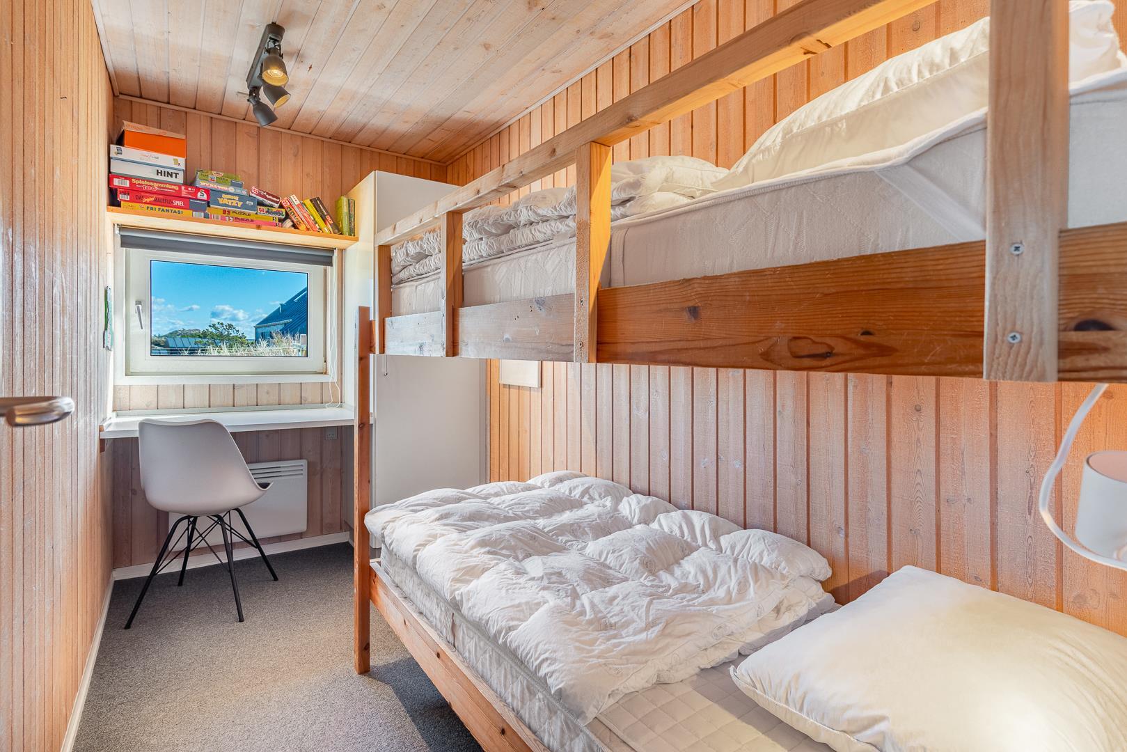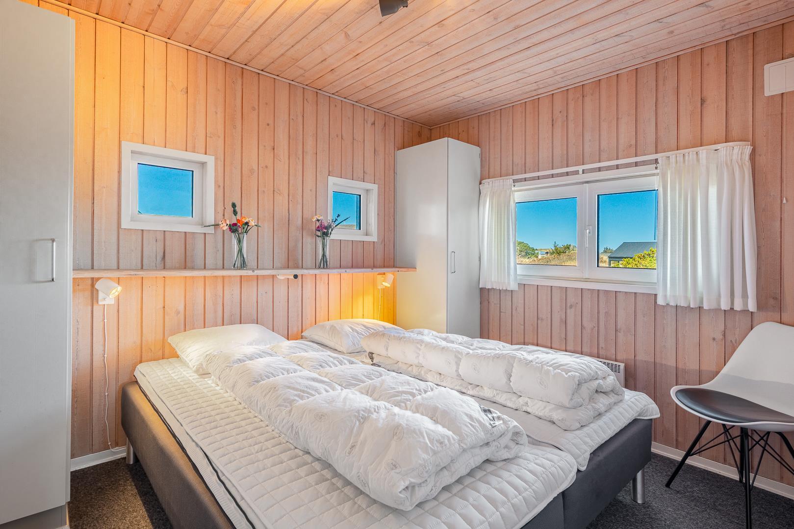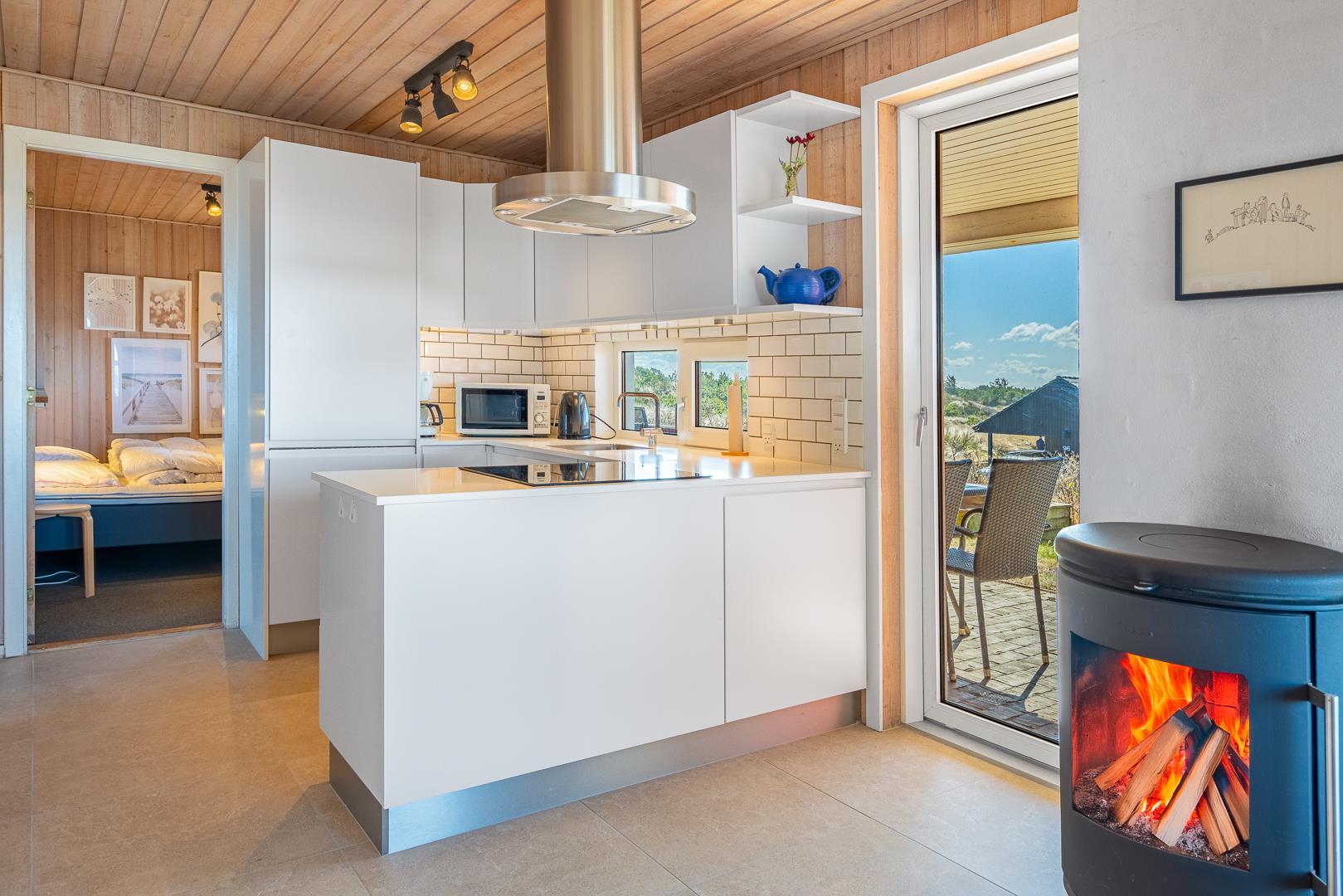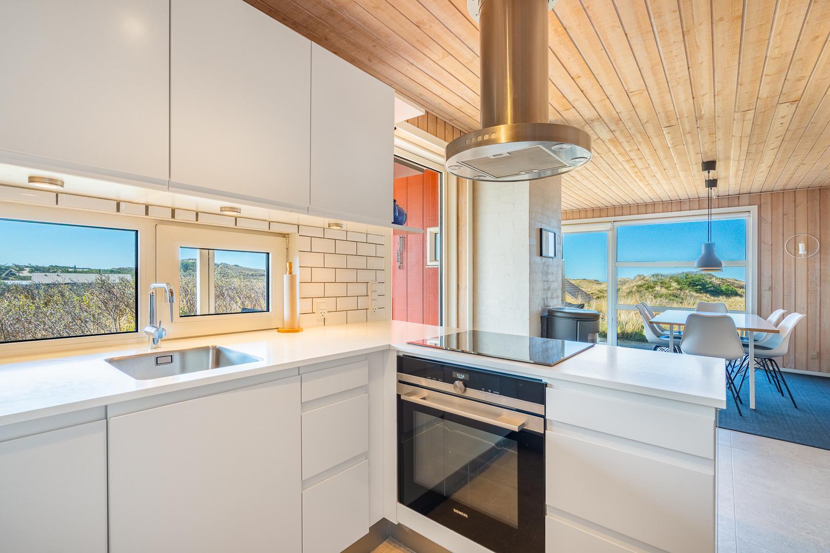 Fra stuen og terrassen kan du nyde en betagende udsigt over det smukke klitlandskab. Den lyse og rummelige stue er indrettet med gode møbler og har direkte udgang til en vestvendt terrasse, hvor du kan slappe af og nyde solnedgangen.