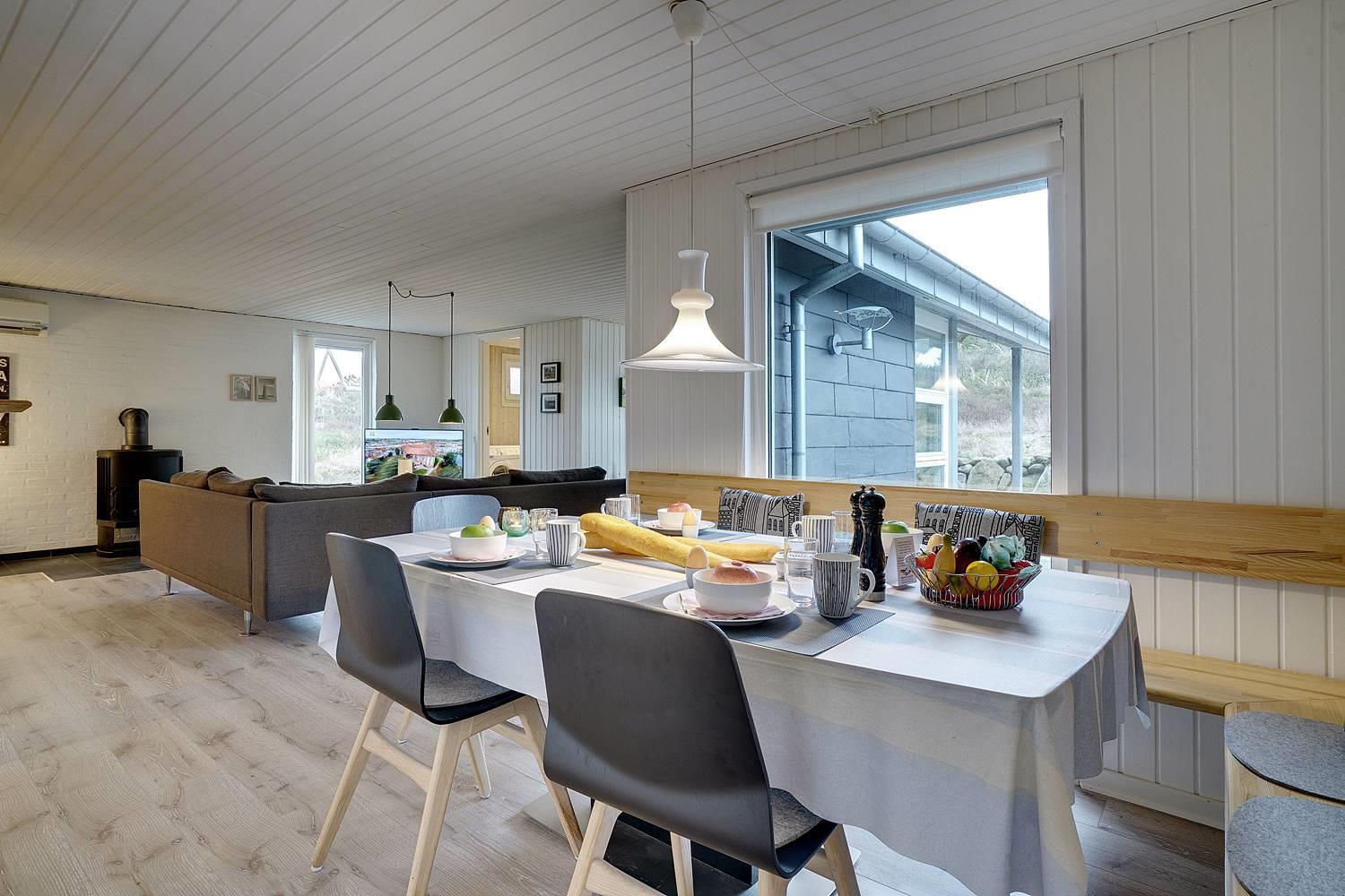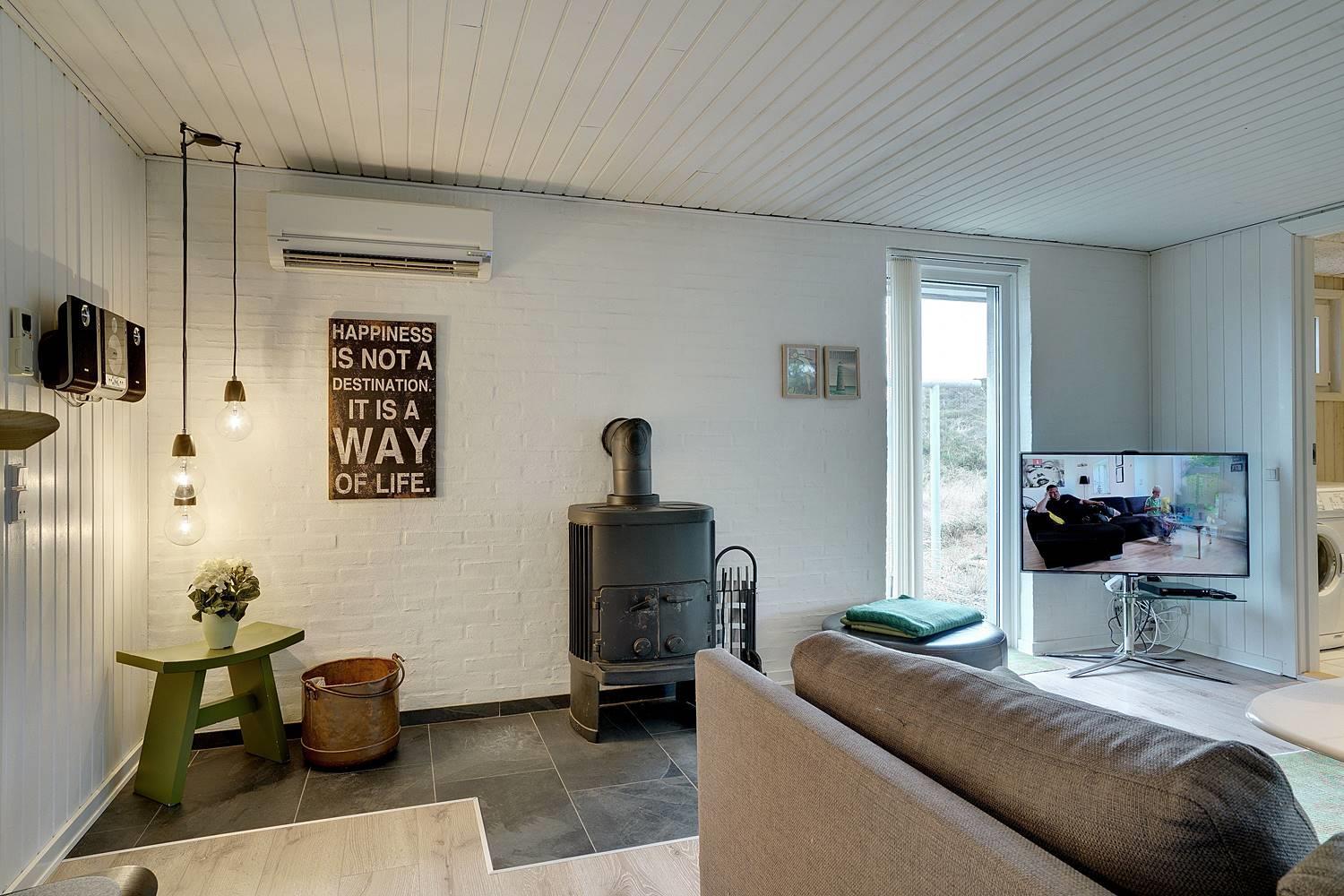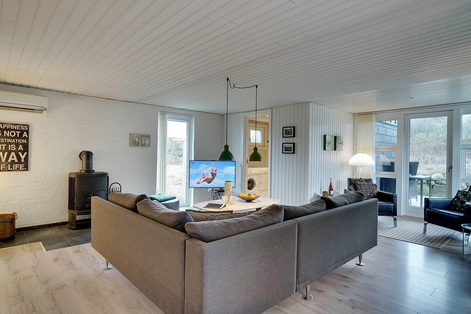 Fra den hyggelige og pænt møblerede stue er der udgang til den skønne terrasse, hvorfra solen og grillaftenen kan nydes i fulde drag.