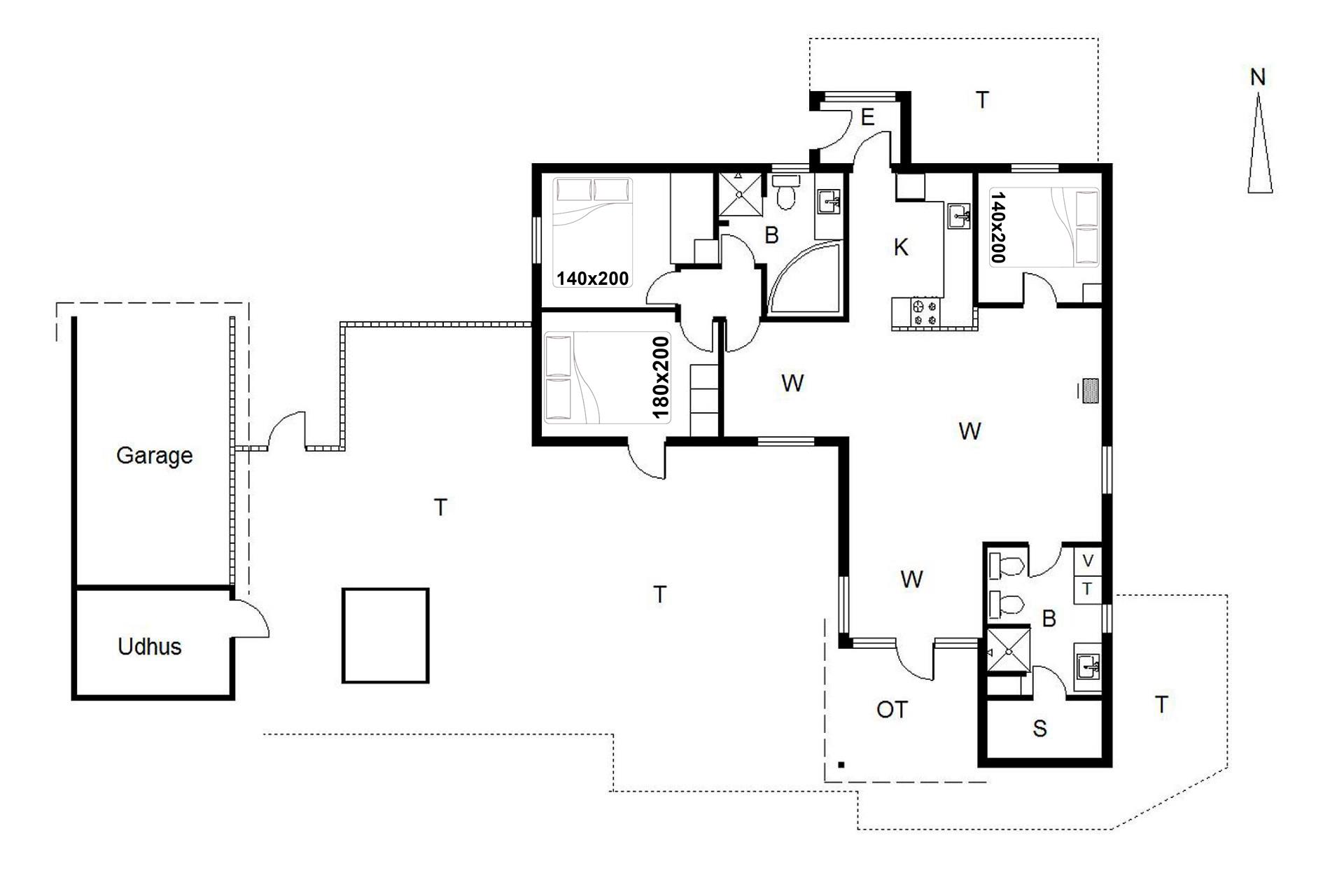 Sengestørrelser: 1 dobbeltseng 180 x 200 cm + 2 dobbeltsenge 140 x 200 cm.