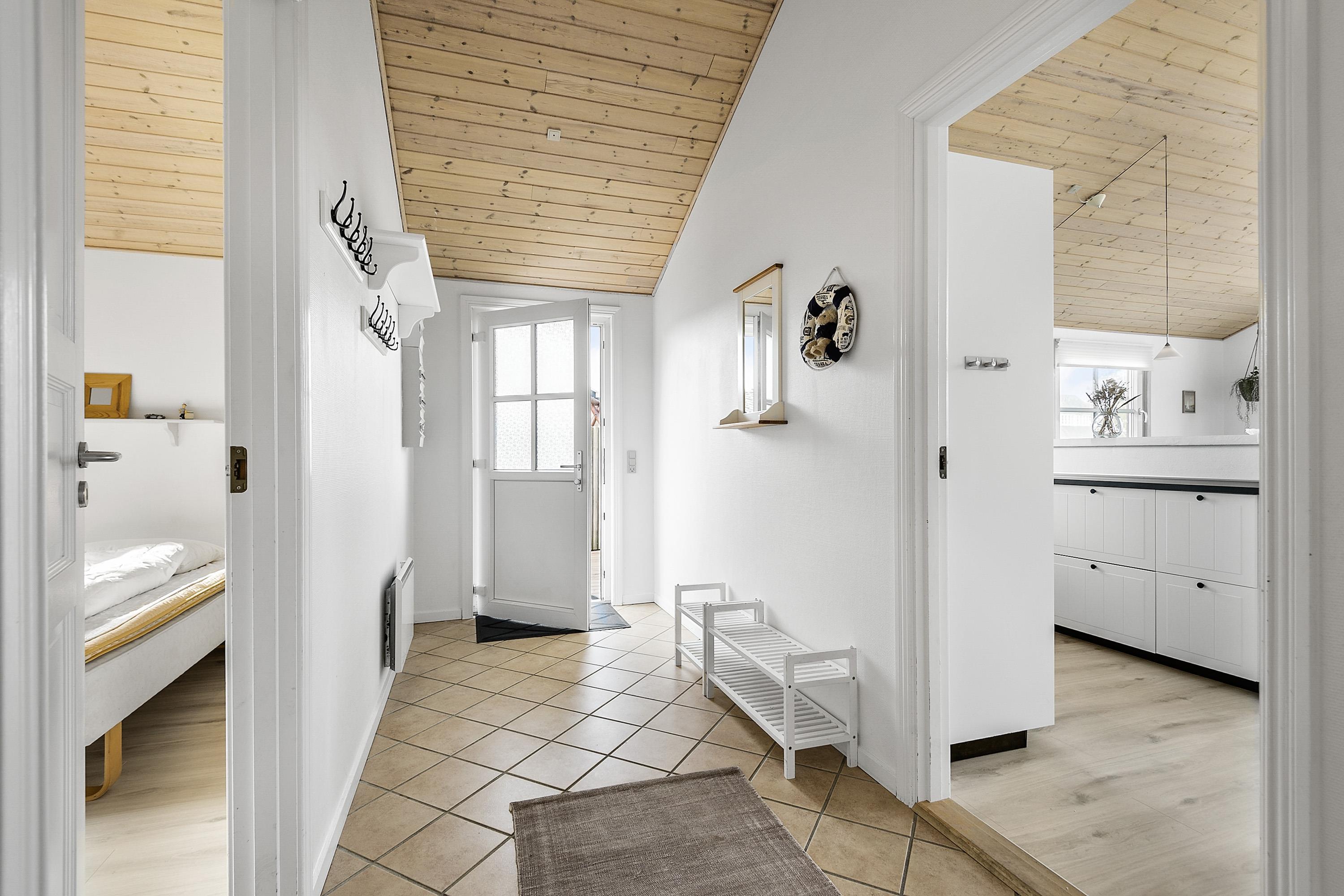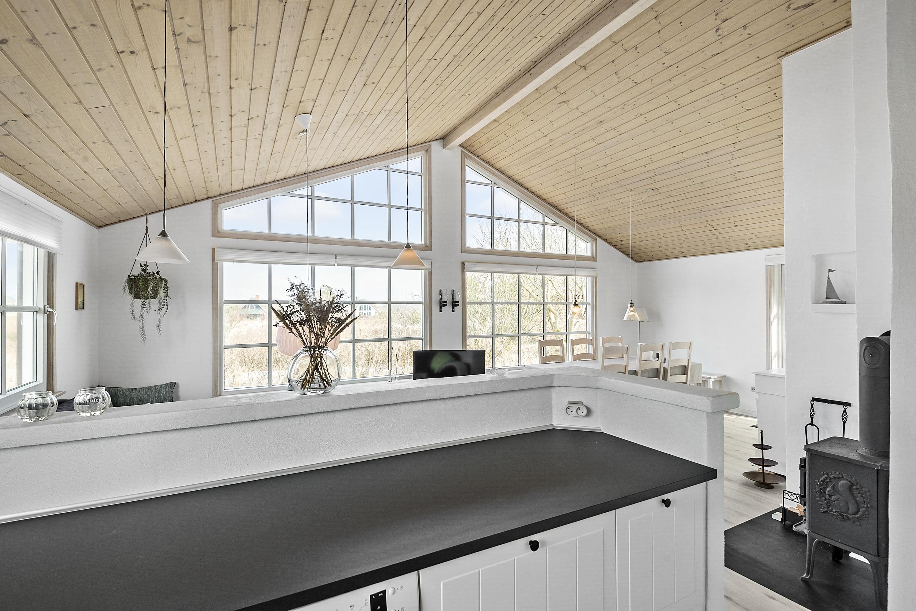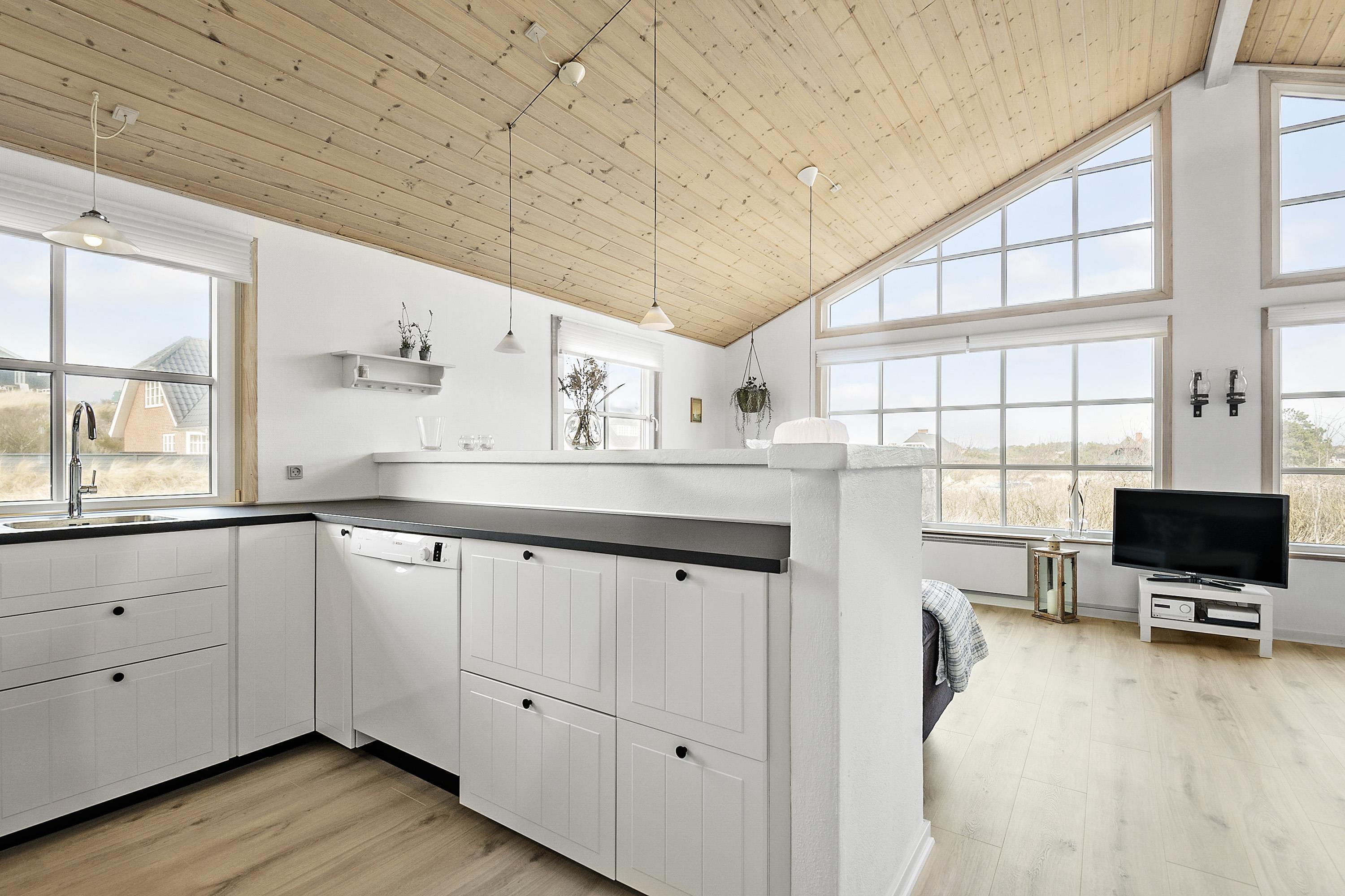 I sommerhuset er der dejligt højt til loftet og vinduesparti i kip der gør huset lyst og sommerligt. I 2021 har huset fået et moderne lyst køkken der er i åben forbindelse med stuen. Huset har 3 gode soverum (2 med dobbeltsenge og et med køjesenge (120 x 200 cn + 70 x 200 cm).