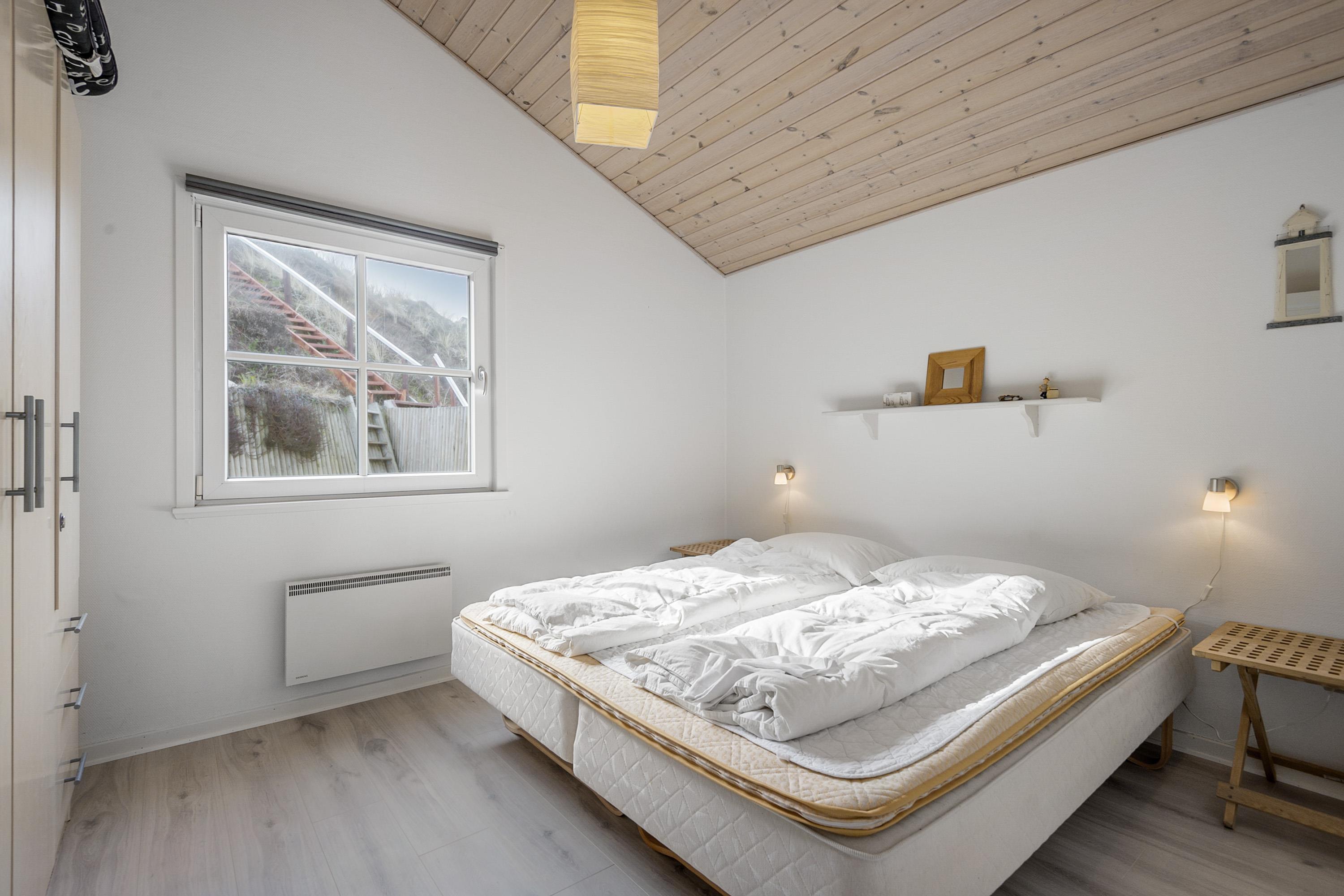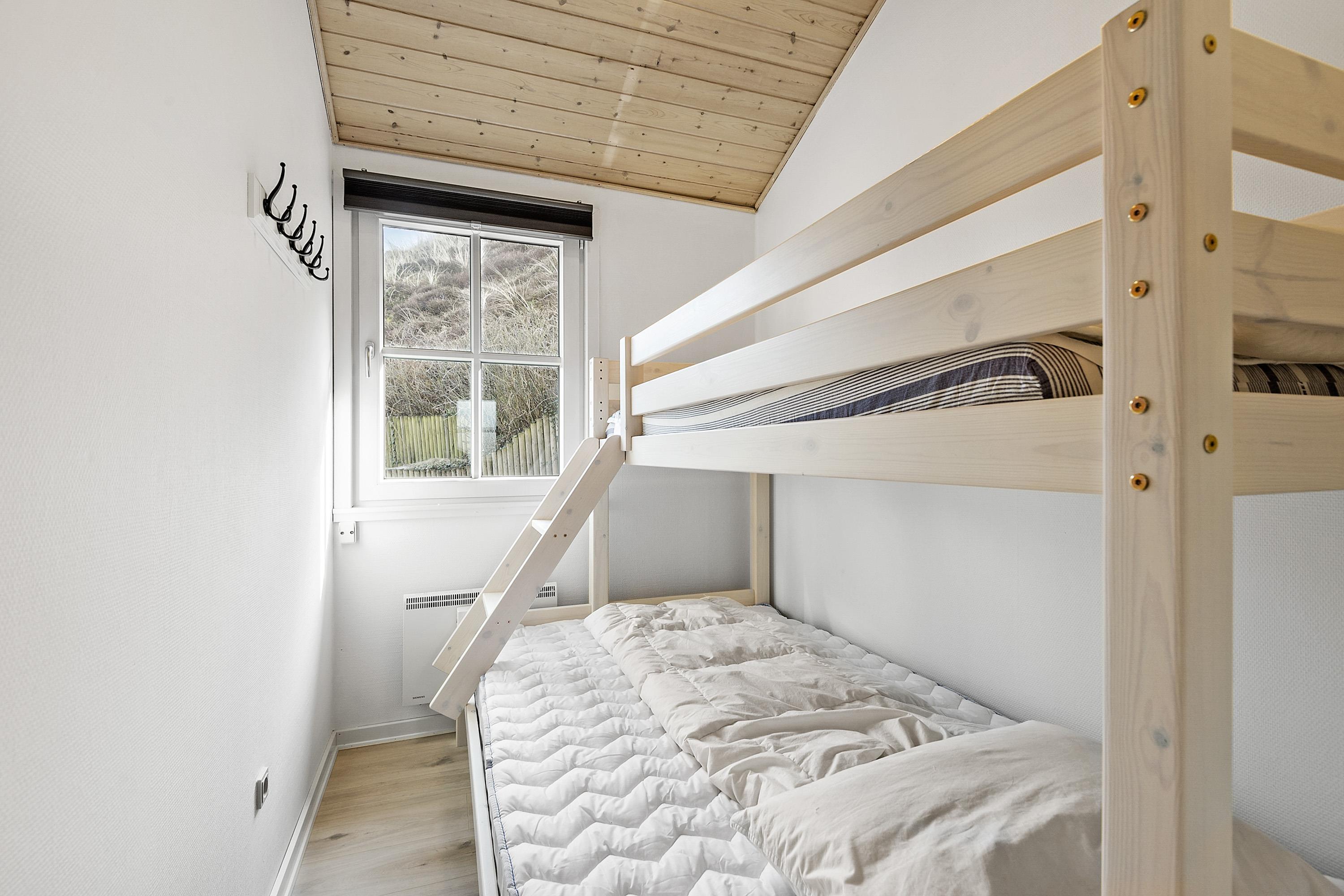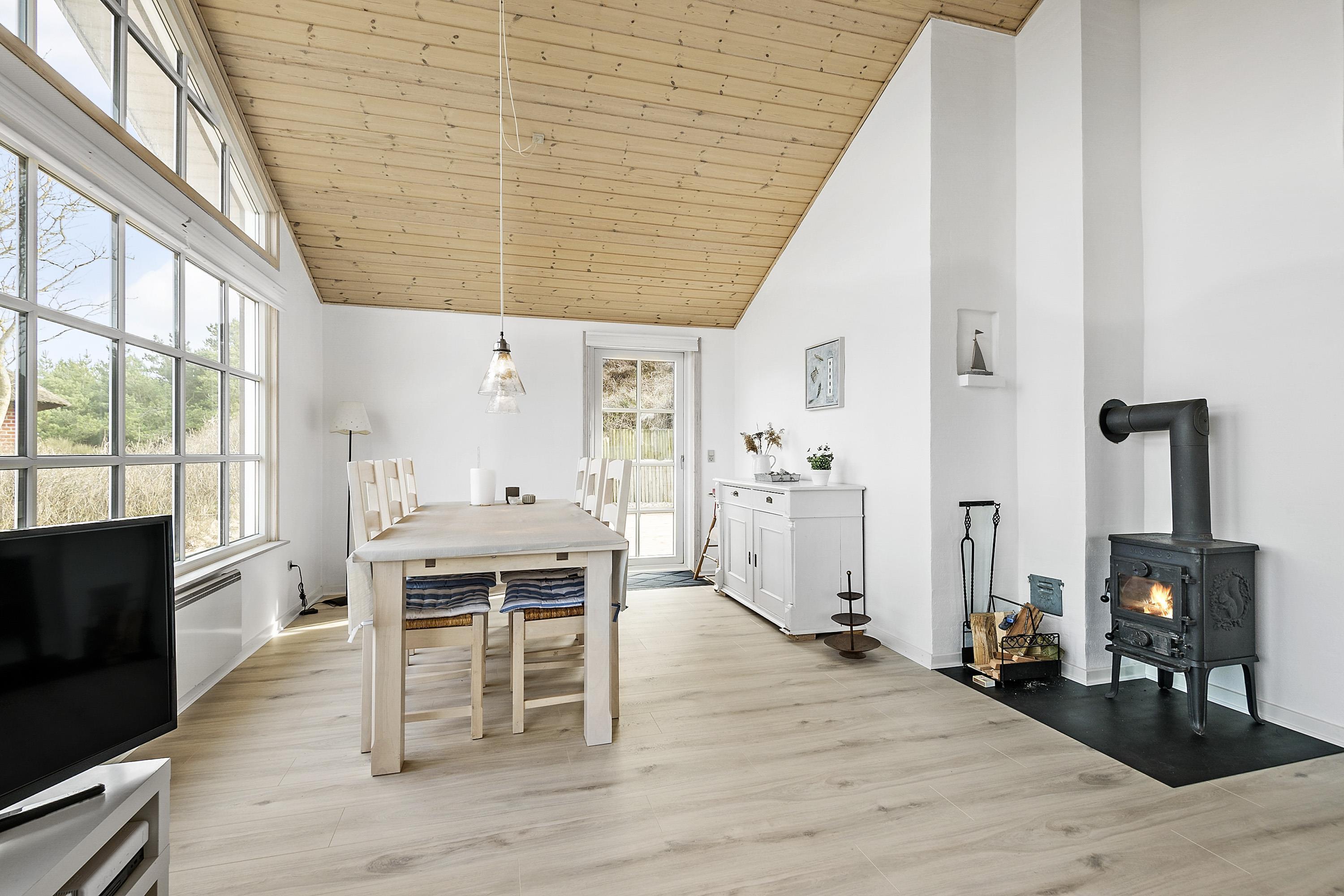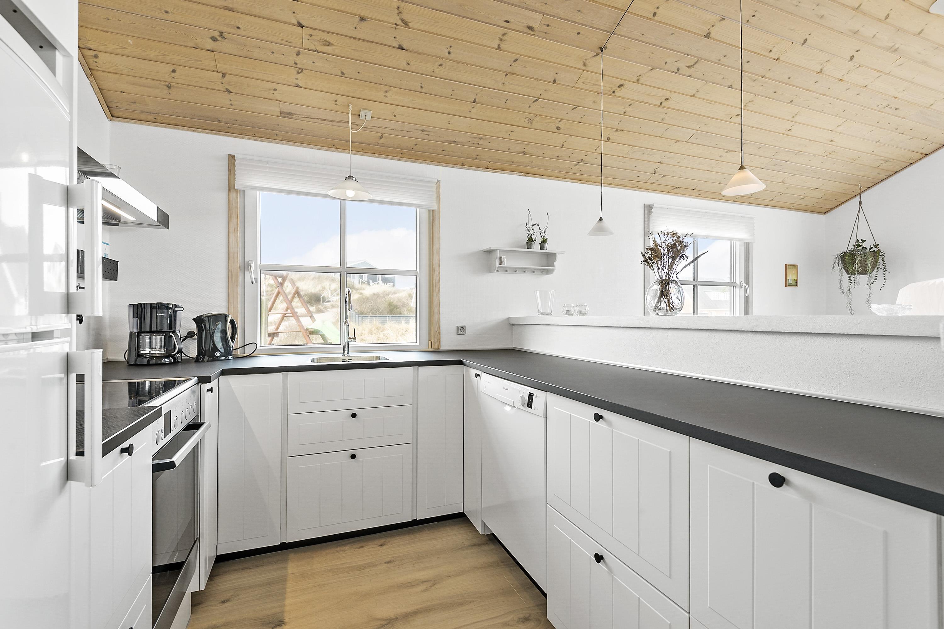 I sommerhuset er der dejligt højt til loftet og vinduesparti i kip der gør huset lyst og sommerligt. I 2021 har huset fået et moderne lyst køkken der er i åben forbindelse med stuen. Huset har 3 gode soverum (2 med dobbeltsenge og et med køjesenge (120 x 200 cn + 70 x 200 cm).