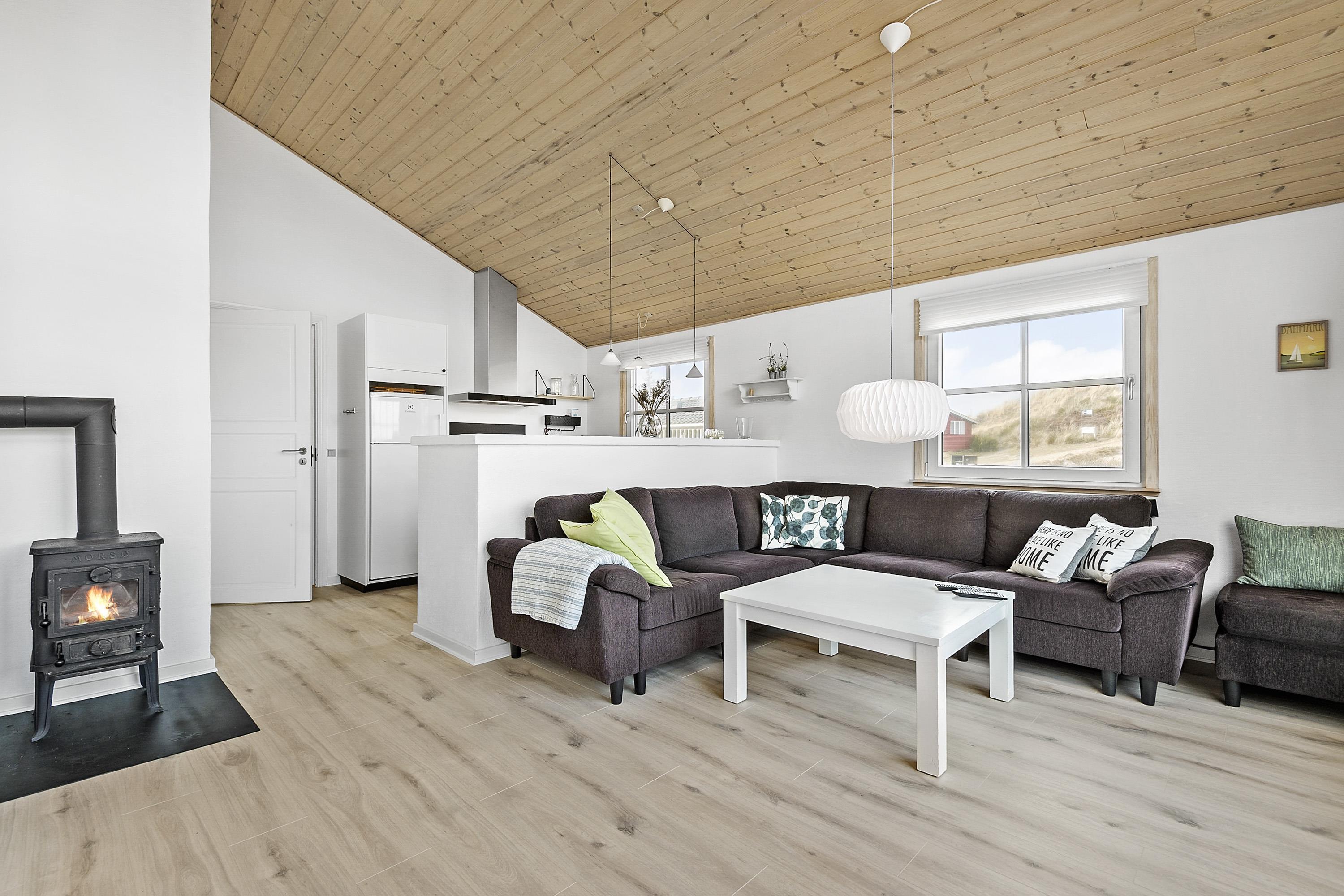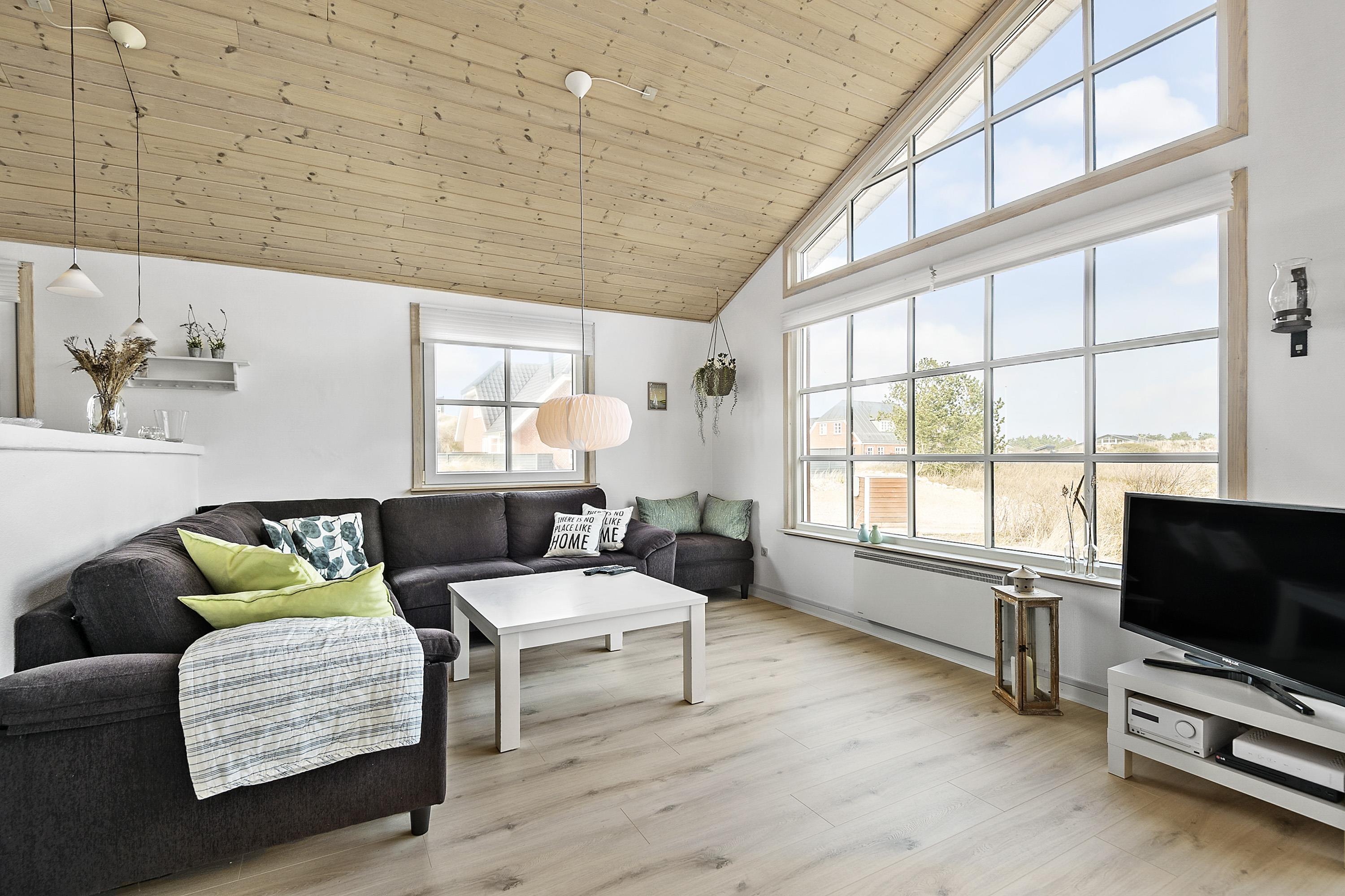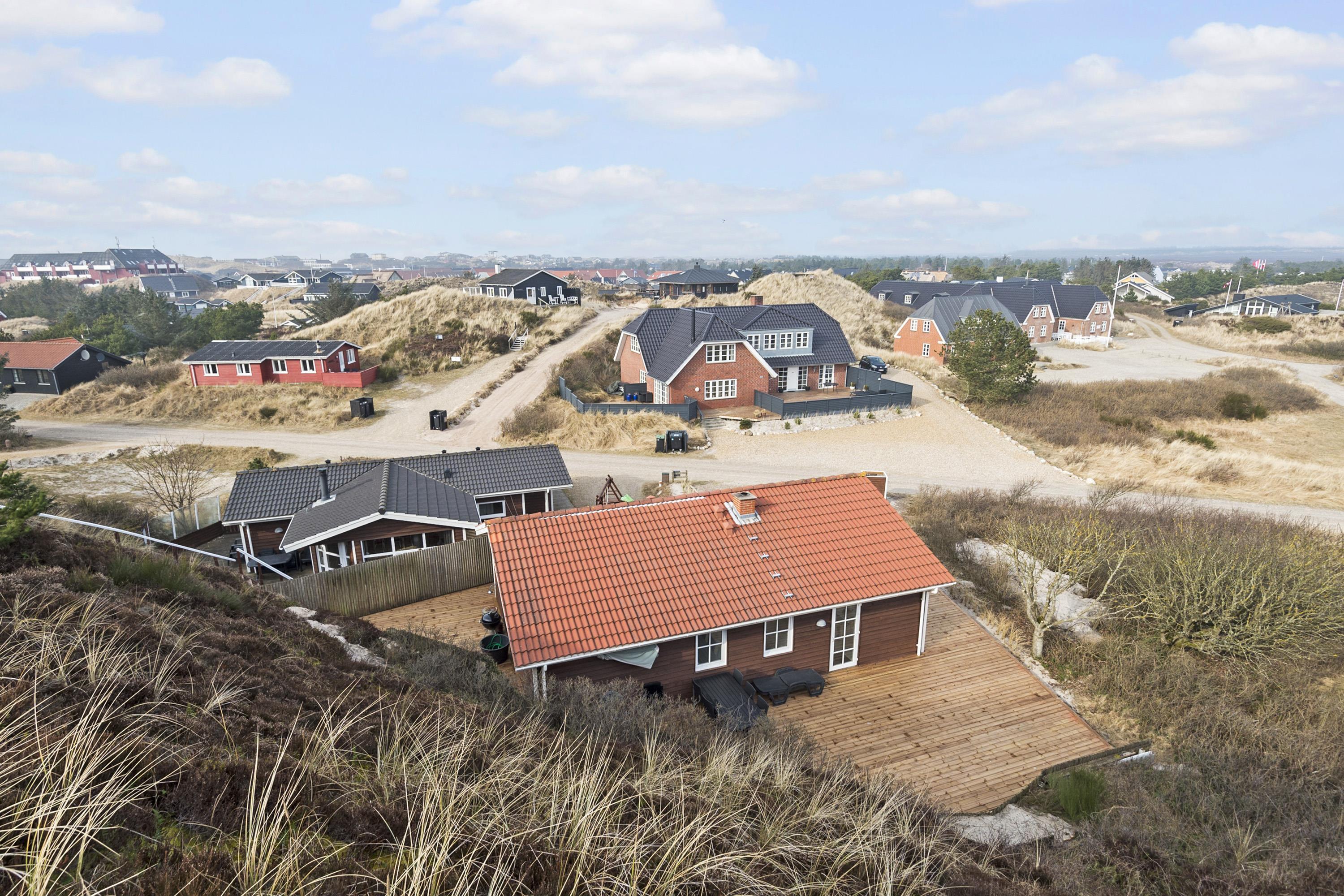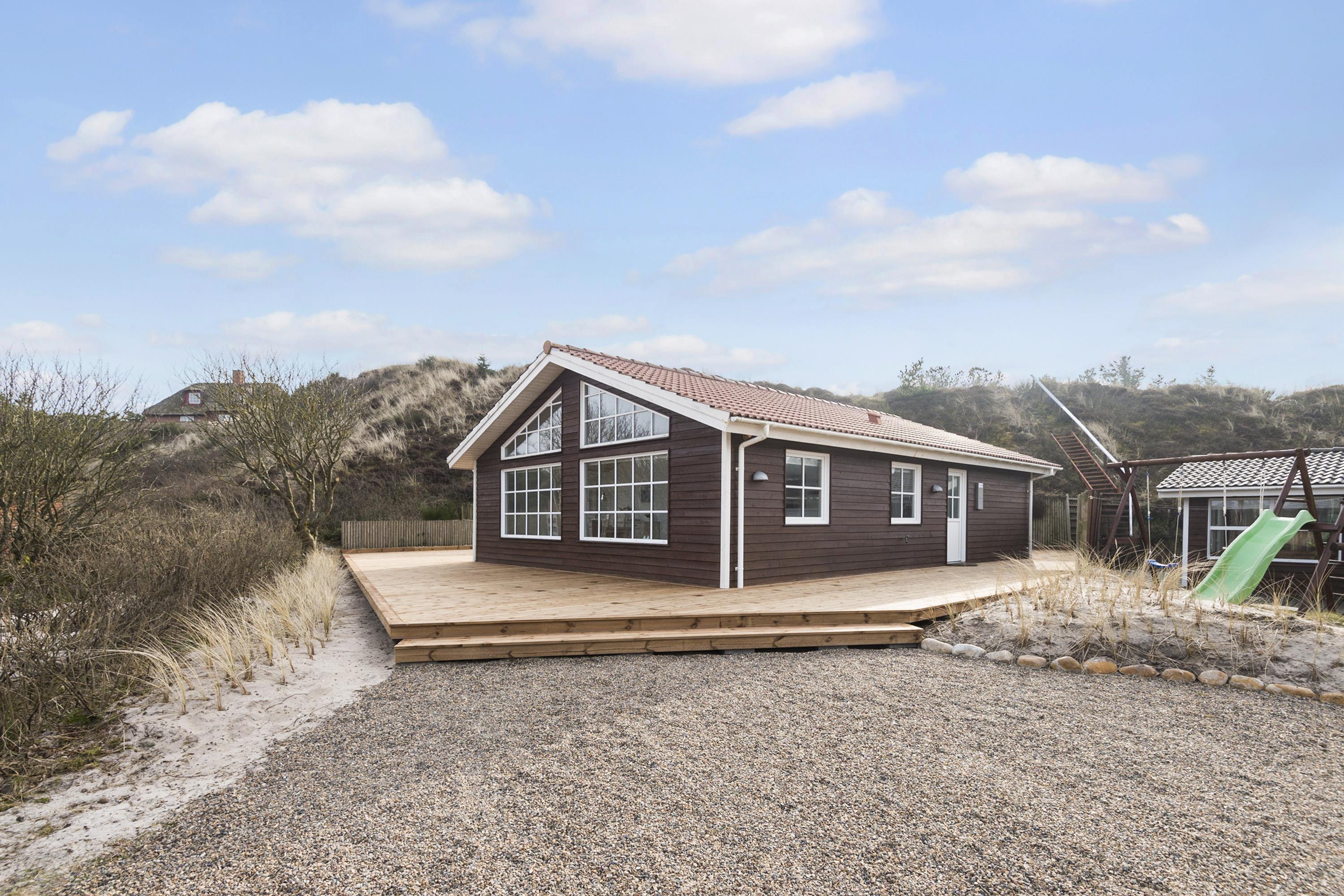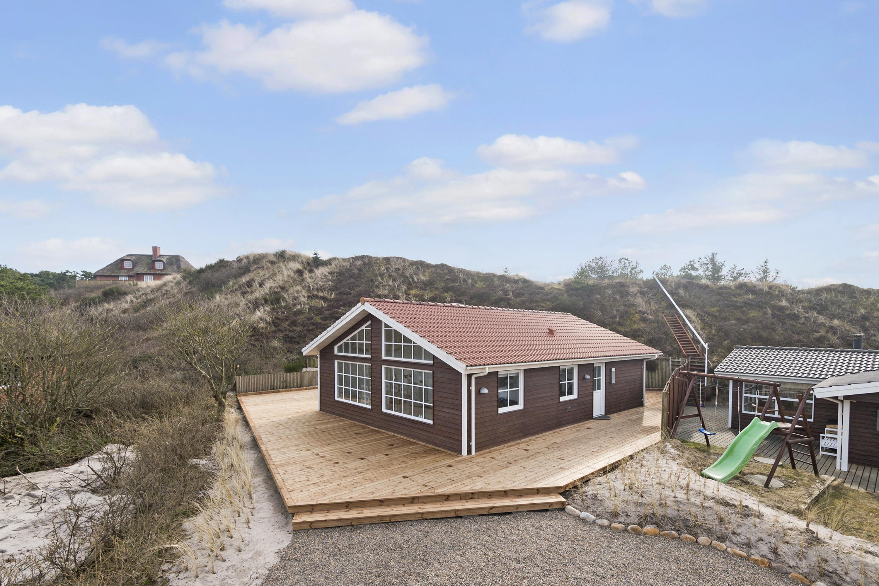 Dette dejlige sommerhus ligger for foden af et af Henne Strands højeste klitter. Fra toppen har man en udsigt i særklasse over området og til havet.