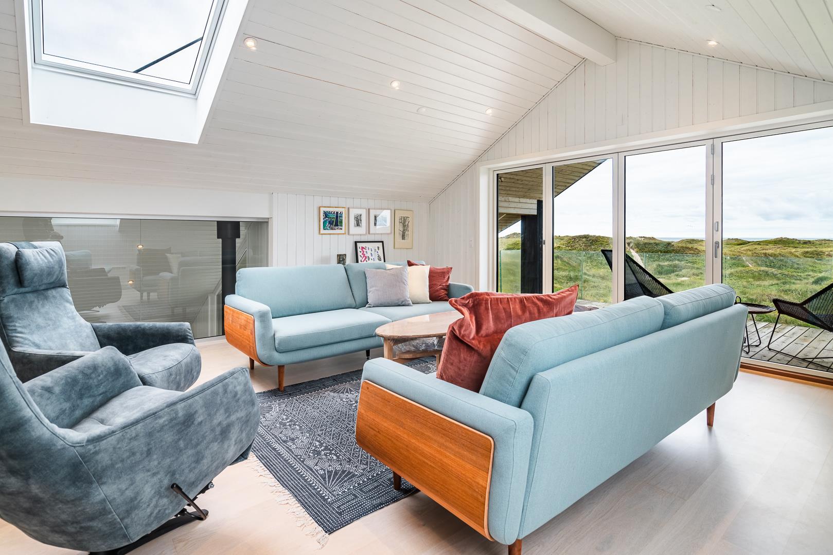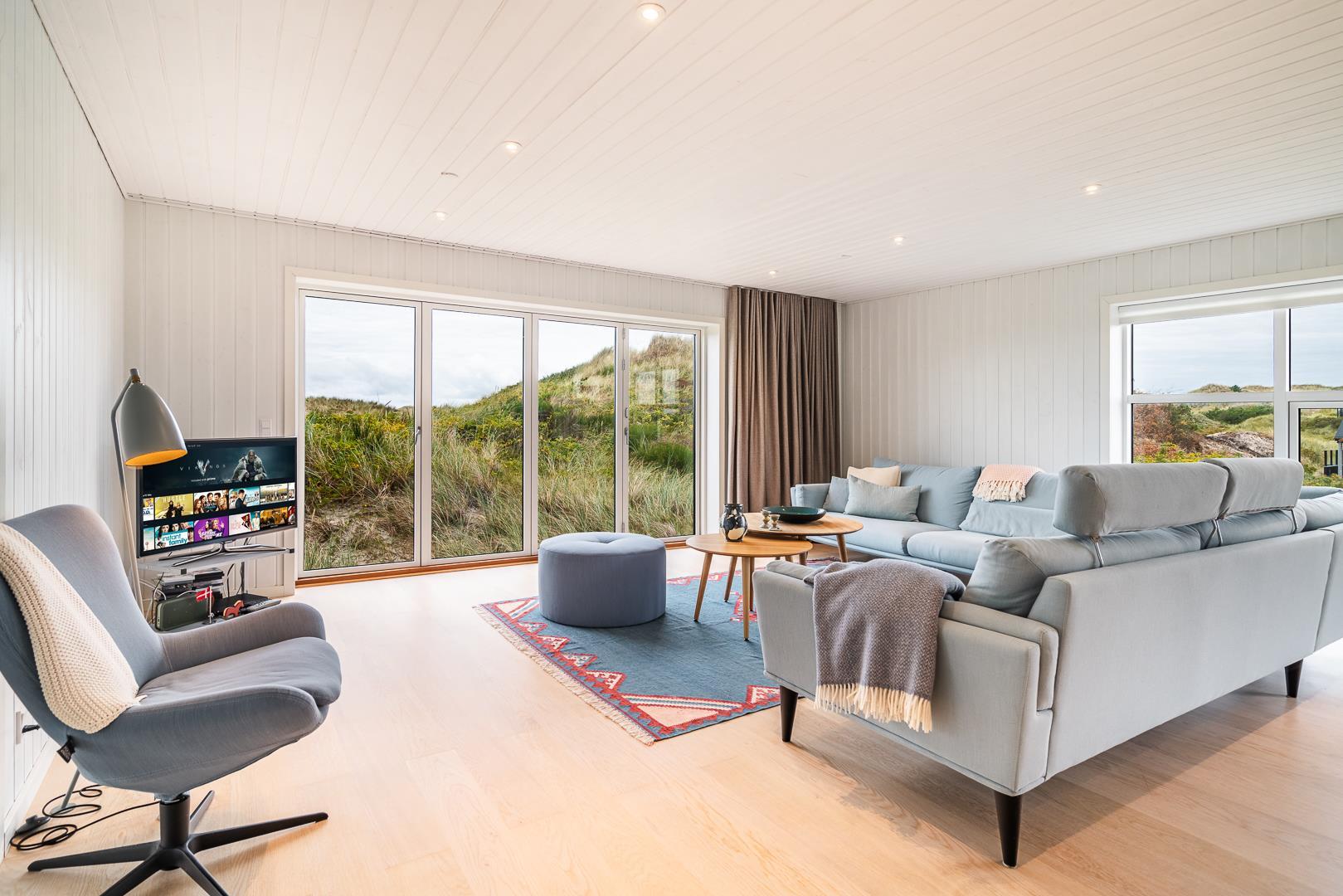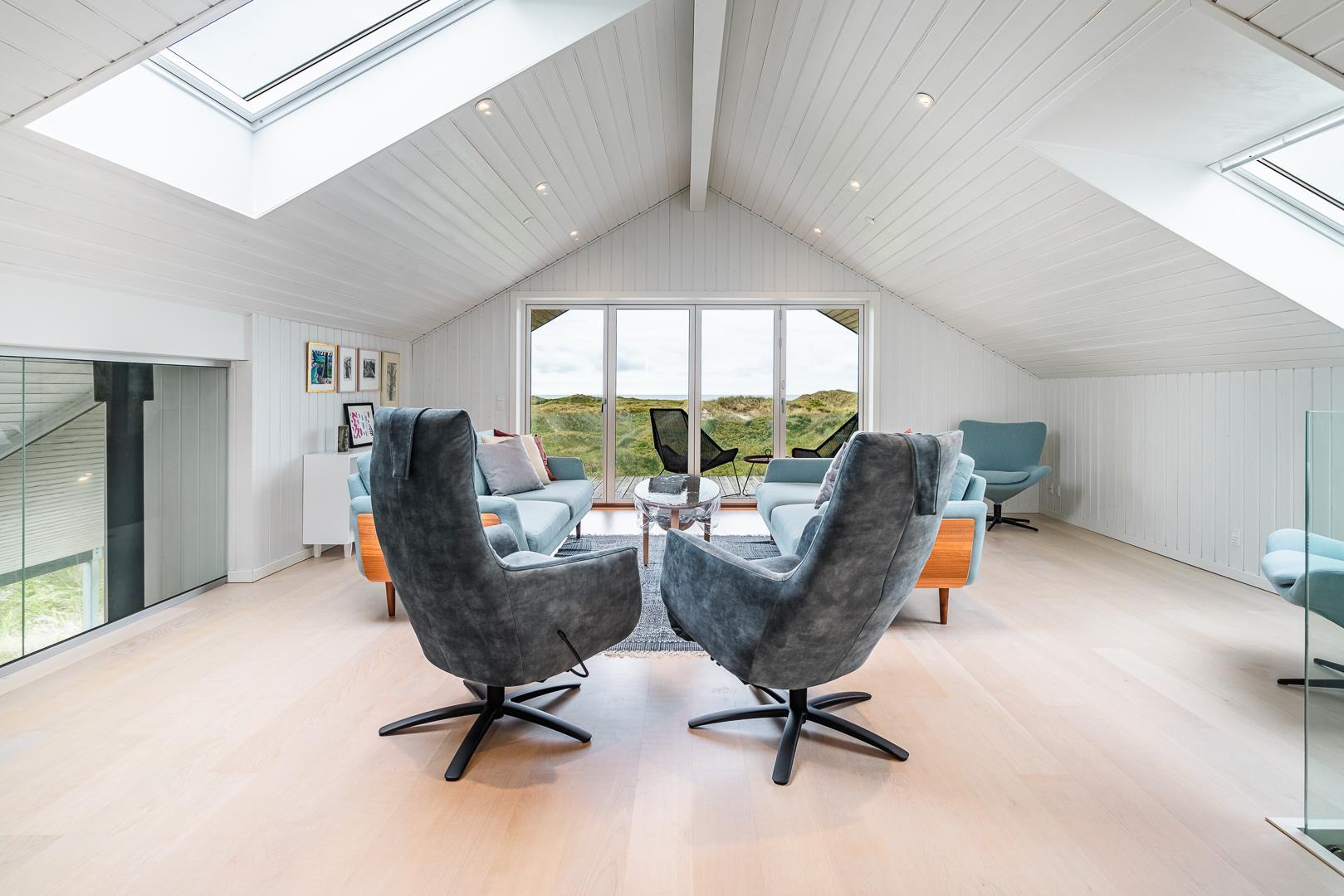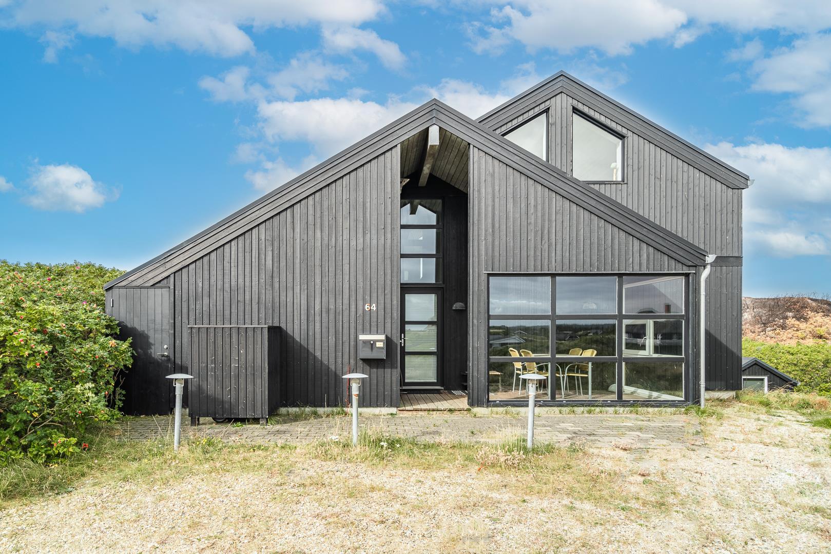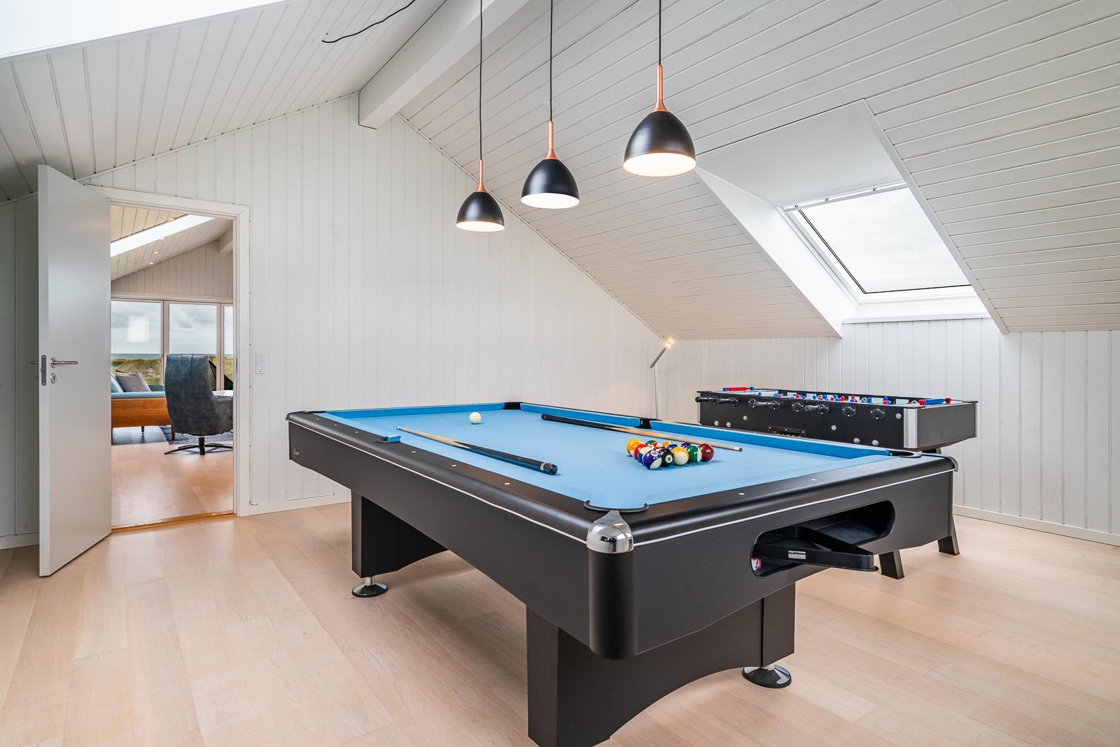 Pragtfuld og meget rummeligt aktivitets sommerhus beliggende for enden af grusbelagt vej og på toppen af større klitgrund med panoramaudsigt over Vesterhavet fra sommerhusets 1. sal. Stort, lyst og rummeligt køkken/alrum med brændeovn samt varmepumpe og med store panorama vinduer mod de store klitter. På sommerhusets 1. sal ligger aktivitetsrummet med billard samt bordfodbold og her er yderligere en stor og meget rummelig smagfuldt møbleret stue med store panoramavinduer mod vest. 2 badeværelser, hvor der i det store badeværelse er opsat spa og med adgang til sommerhusets sauna. 3 gode soverum. Sommerhuset er omgivet af flere terrasser, hvor naturen kan nydes i alle døgnets lyse timer. Opsat udebruser. Her er virkelig muligheden for at få en rigtig god og minderig ferie. Der er 5. min gang gang til stranden af fælles natursti og 10. min gang til Henne Strand ferieby med gode muligheder for indkøb samt flere restauranter.