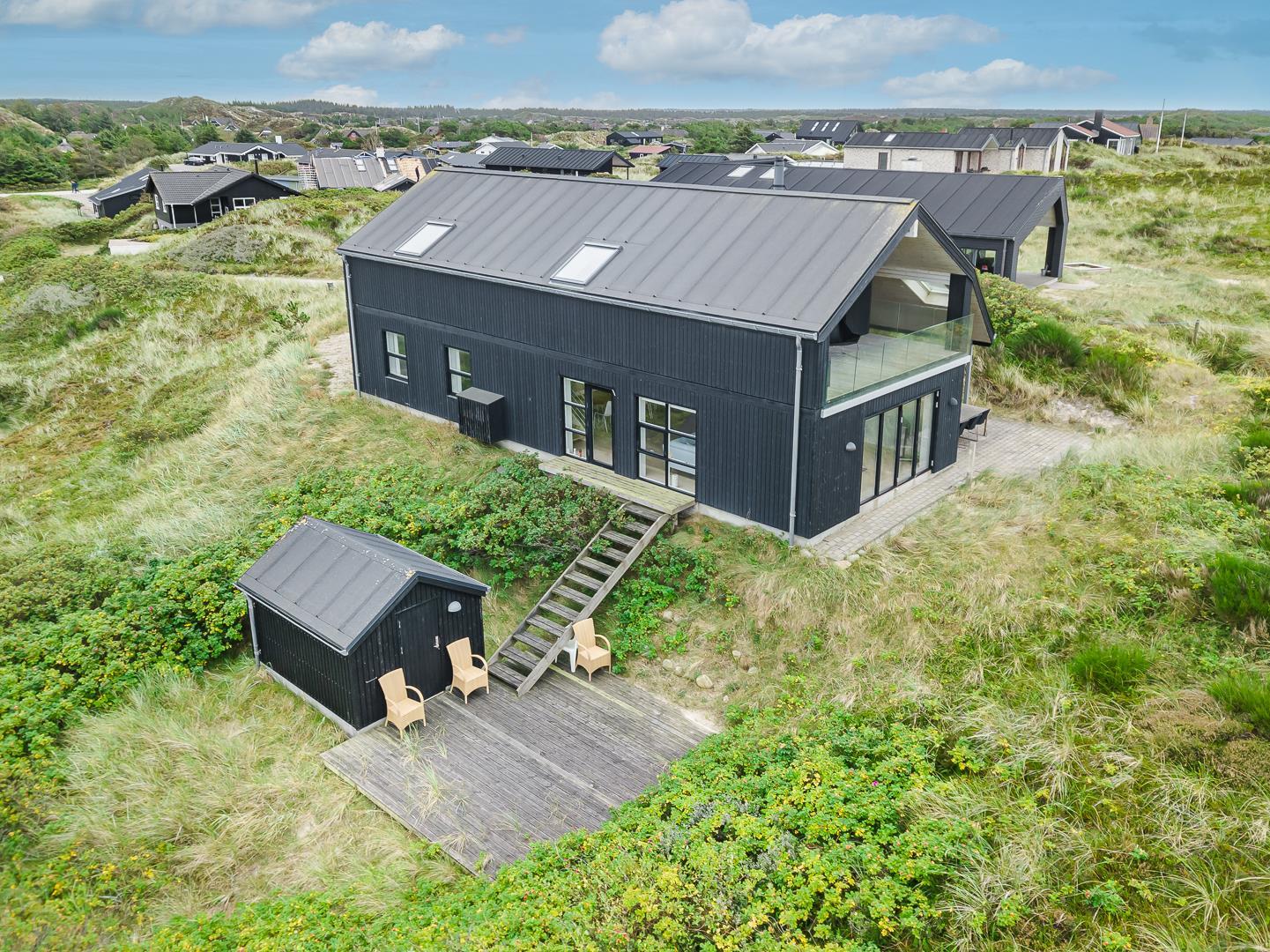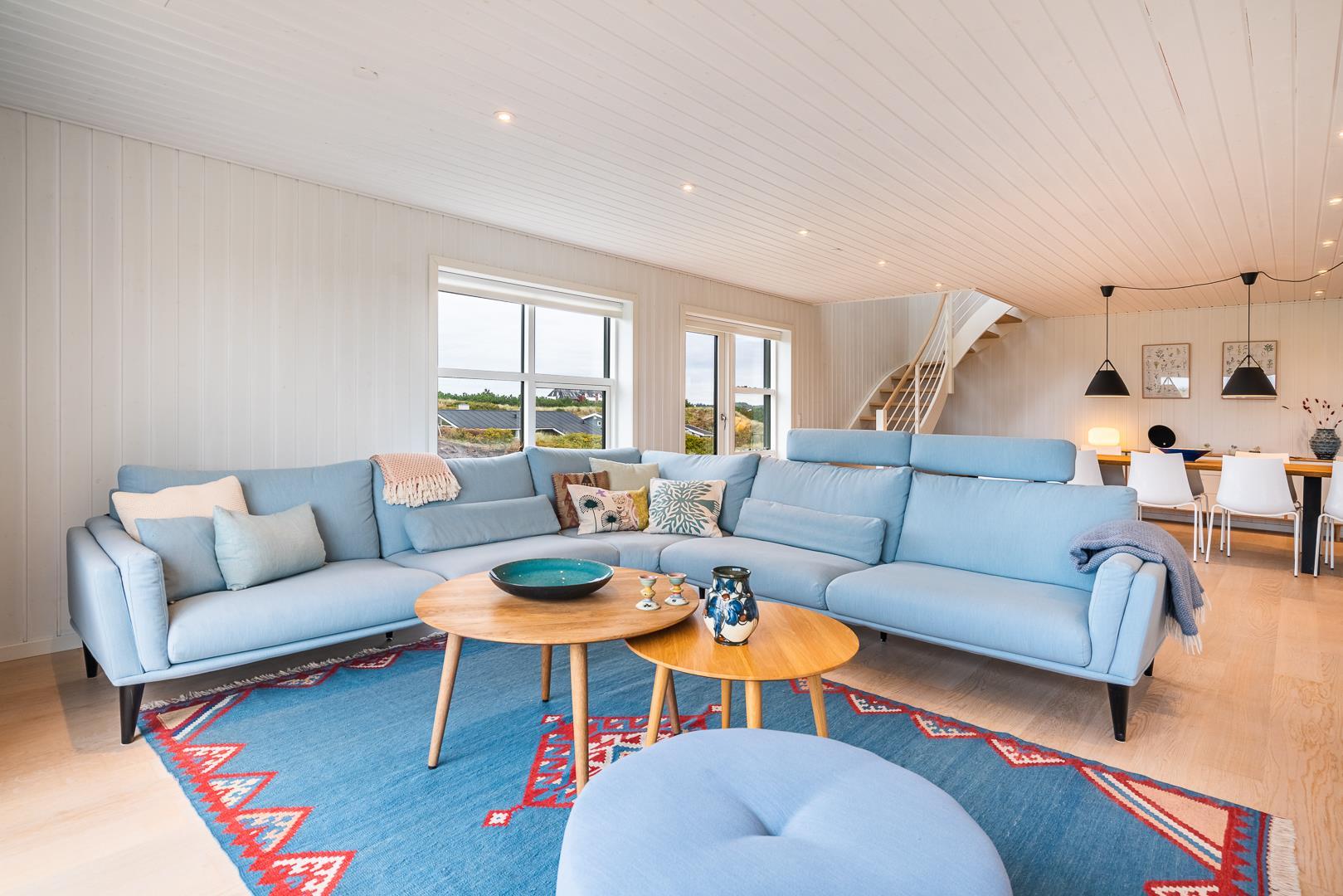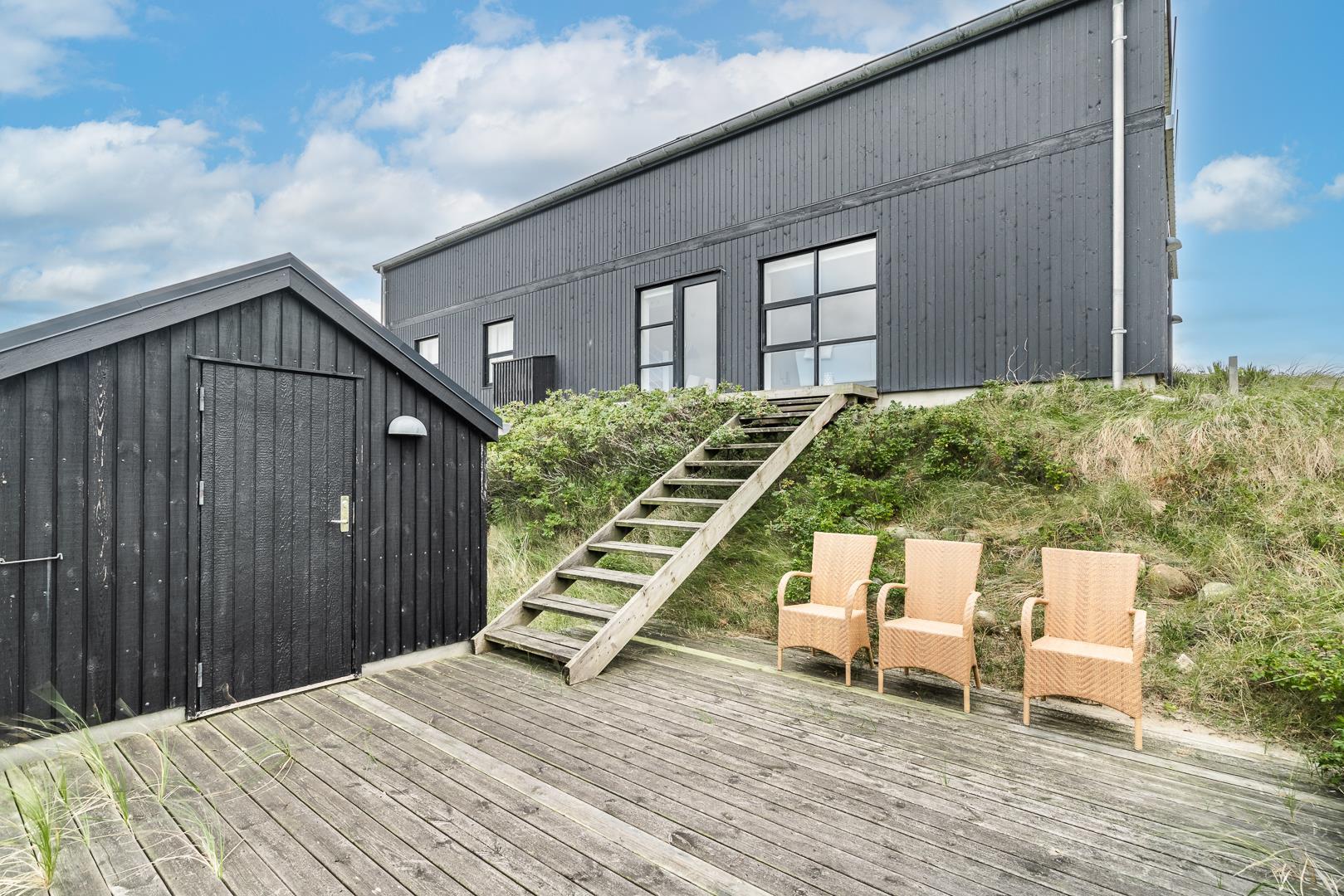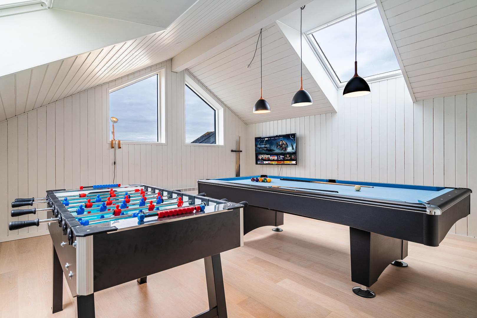 Pragtfuld og meget rummeligt aktivitets sommerhus beliggende for enden af grusbelagt vej og på toppen af større klitgrund med panoramaudsigt over Vesterhavet fra sommerhusets 1. sal. Stort, lyst og rummeligt køkken/alrum med brændeovn samt varmepumpe og med store panorama vinduer mod de store klitter. På sommerhusets 1. sal ligger aktivitetsrummet med billard samt bordfodbold og her er yderligere en stor og meget rummelig smagfuldt møbleret stue med store panoramavinduer mod vest. 2 badeværelser, hvor der i det store badeværelse er opsat spa og med adgang til sommerhusets sauna. 3 gode soverum. Sommerhuset er omgivet af flere terrasser, hvor naturen kan nydes i alle døgnets lyse timer. Opsat udebruser. Her er virkelig muligheden for at få en rigtig god og minderig ferie. Der er 5. min gang gang til stranden af fælles natursti og 10. min gang til Henne Strand ferieby med gode muligheder for indkøb samt flere restauranter.