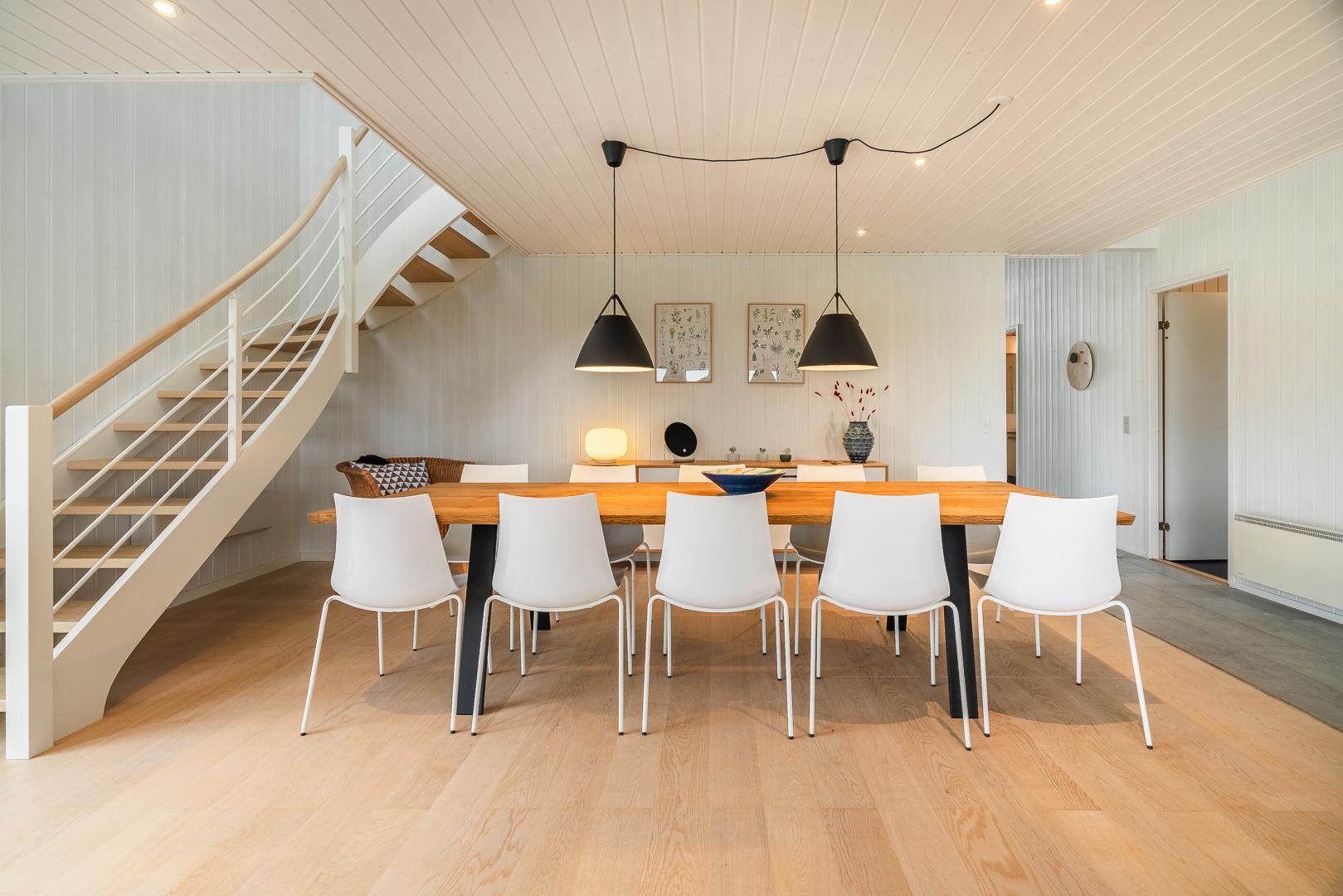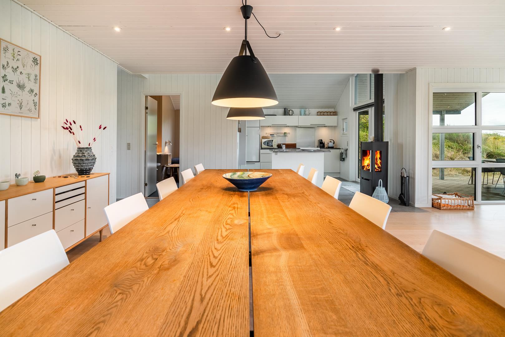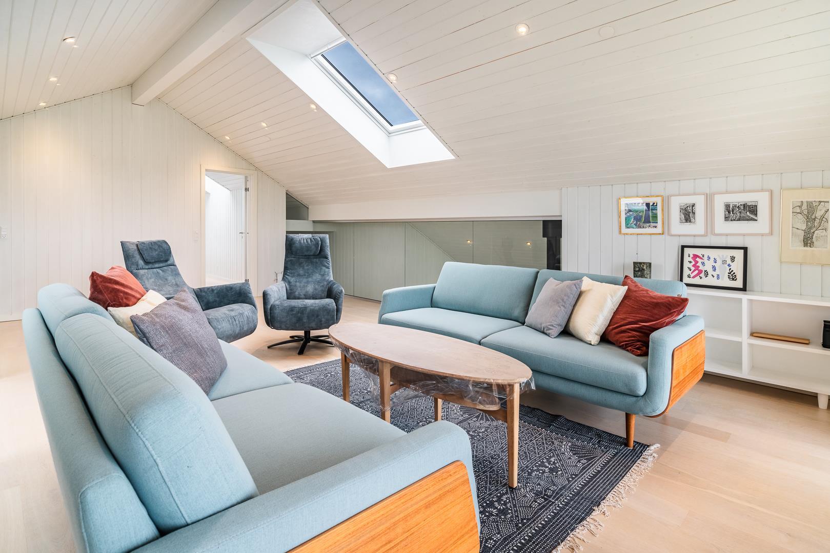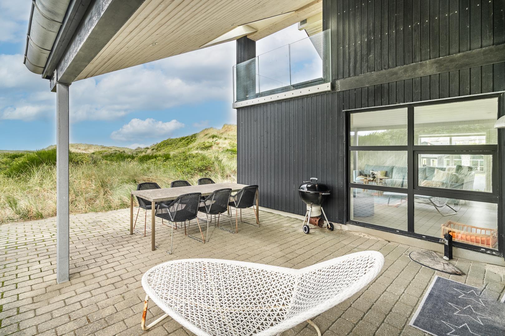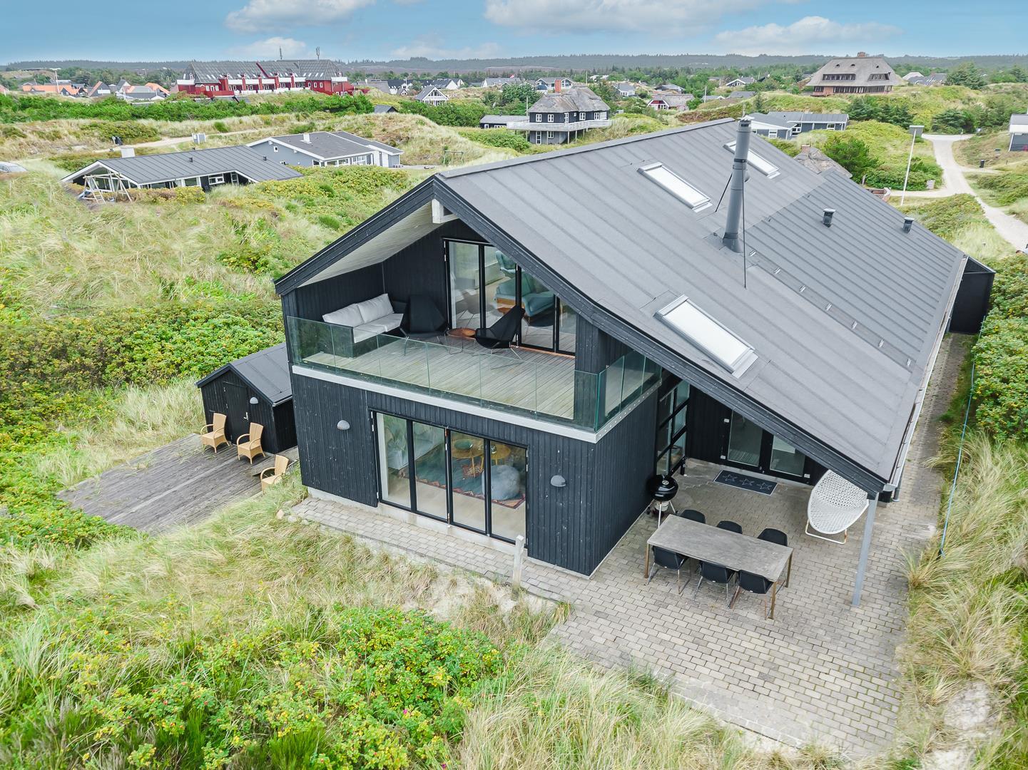 Pragtfuld og meget rummeligt aktivitets sommerhus beliggende for enden af grusbelagt vej og på toppen af større klitgrund med panoramaudsigt over Vesterhavet fra sommerhusets 1. sal. Stort, lyst og rummeligt køkken/alrum med brændeovn samt varmepumpe og med store panorama vinduer mod de store klitter. På sommerhusets 1. sal ligger aktivitetsrummet med billard samt bordfodbold og her er yderligere en stor og meget rummelig smagfuldt møbleret stue med store panoramavinduer mod vest. 2 badeværelser, hvor der i det store badeværelse er opsat spa og med adgang til sommerhusets sauna. 3 gode soverum. Sommerhuset er omgivet af flere terrasser, hvor naturen kan nydes i alle døgnets lyse timer. Opsat udebruser. Her er virkelig muligheden for at få en rigtig god og minderig ferie. Der er 5. min gang gang til stranden af fælles natursti og 10. min gang til Henne Strand ferieby med gode muligheder for indkøb samt flere restauranter.