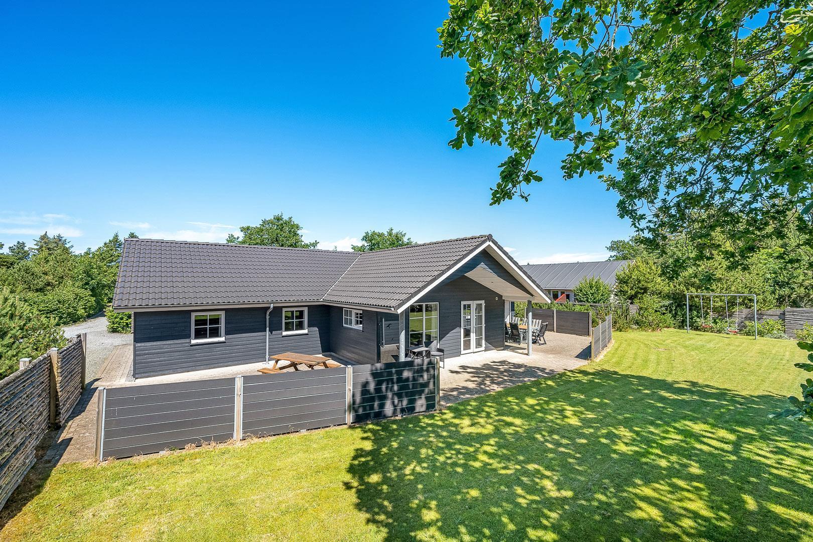 På de 2 store terrasser findes der havemøbler og grill. Fra den store sydvendte terrasse kan man sidde ugenert og nyde solen. I haven er der også et gyngestativ.