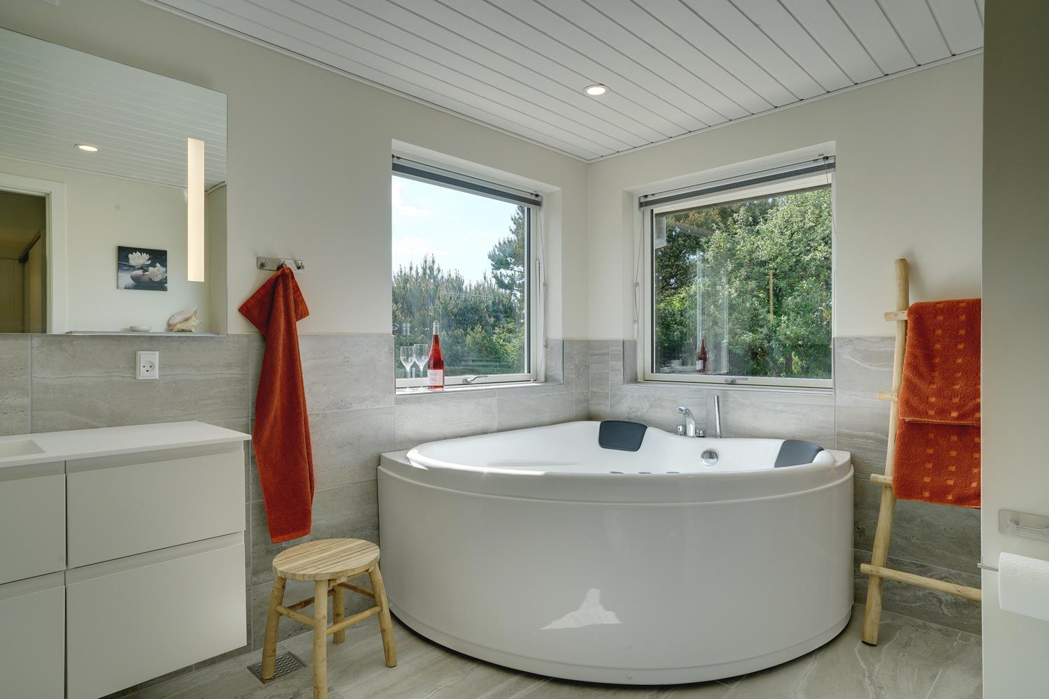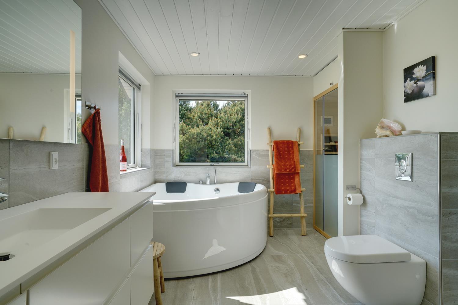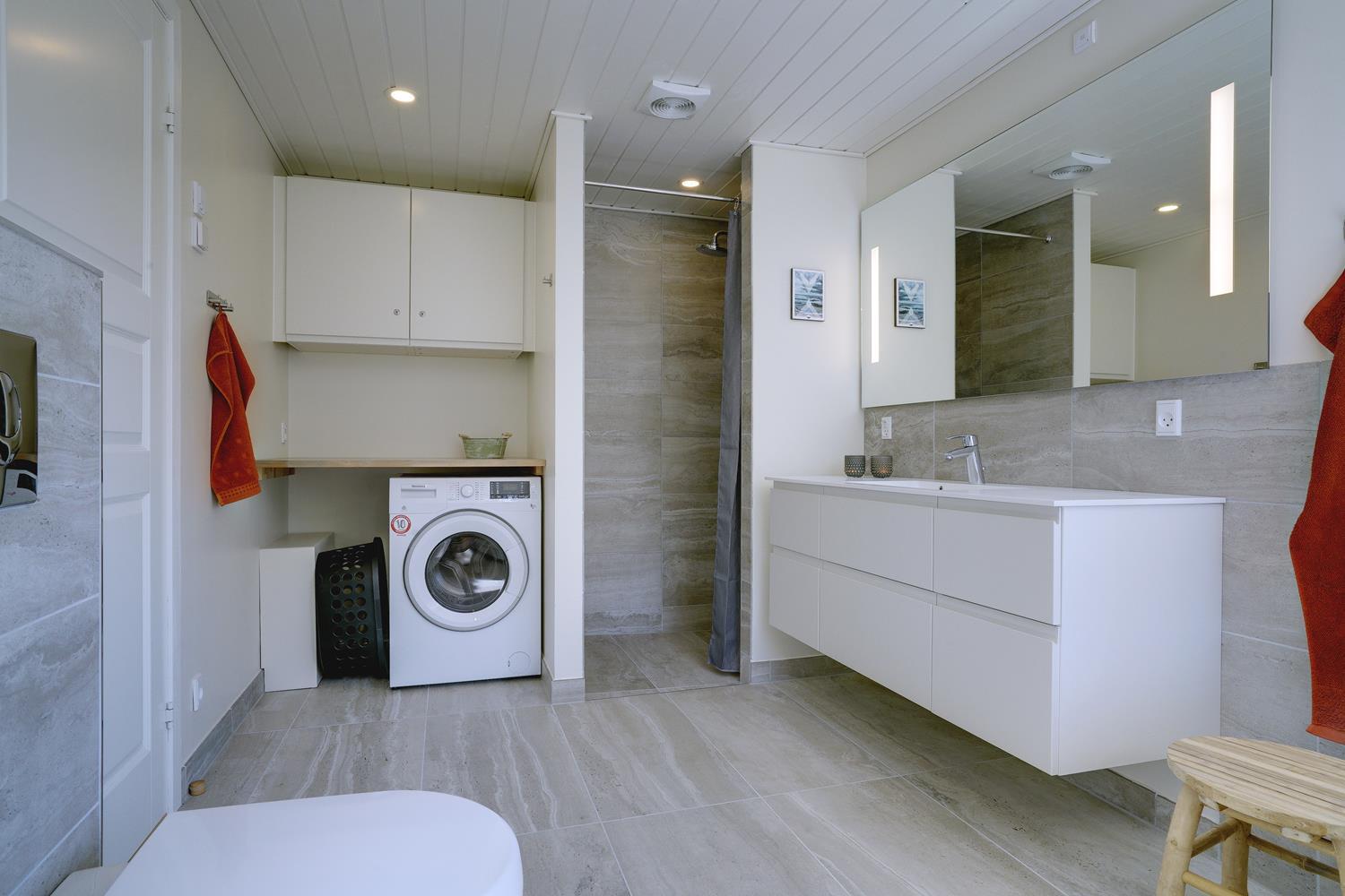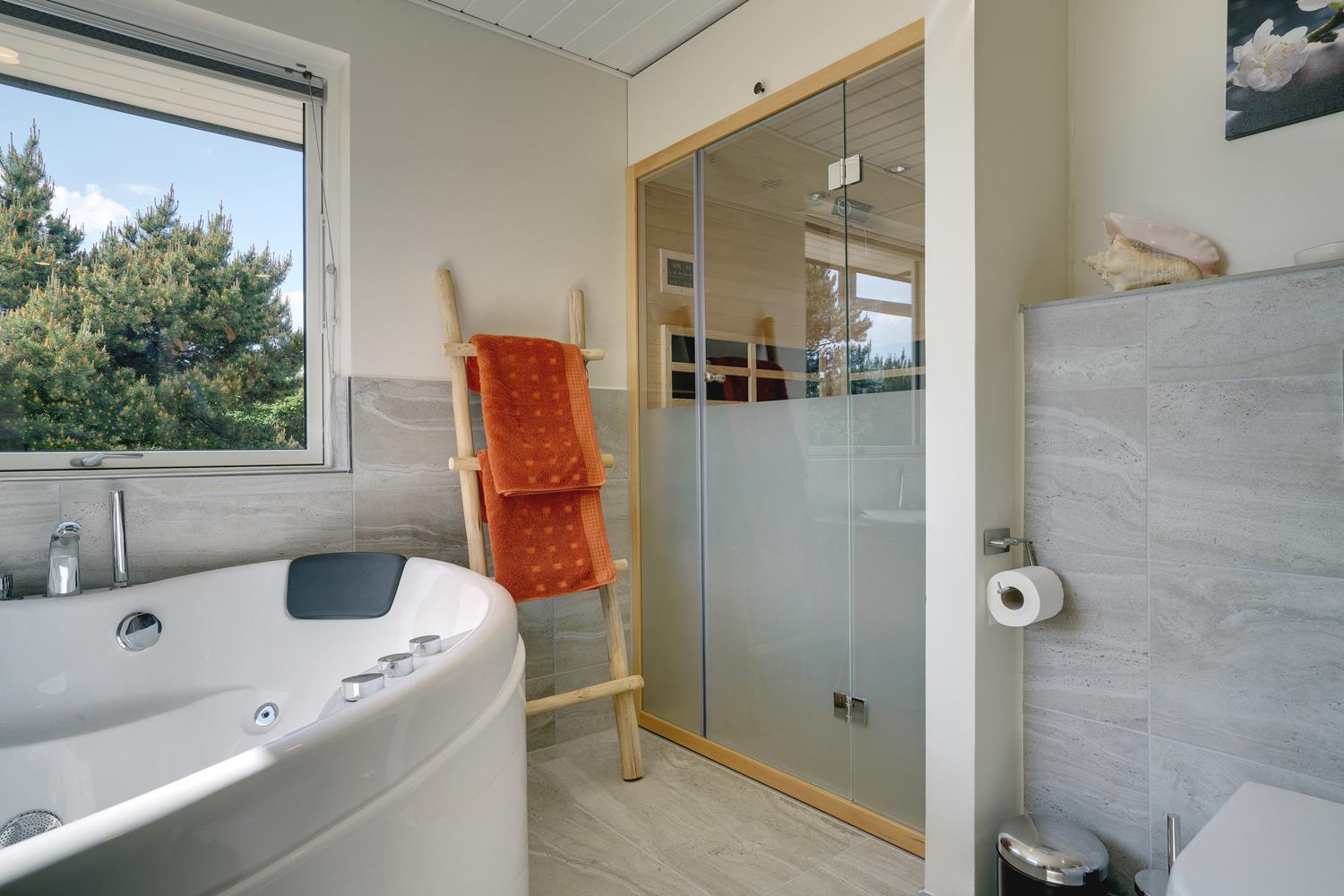 Der er i alt 3 gode soveværelser med plads til 6 personer samt 2 moderne badeværelser med gulvvarme, som giver ekstra komfort. Efter en aktiv dag kan du slappe af i saunaen eller spaen. Derudover er der vaskemaskine, tørretumbler og værdiboks.