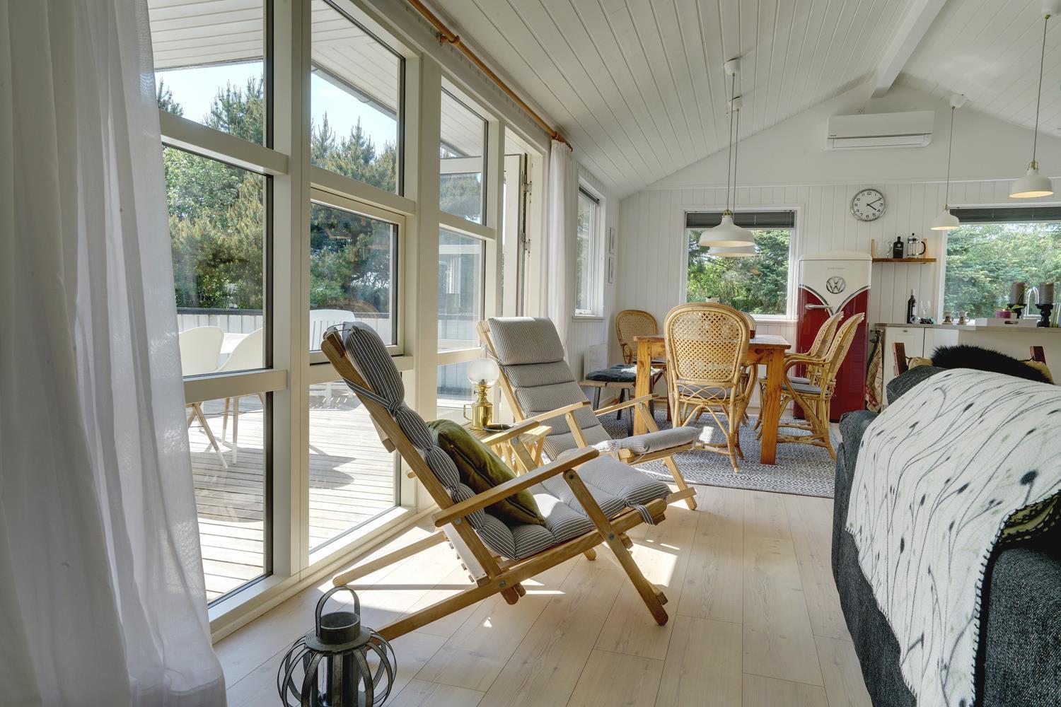 Udendørsområdet indbyder til afslapning i rolige omgivelser med flot udsigt over klitlandskabet. På den overdækkede terrasse kan du nyde den friske havluft i al slags vejr.