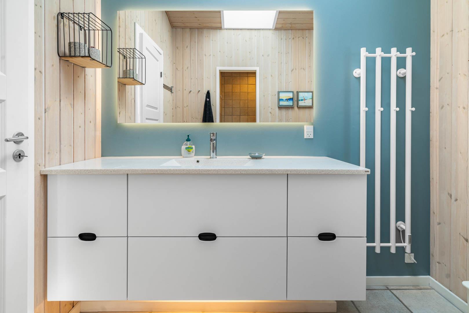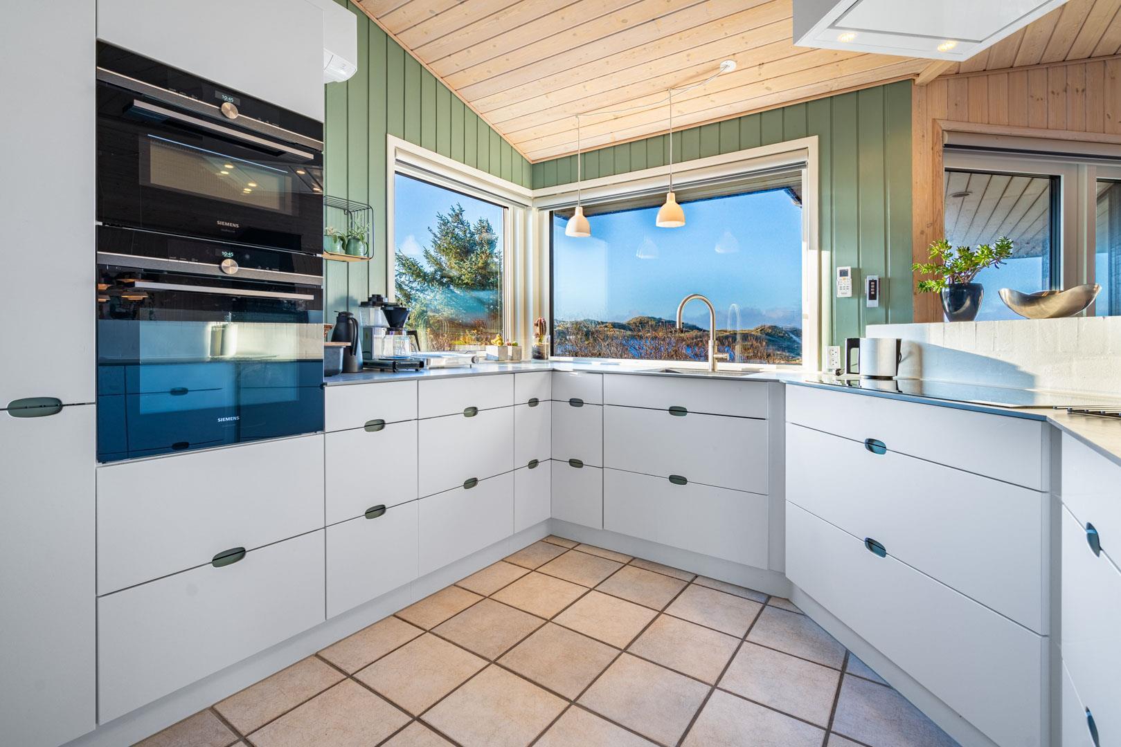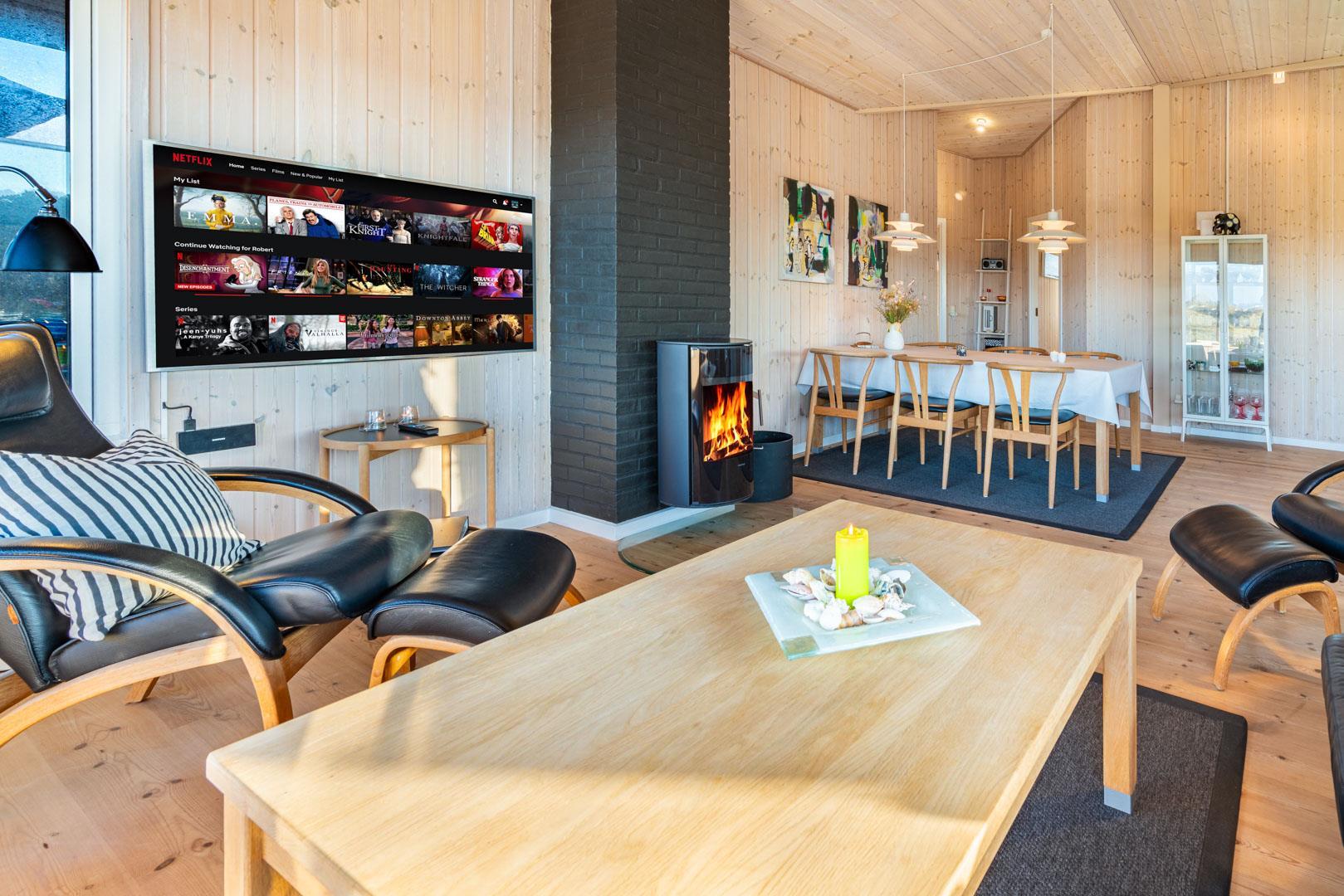 Det betagende klitlandskab spiller hovedrollen i fortællingen om ferieboligen på Hjelmevej 96. Her kan du og familien nemlig nyde udsigten til det bølgende, bløde og samtidig dramatiske terræn ved Vesterhavet, mens I slapper af og holder ferie i og ved et hjemligt, højloftet og omfavnende hus i Henne Strand Syd.
