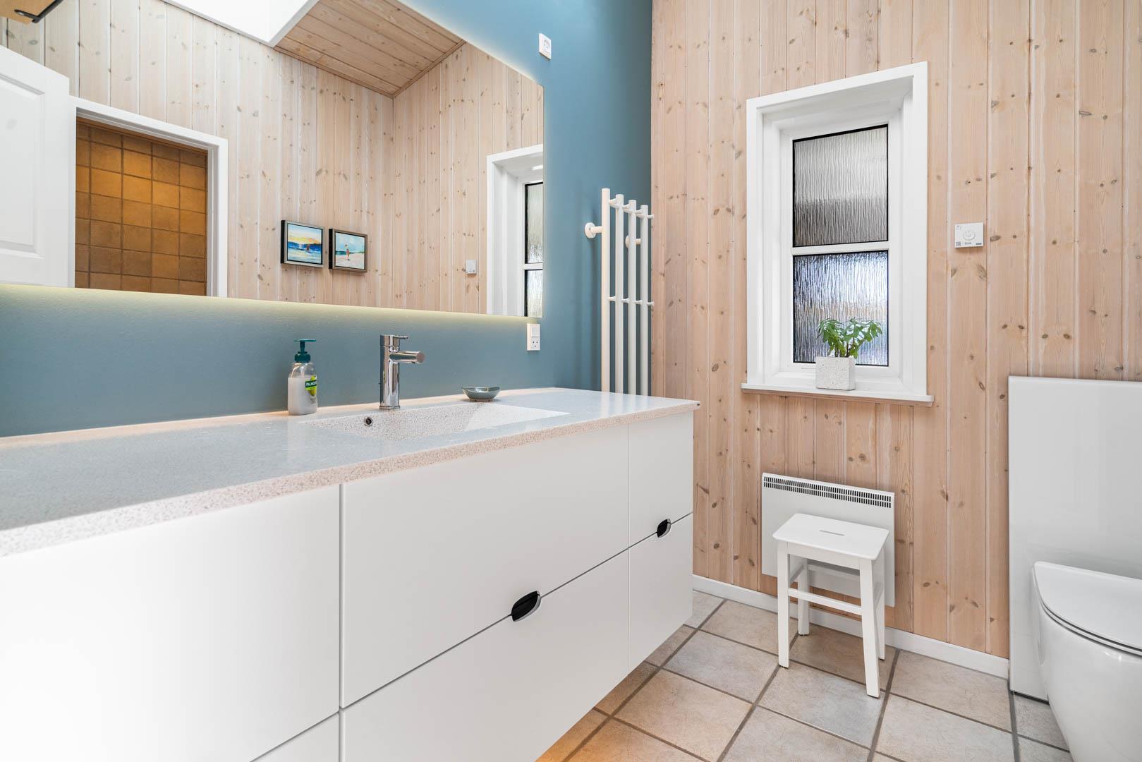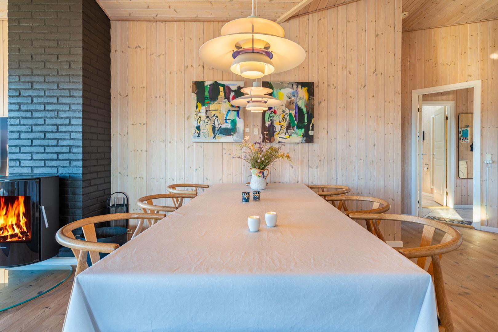 Huset ligger blot 300 meter fra stranden, hvor det blå flag vajer i vinden, som tegn på, at badevandskvaliteten er helt i top, og når det er tid til en isvaffel, kan I slentre den lille kilometer op ad stranden til I når Strandvejen.