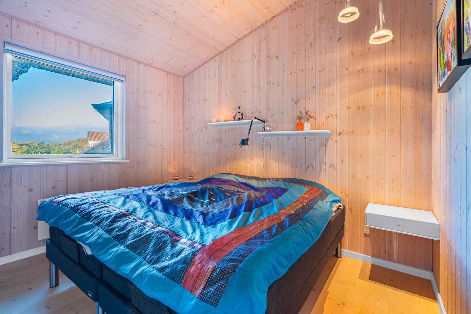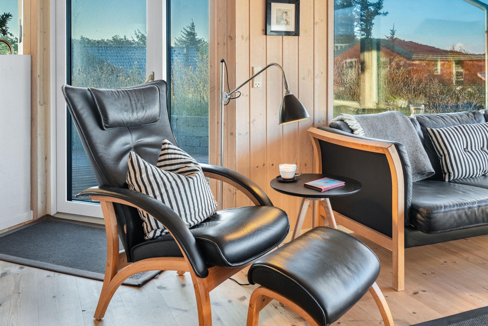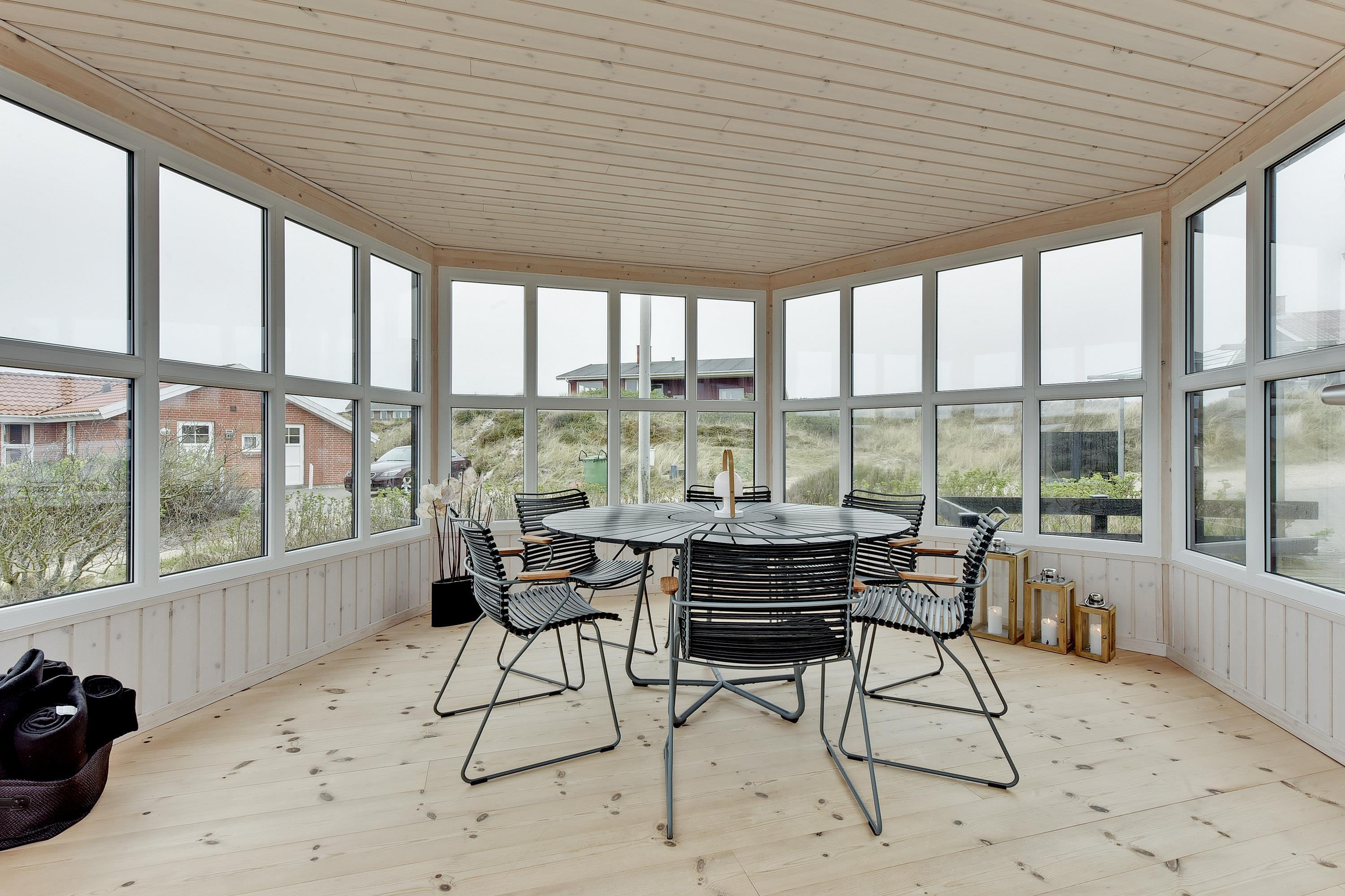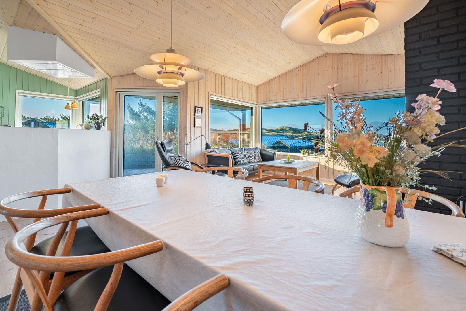 Feriehuset ligger helt fredeligt og velplaceret på en pragtfuld klitgrund, og det er opført med tanke på at optimere både lysindfald og udsigt. I kan derfor glæde jer til at nyde udsigten, mens I griller røde bøffer på terrassen, se frem til at følge med i vindens lette rusken i marehalmen, mens I drikker kaffe i pavillonen og ikke mindst håbe på regnvejr, så I kan lytte til dråberne, der trommer på ruderne i stuens kæmpestore vinduesparti.