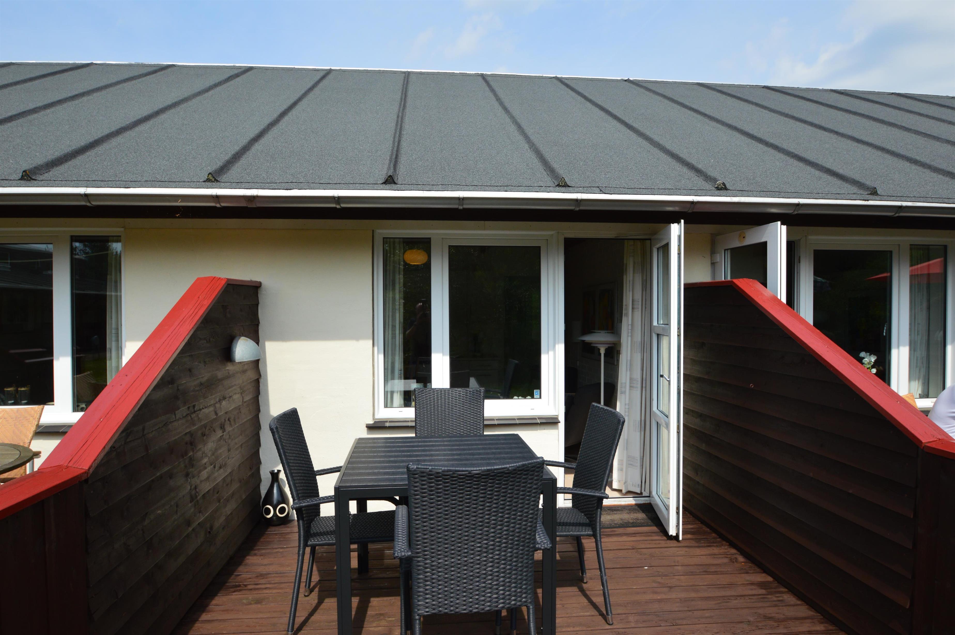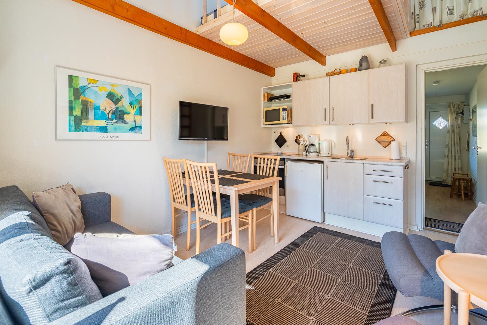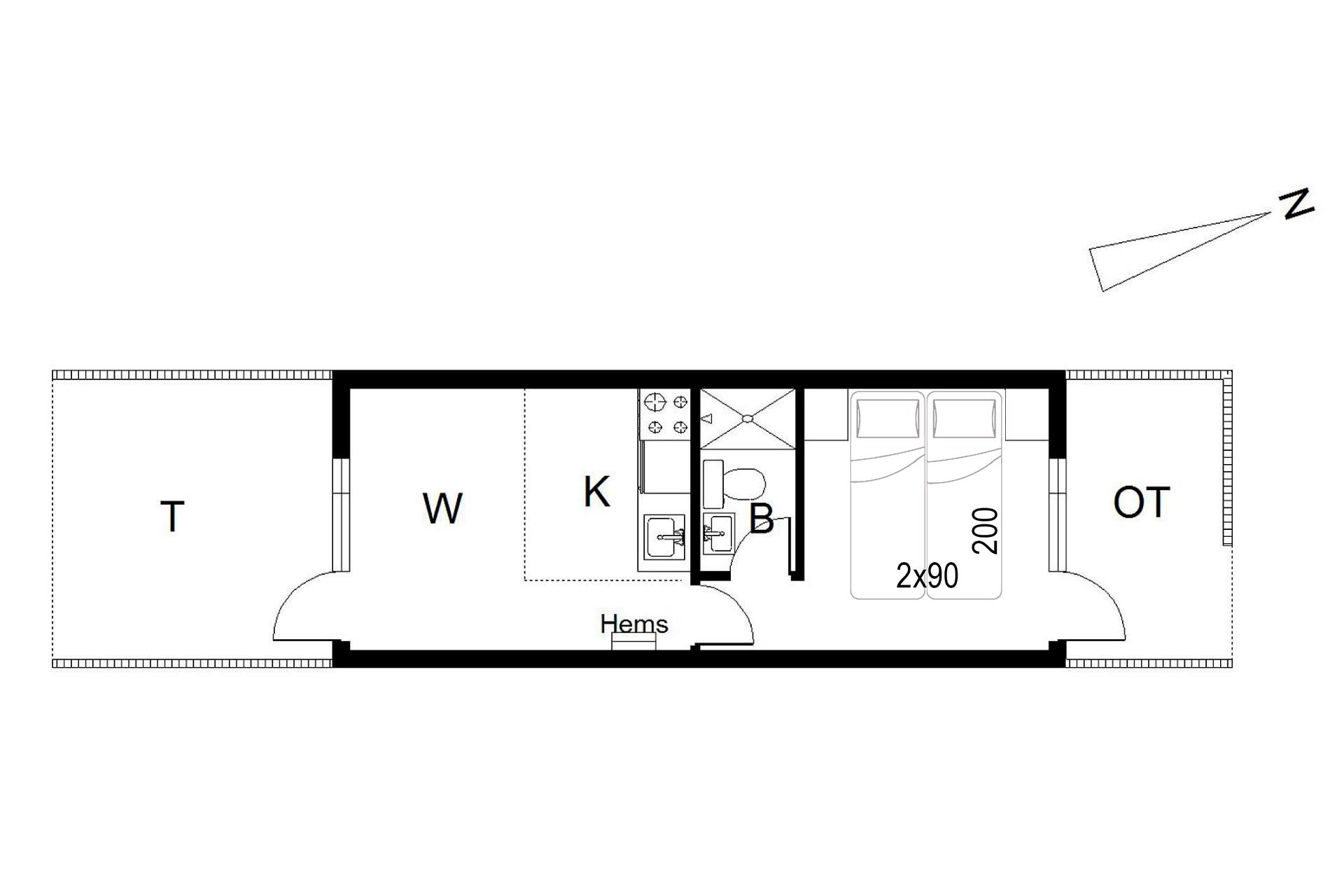 Dejligt og lyst indrettet ferielejlighed. Til lejligheden hører såvel sydvendt terrasse samt en åben terrasse med havemøbler. Køkkenet ligger i forbindelse med spisestuen. Lejligheden råder over et soverum med dobbeltseng. Der er en hems med 2 sovepladser. Ferielejligheden ligger i et naturområde med gode muligheder for vandreture. Lejligheden ligger endvidere tæt på golfbane, Vesterhavet og Henne Strand med mange indkøbsmuligheder. Der er gratis internet. I perioden fra påske til efterårsferien er der 200 m til campingpladsen, hvor der er lille købmandsbutik.