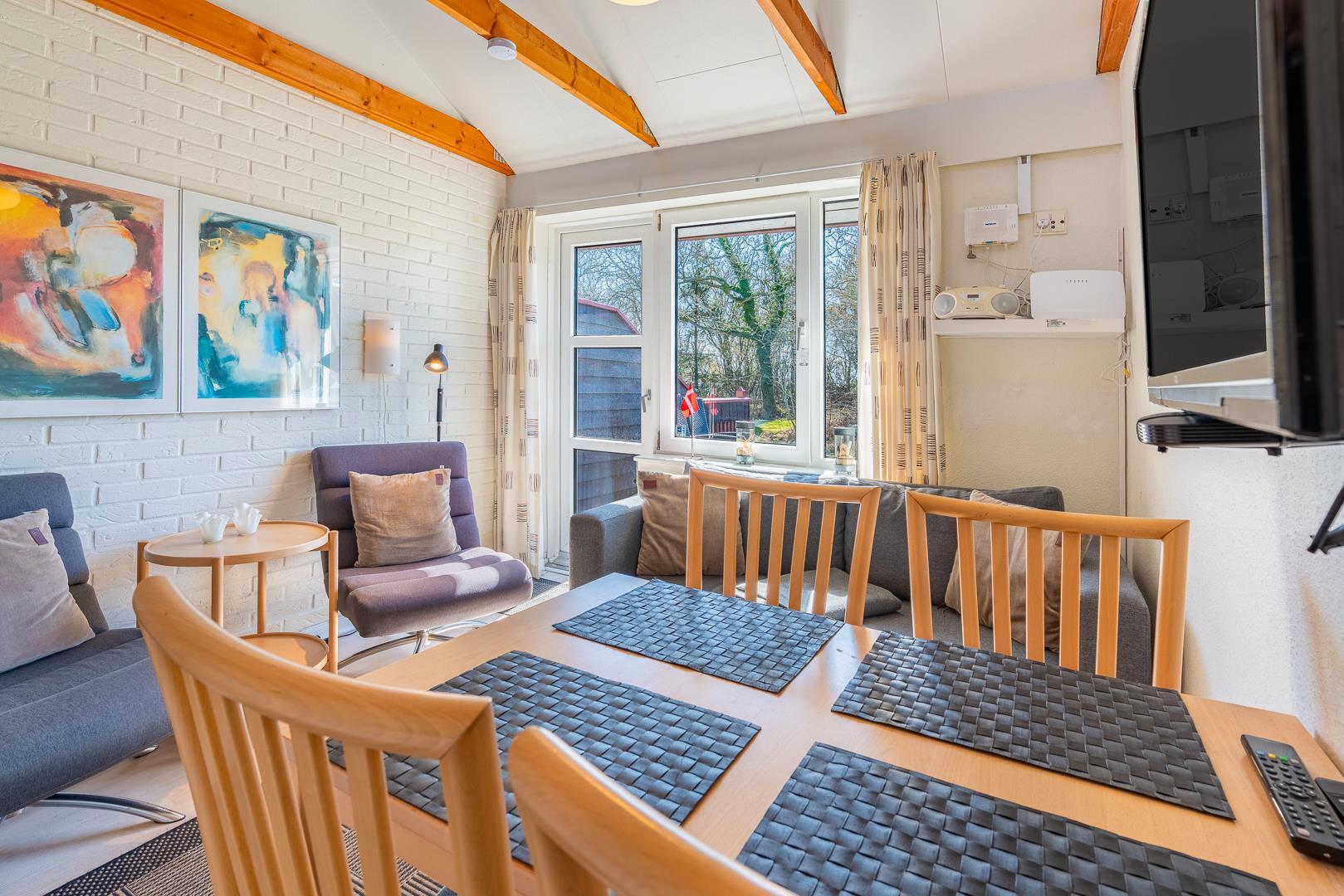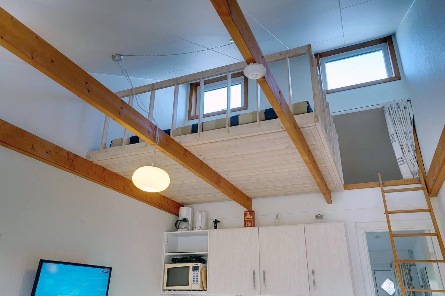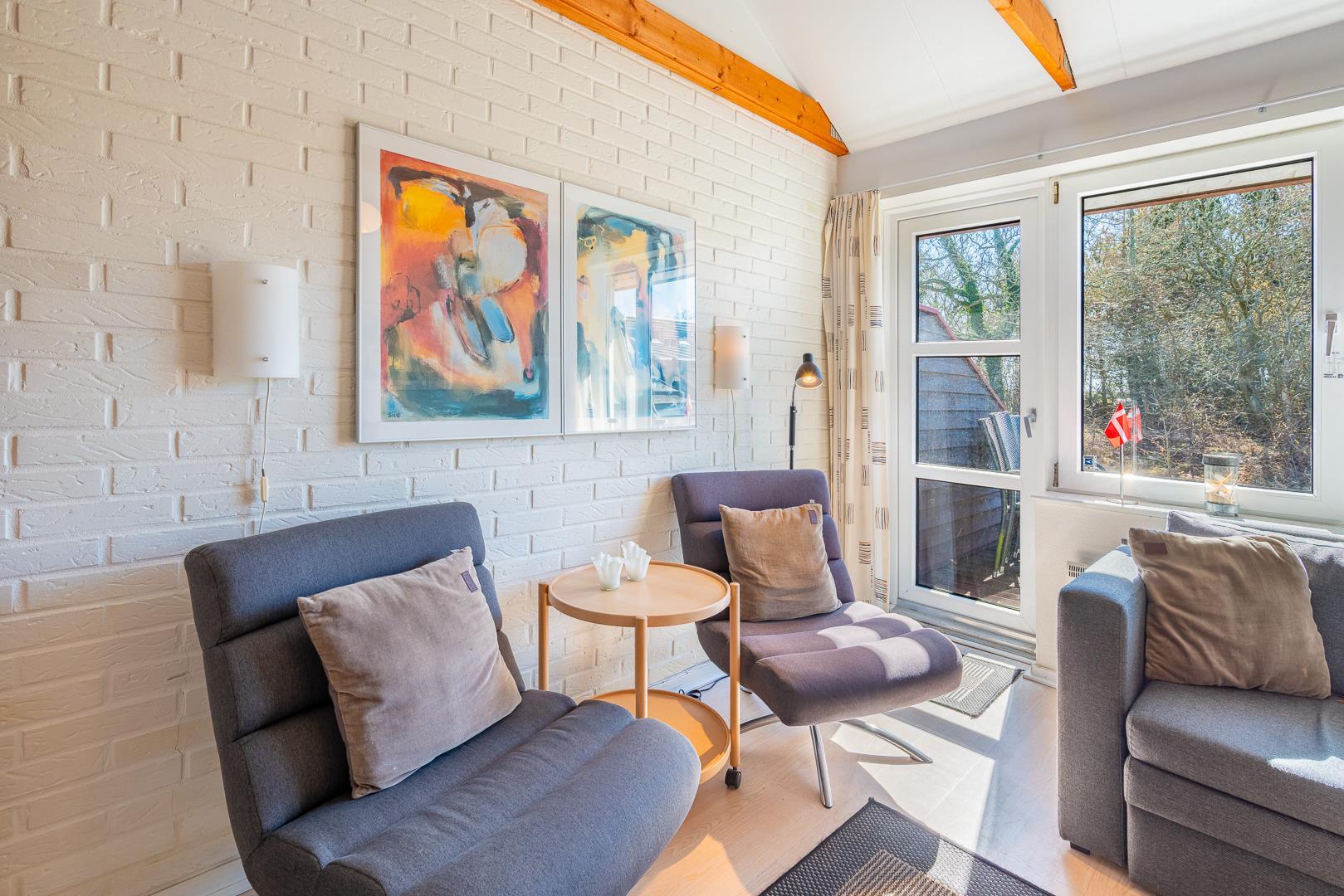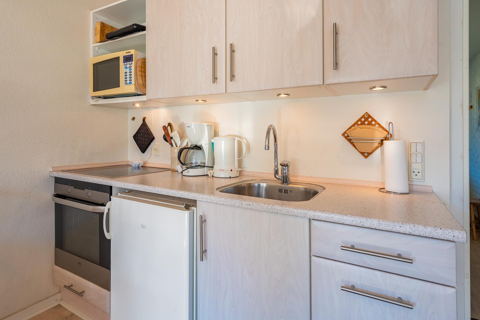 Dejligt og lyst indrettet ferielejlighed. Til lejligheden hører såvel sydvendt terrasse samt en åben terrasse med havemøbler. Køkkenet ligger i forbindelse med spisestuen. Lejligheden råder over et soverum med dobbeltseng. Der er en hems med 2 sovepladser. Ferielejligheden ligger i et naturområde med gode muligheder for vandreture. Lejligheden ligger endvidere tæt på golfbane, Vesterhavet og Henne Strand med mange indkøbsmuligheder. Der er gratis internet. I perioden fra påske til efterårsferien er der 200 m til campingpladsen, hvor der er lille købmandsbutik.