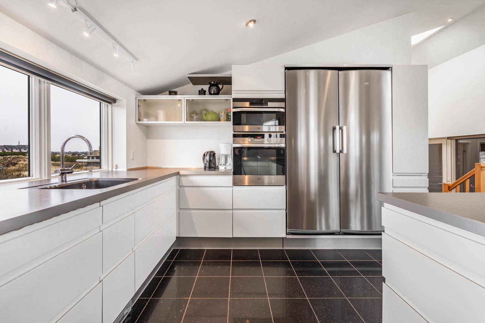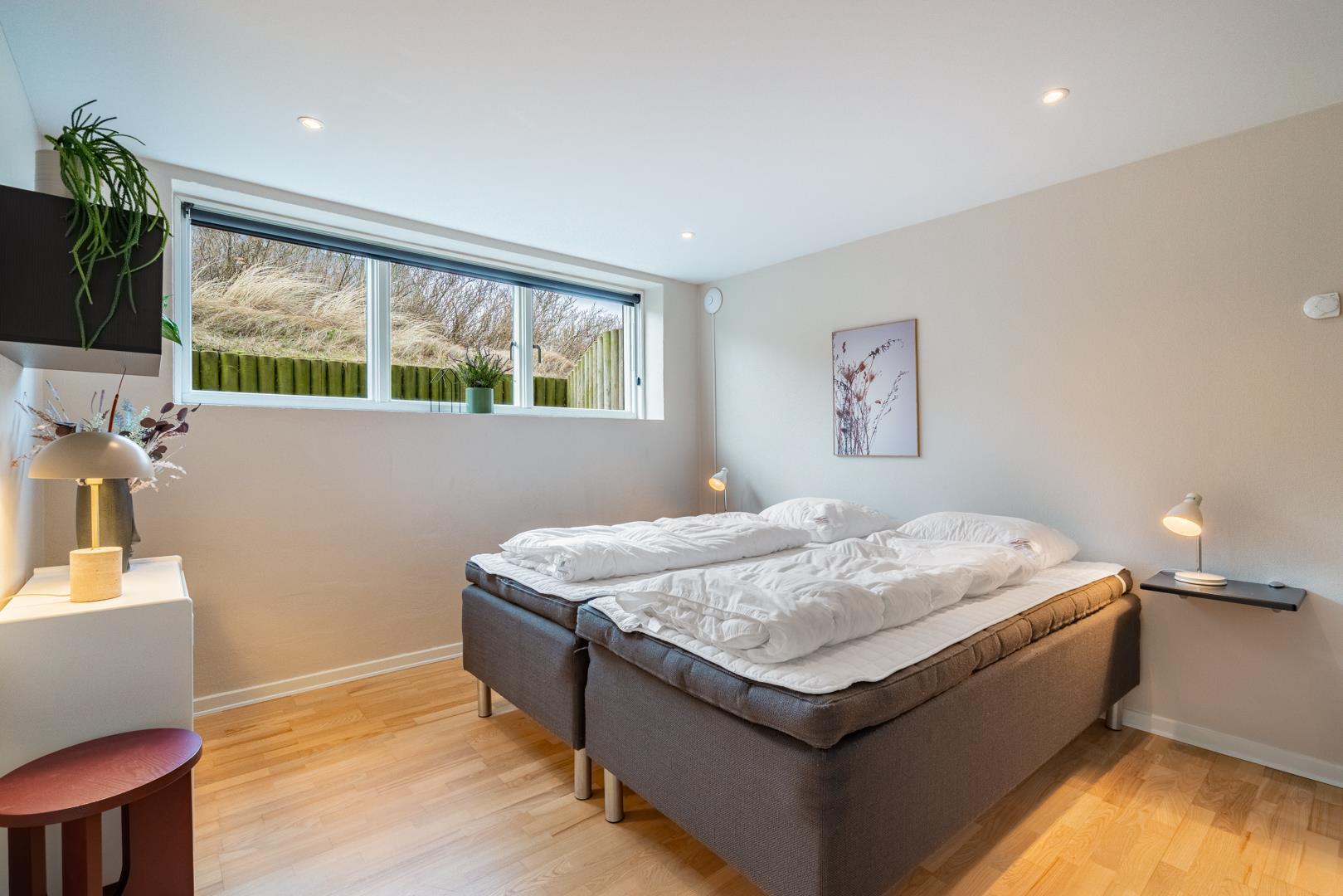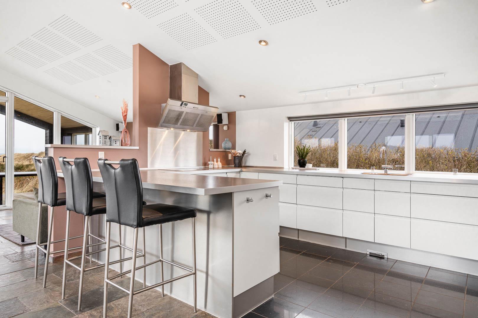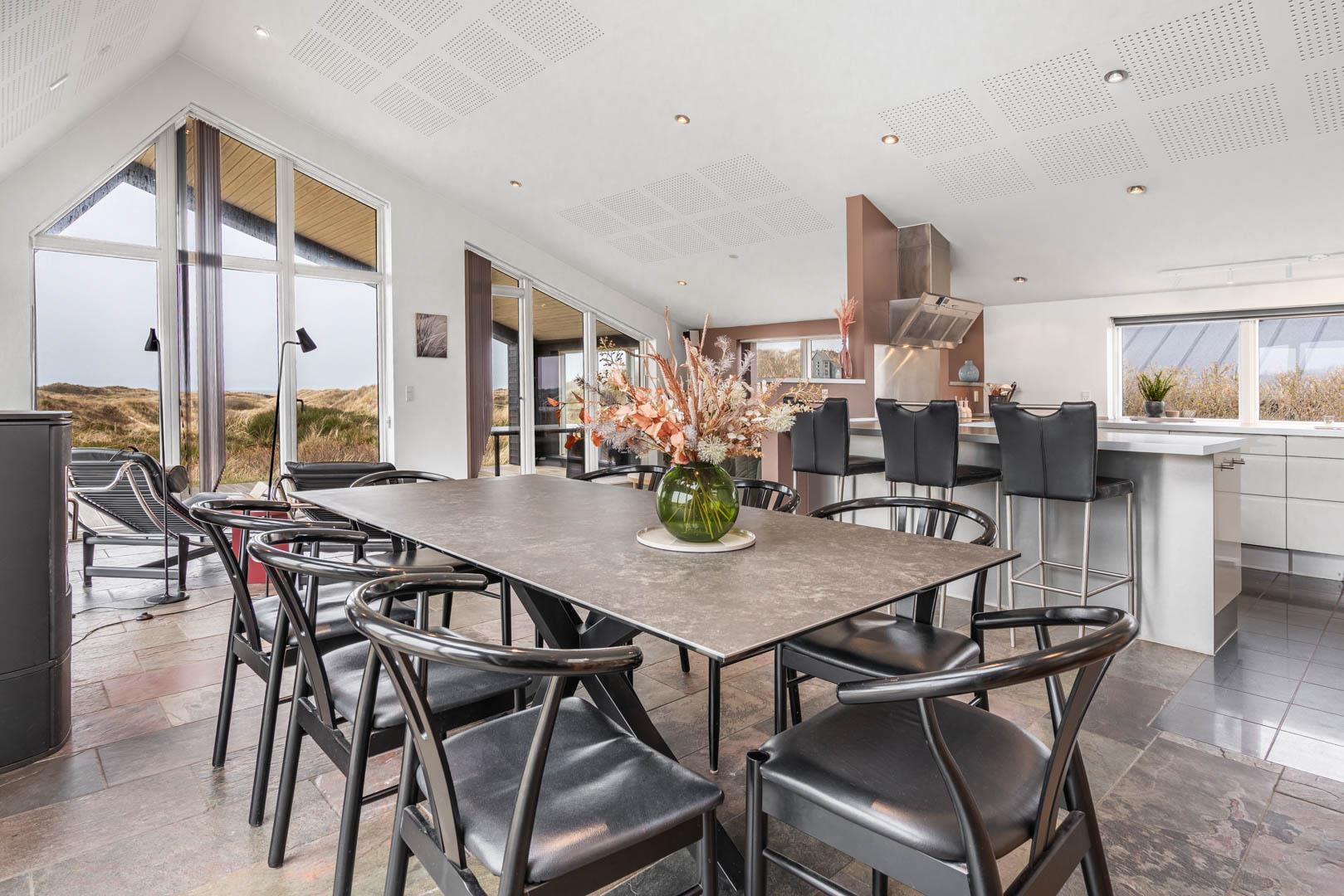 Holder I af den smukke natur langs den vestjyske kyst, og værdsætter I kvalitet, velvære og samvær? Så passer dette feriehus perfekt til jer. Her kommer I nemlig til at holde ferie i et stort, arkitekttegnet kvalitetshus med aktivitetsrum, wellness-afdeling og en enestående udsigt over de bløde klitter med det brusende Vesterhav i baggrunden.