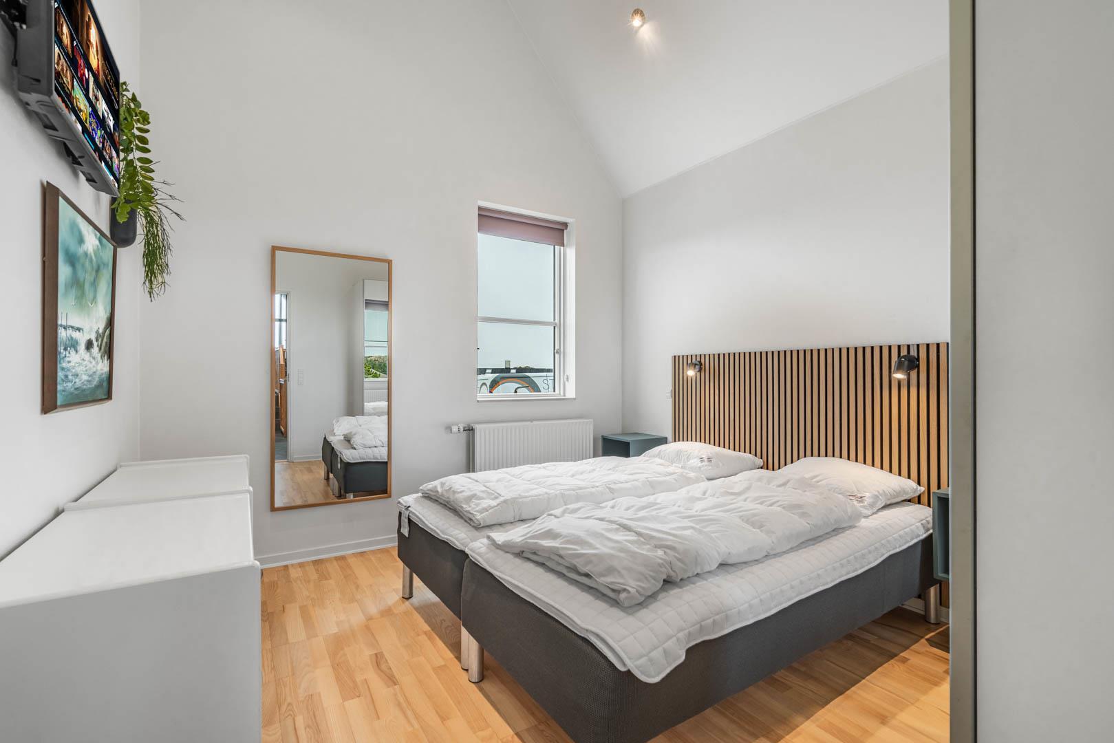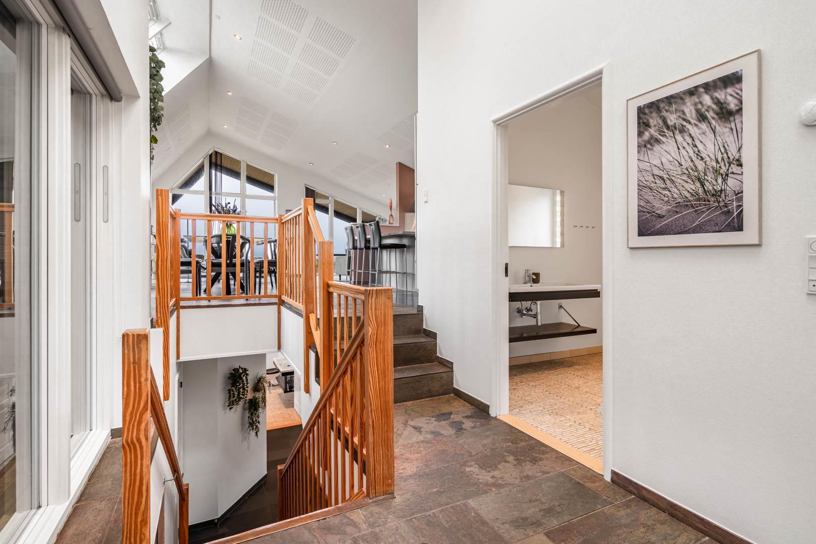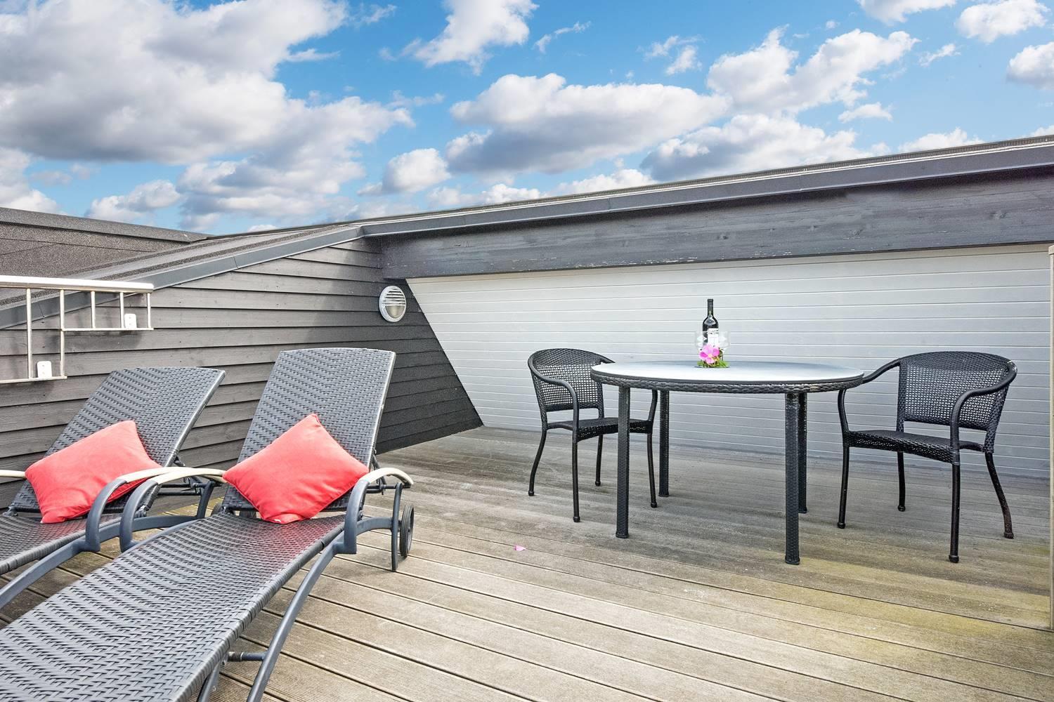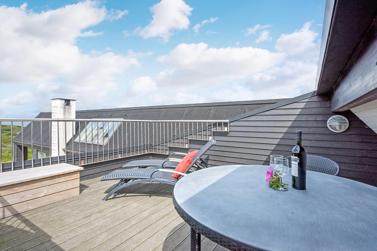 Efter en lang sommerdag ved vandet eller i områdets fantastiske natur kan solnedgangen meget vel nydes på husets tagterrasse, som giver dig åbent vue ud over havet.