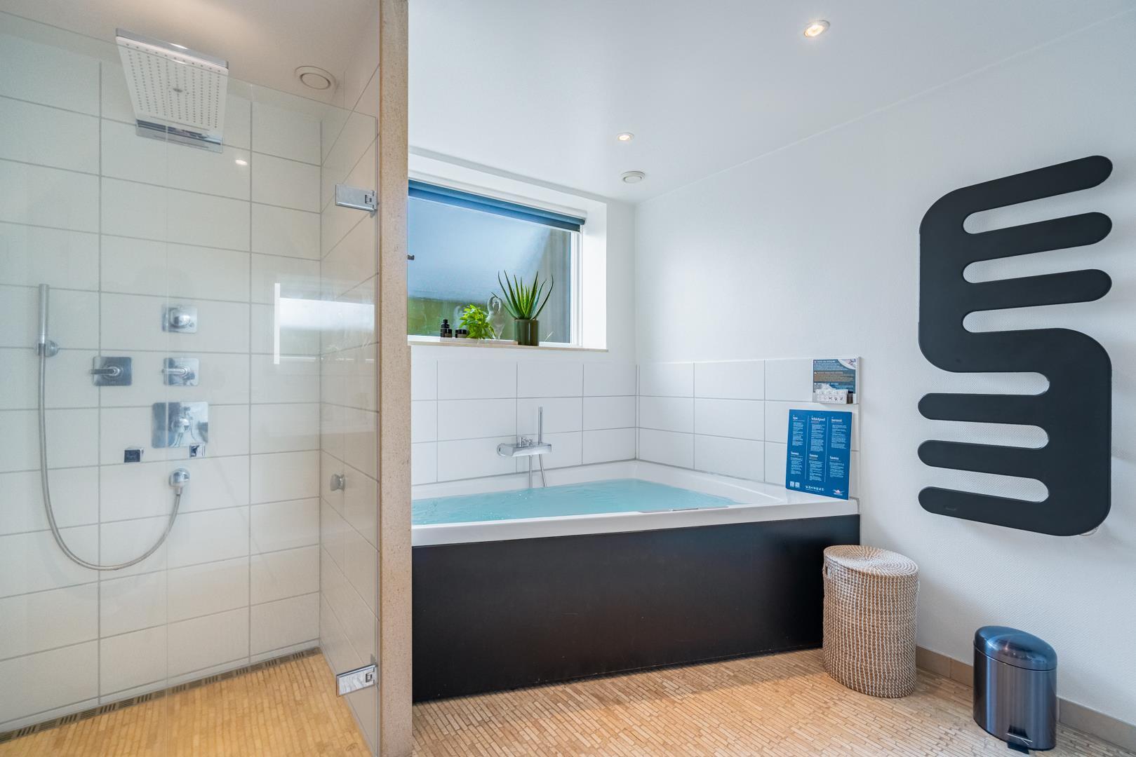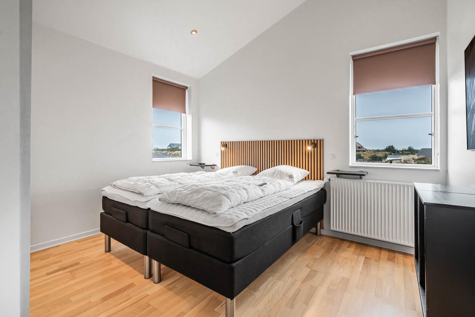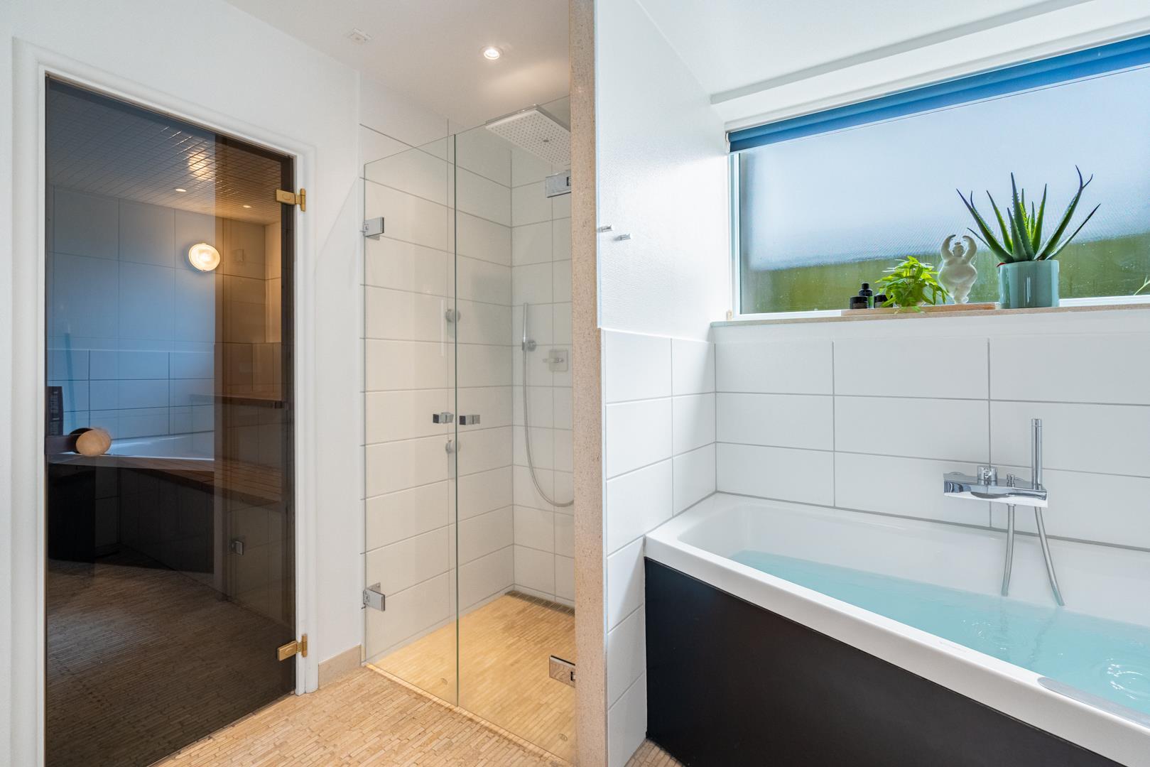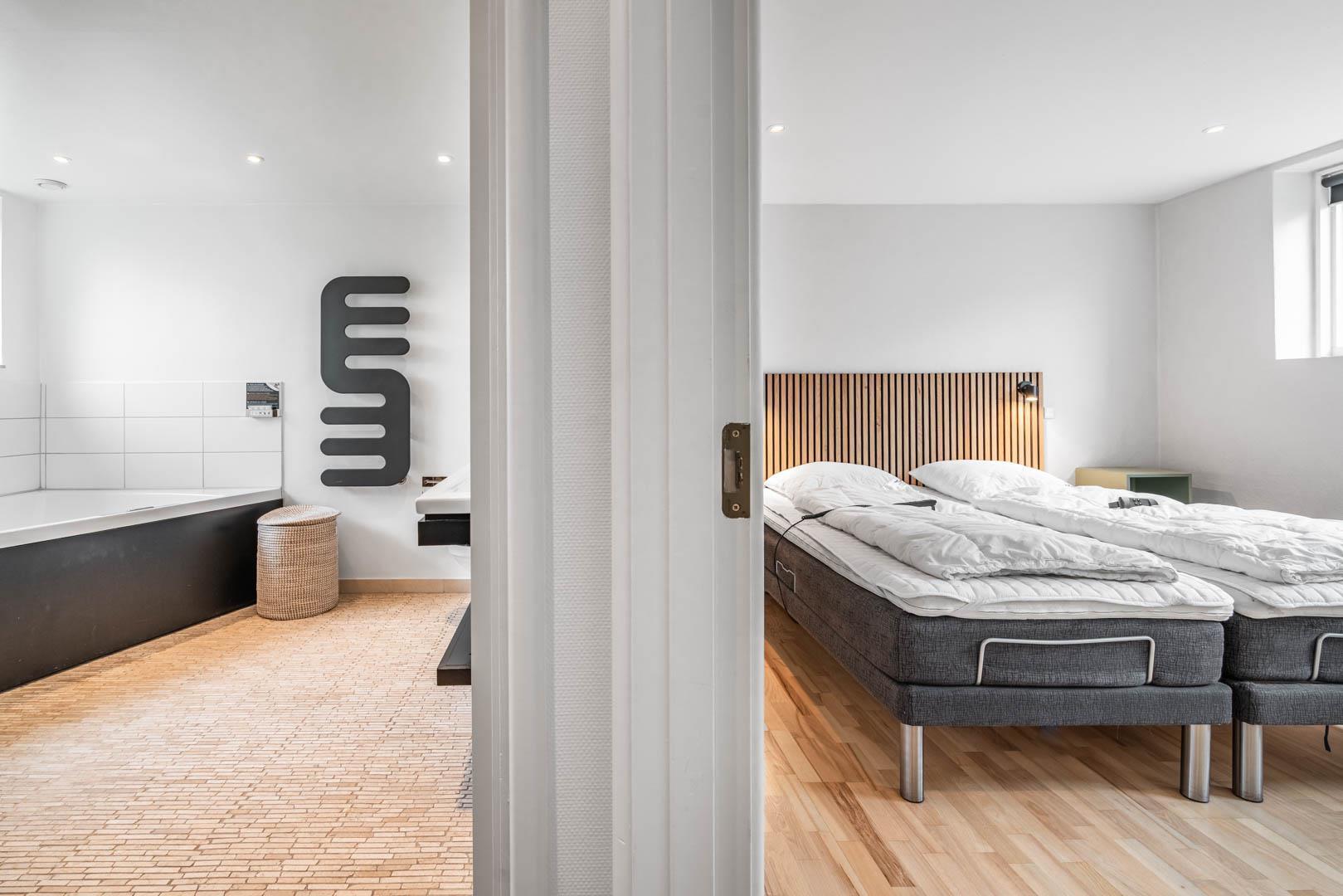 Feriehuset rummer i alt fire soveværelser og to store badeværelser, hvoraf det ene er et luksuriøst wellnessbadeværelse. Her er der dømt selvforkælelse med sauna og lækkert brusebad med regnvand, vandfald og massagefunktioner og ikke mindst et lækkert spabad, hvor I kan nyde en stund i det varme vand med kølige bobler i glasset.