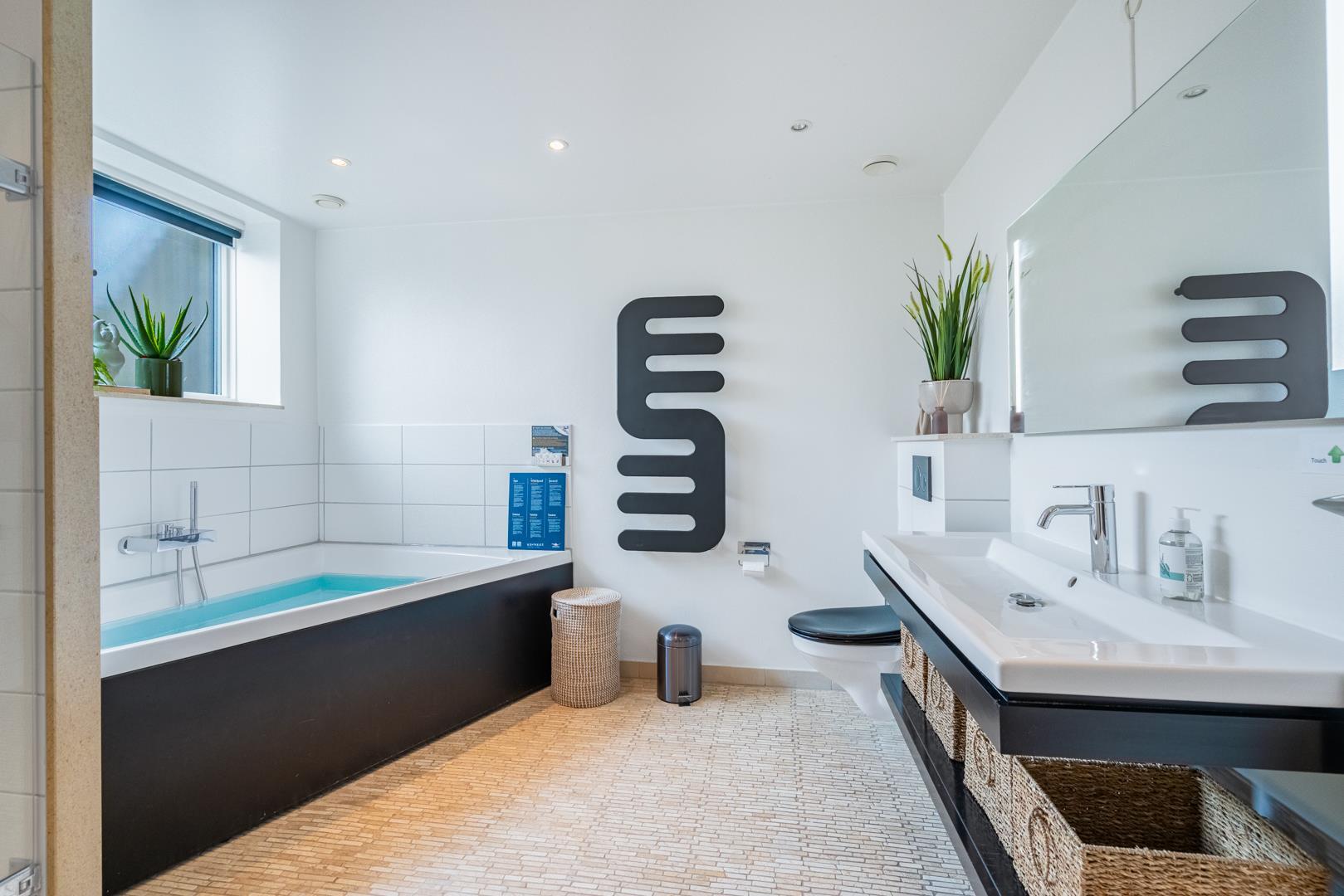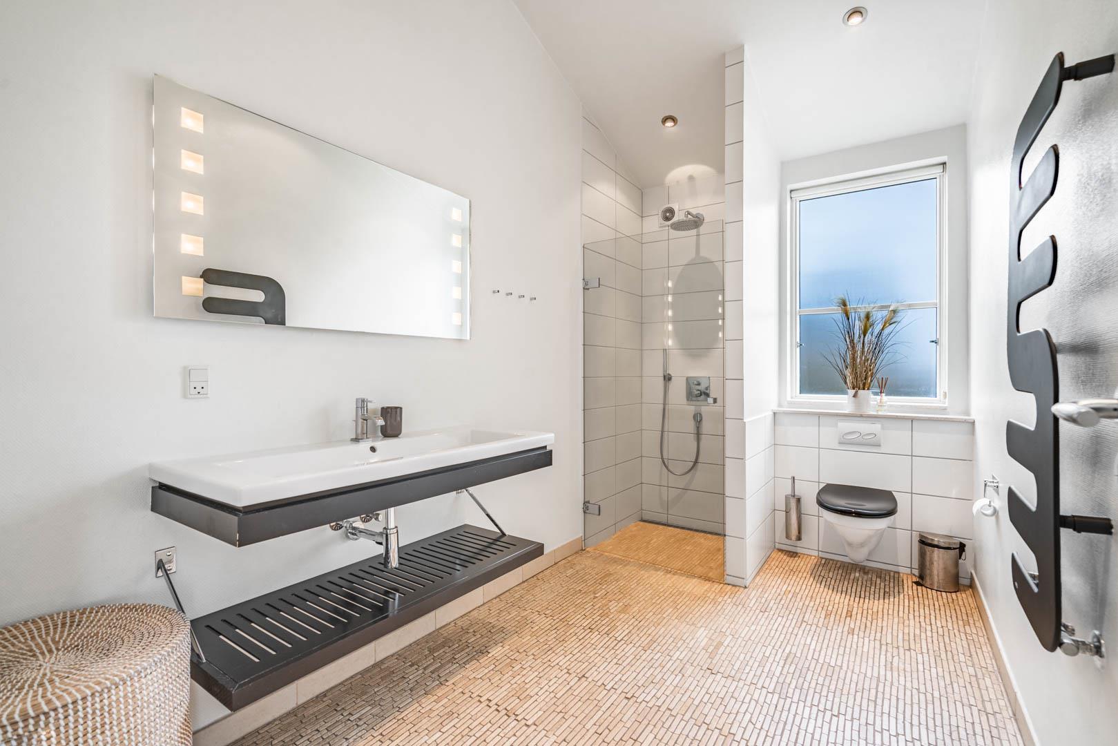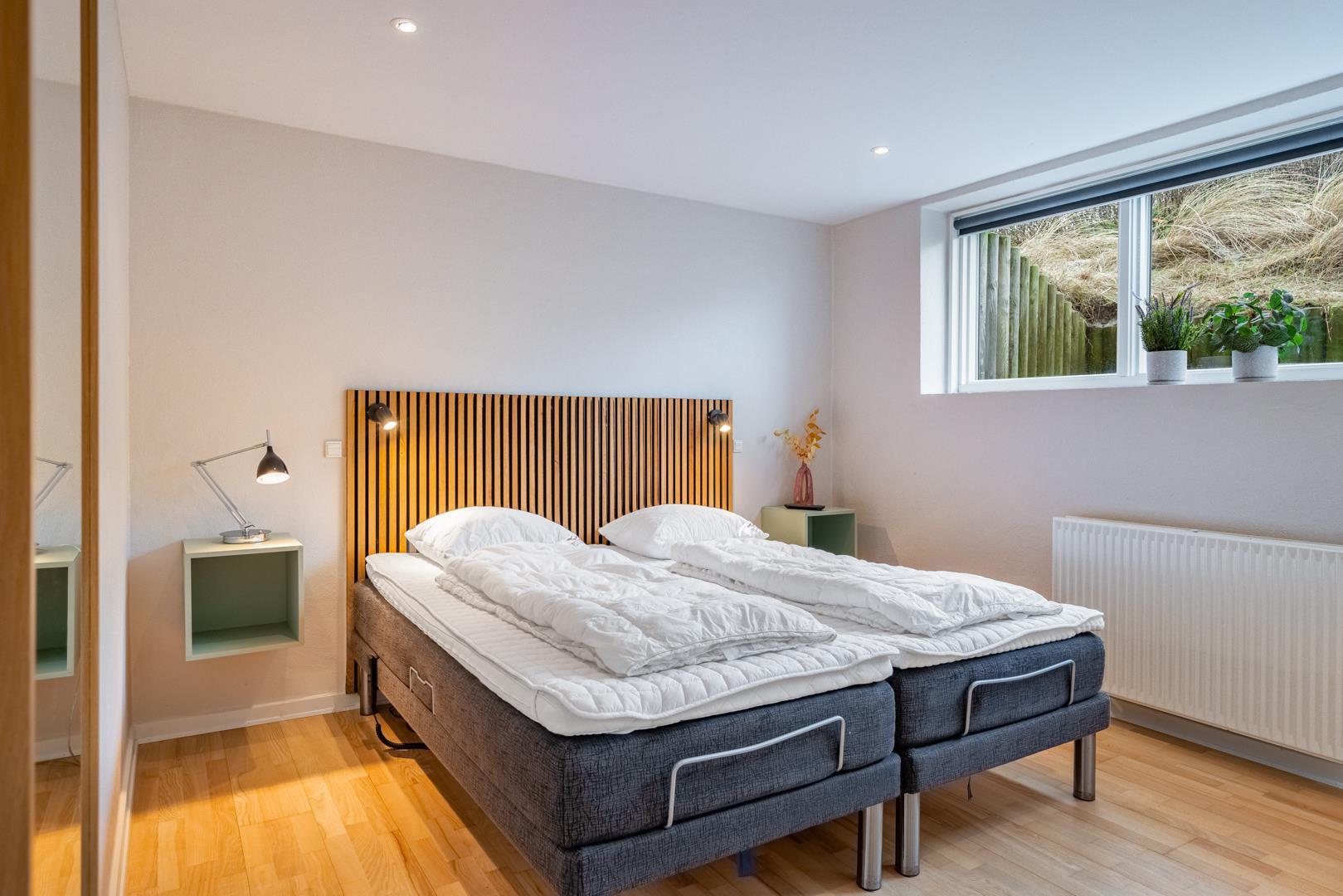 Feriehuset rummer i alt fire soveværelser og to store badeværelser, hvoraf det ene er et luksuriøst wellnessbadeværelse. Her er der dømt selvforkælelse med sauna og lækkert brusebad med regnvand, vandfald og massagefunktioner og ikke mindst et lækkert spabad, hvor I kan nyde en stund i det varme vand med kølige bobler i glasset.