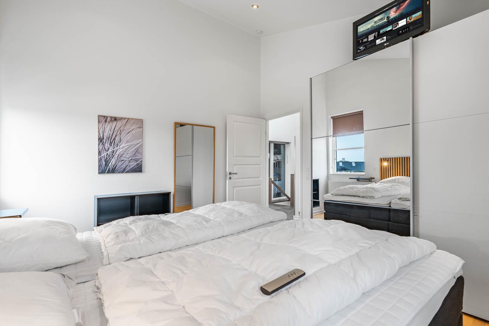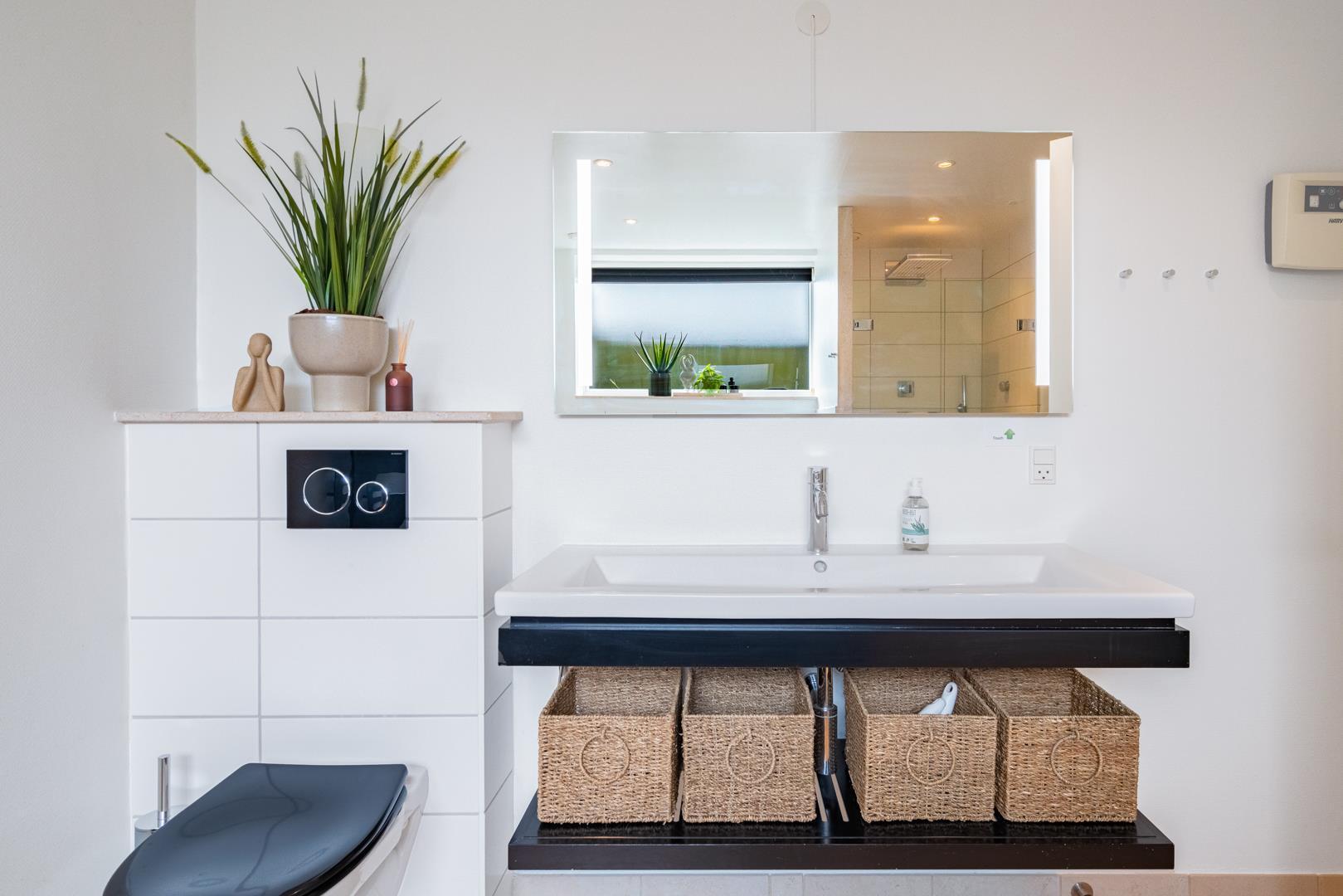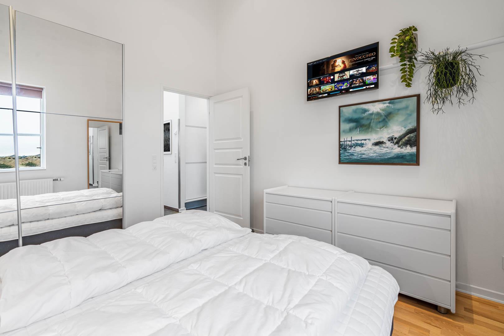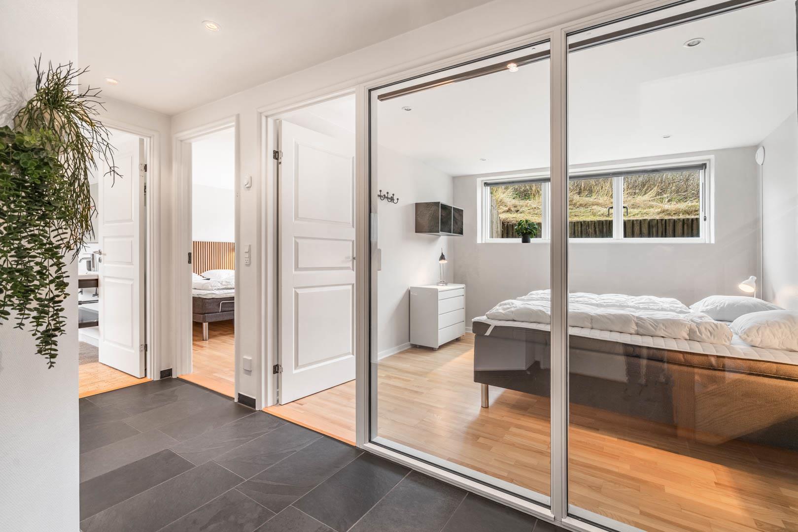 Feriehuset rummer i alt fire soveværelser og to store badeværelser, hvoraf det ene er et luksuriøst wellnessbadeværelse. Her er der dømt selvforkælelse med sauna og lækkert brusebad med regnvand, vandfald og massagefunktioner og ikke mindst et lækkert spabad, hvor I kan nyde en stund i det varme vand med kølige bobler i glasset.