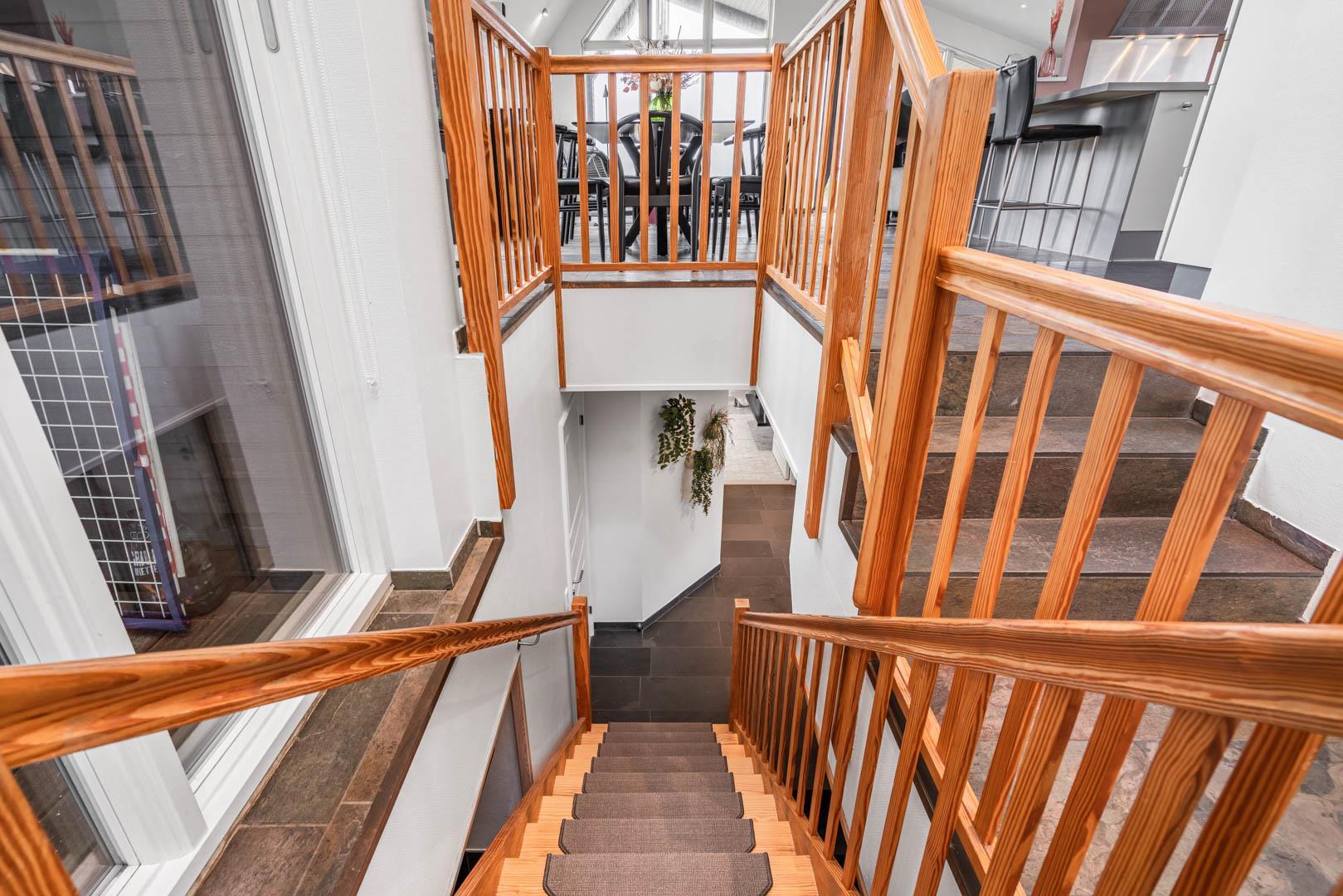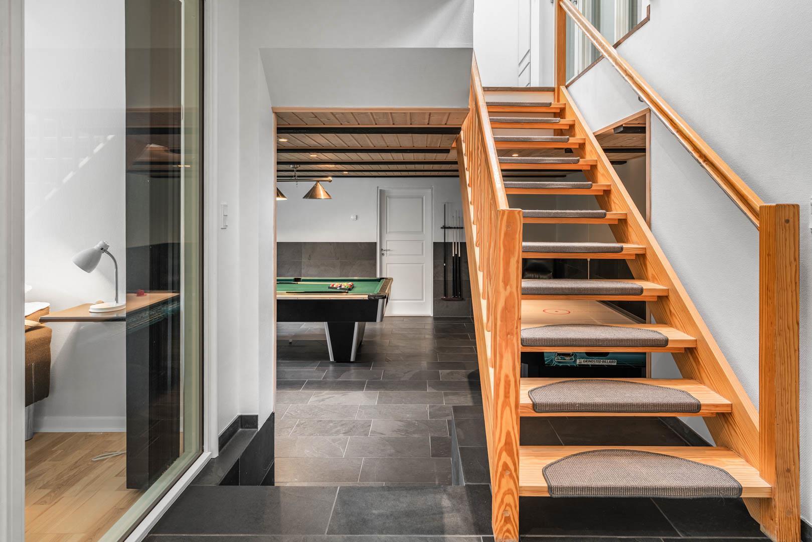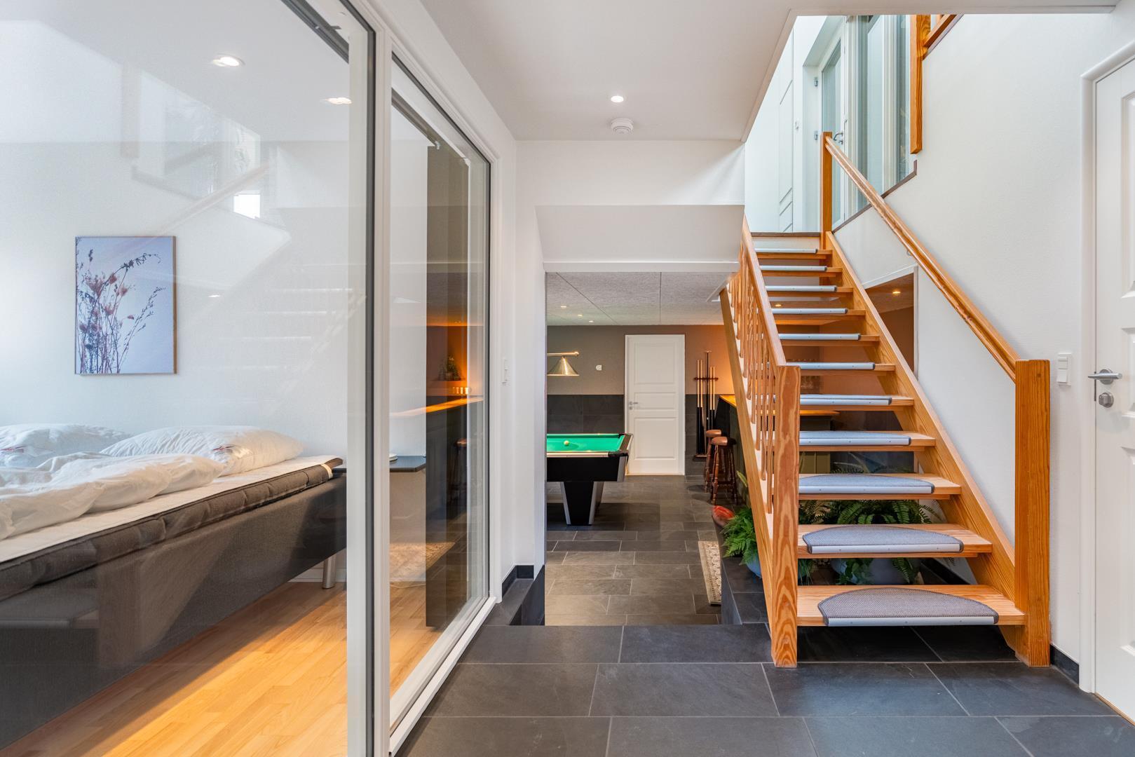 Feriehuset er indrettet personligt med sans for æstetik og kvalitet, så man føler sig omfavnet, så snart man træder ind i de højloftede rum. Let forskudte plan giver en helt unik dybde, og en særlig fornemmelse af lys og luft skabes af husets mange store vinduespartier, der trækker naturens farver helt ind i rummene.