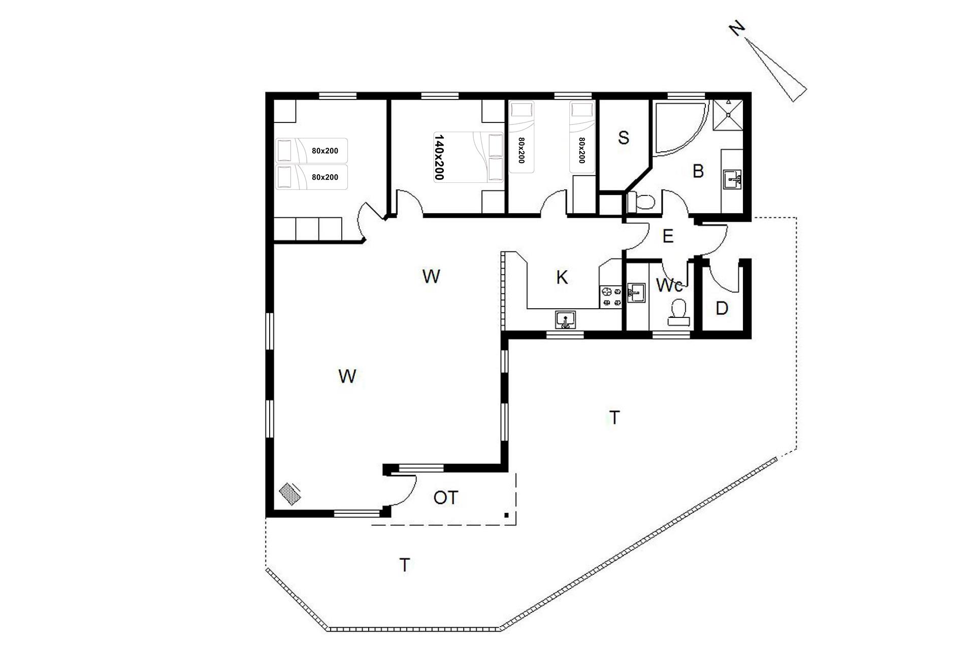 Sengestørrelser: 1 dobbeltseng med 2 madrasser 80 x 200 cm + 1 dobbeltseng 140 x 200 cm + 2 enkeltsenge 80 x 200 cm.