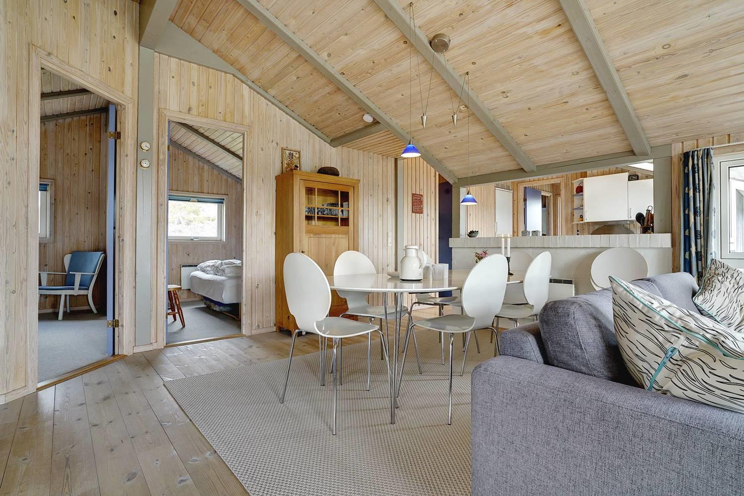 På en skøn kuperet naturgrund og i meget rolige omgivelser, ligger dette meget velholdte feriehus med stor indhegnet terrasse. Det veludstyret køkken, som er kombineret med den hyggelige og lyse stue med brændeovn, er meget personligt indrettet. Huset har 3 gode soverum og dejligt badeværelse med spa og med adgang til sauna. Der er fra huset stue direkte udgang til dejlig ugenert syd/vest terrasse.
