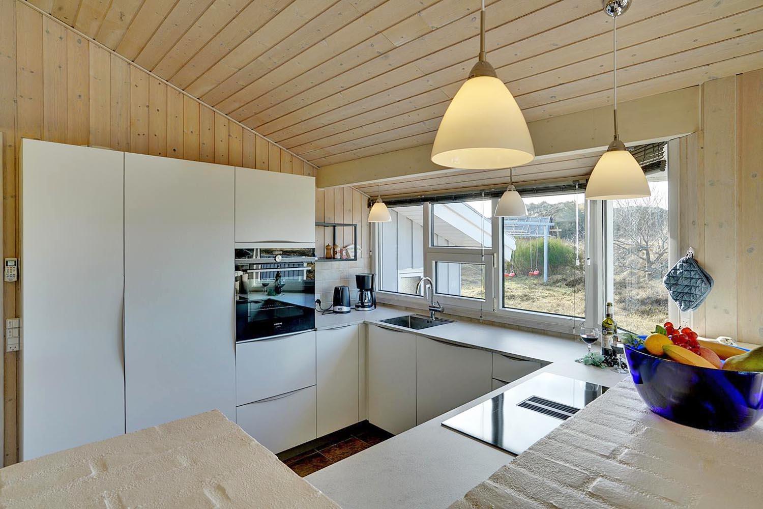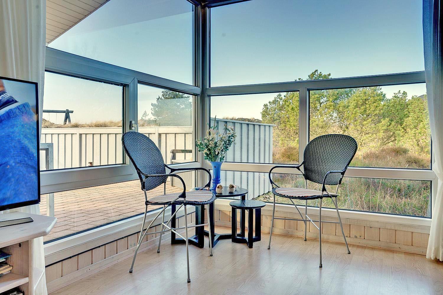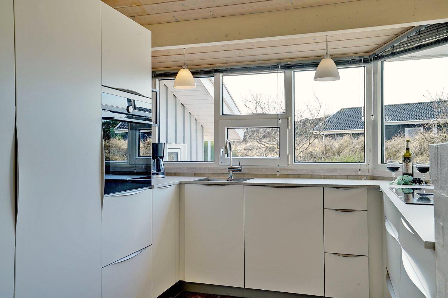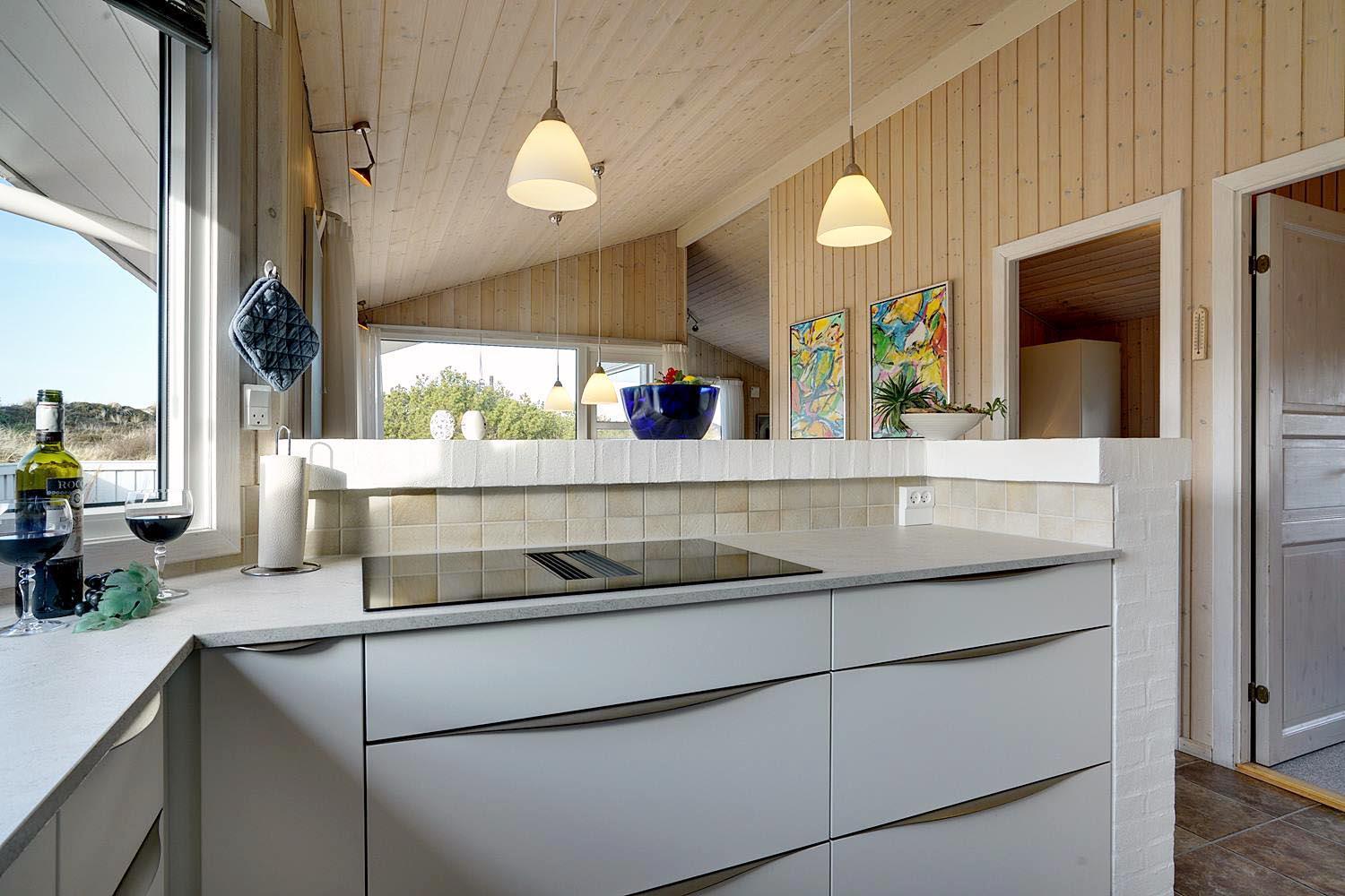 Feriehuset er indrettet med terrasser langs de syd- og vestlige facader, så du til fulde kan nyde solen og udsigten til den lave klitbeplantning, der læner sig blidt i sommerbrisen. Ikke mere end et par kilometer herfra afløses det åbne terræn af dyb, fascinerende skov med smukke vandre- og ridestier samt mountainbikeruter i forskellige sværhedsgrader. Stranden ligger blot omkring 800 meter fra feriehuset, så når du har nydt skovens mange farver, kan du slappe af på stranden hele eftermiddagen.