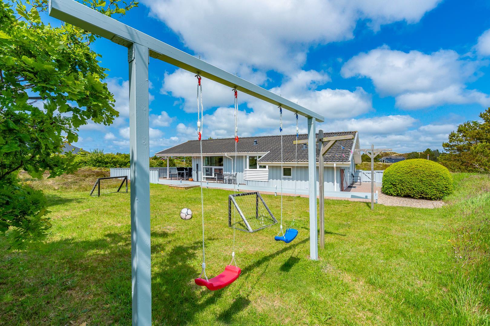 Der er også tænkt på de små gæster - her er fodbold mål, gynger og sandkasse på grunden.