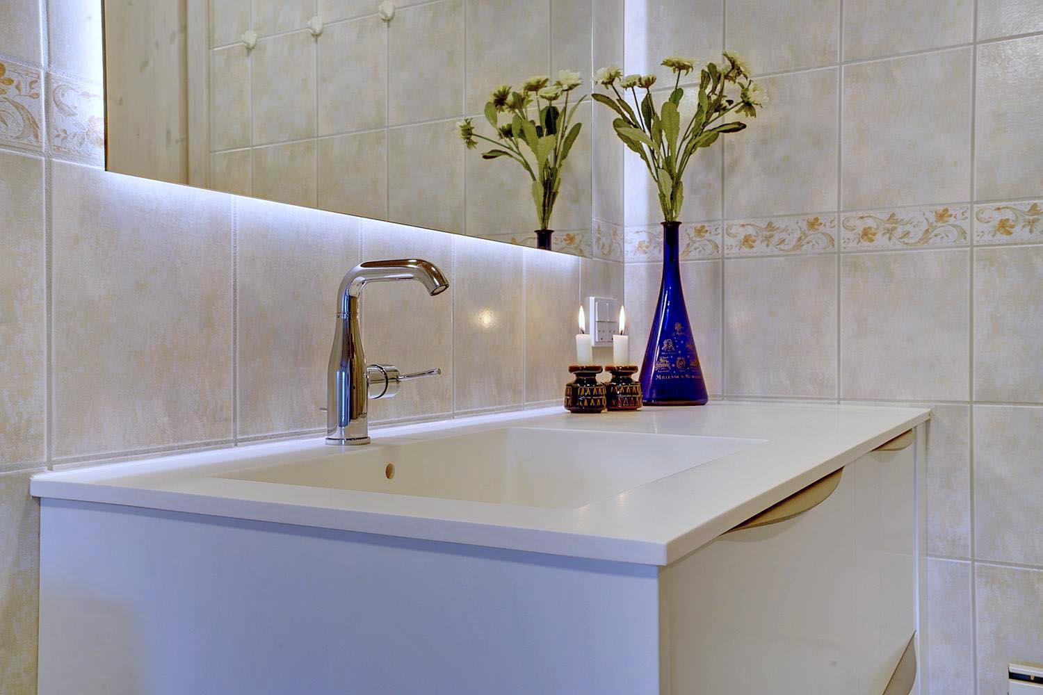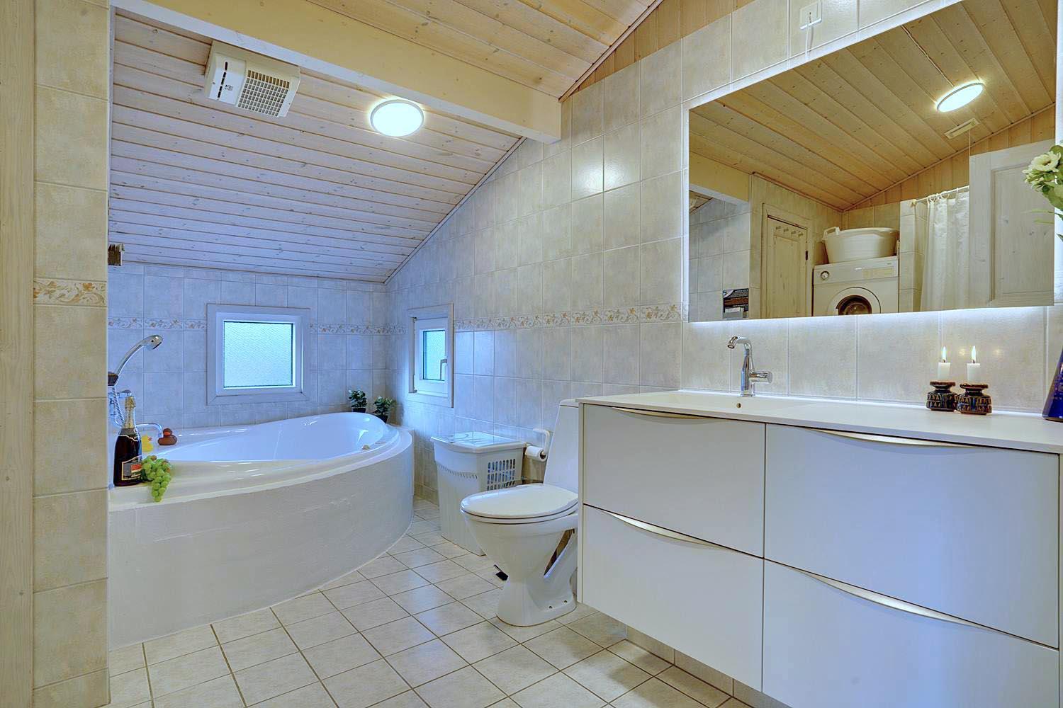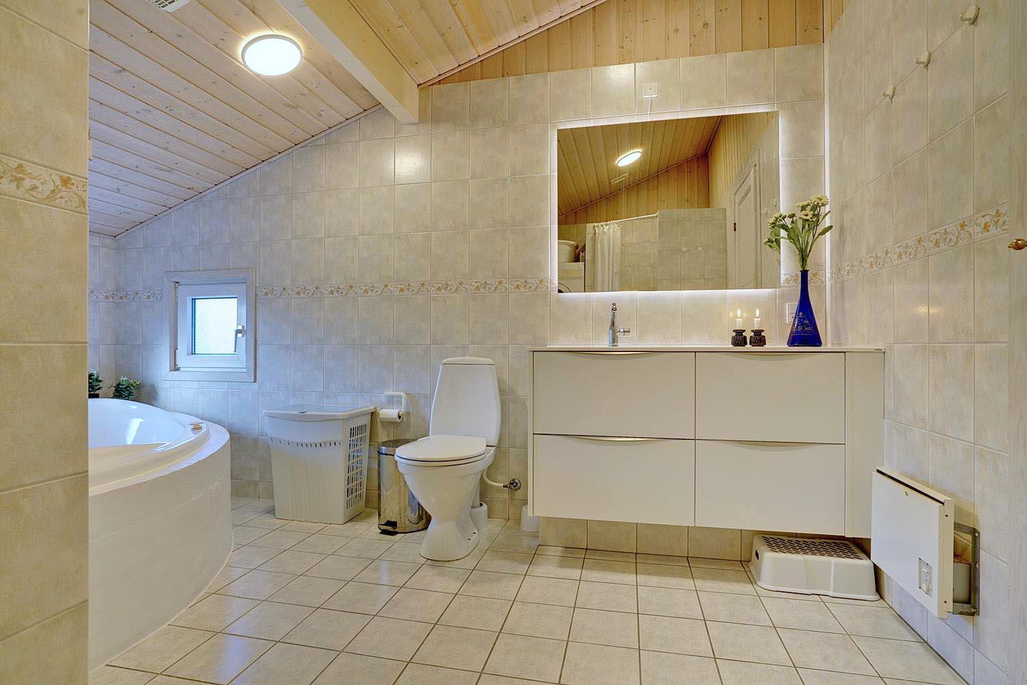 Huset er udstyret med nyrenoveret badeværelse med spa og sauna samt et lækkert, nyt køkken, som har et fabelagtigt lysindfald en feature, der i øvrigt gælder for hele huset.
