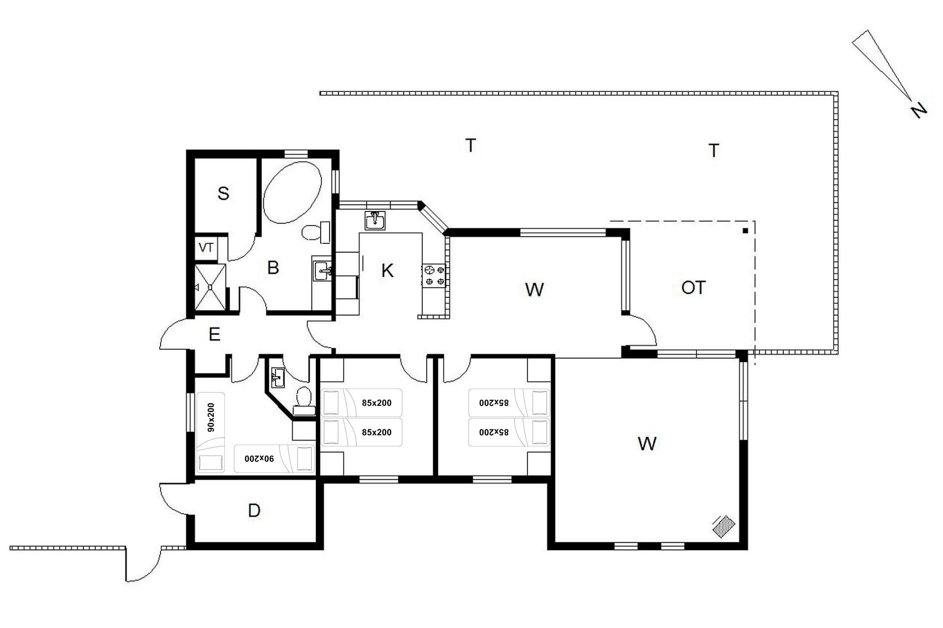Sengestørrelse: 2 dobbeltsenge med 2 madrasser 85 x 200 cm + 2 enkeltsenge 90 x 200 cm.
